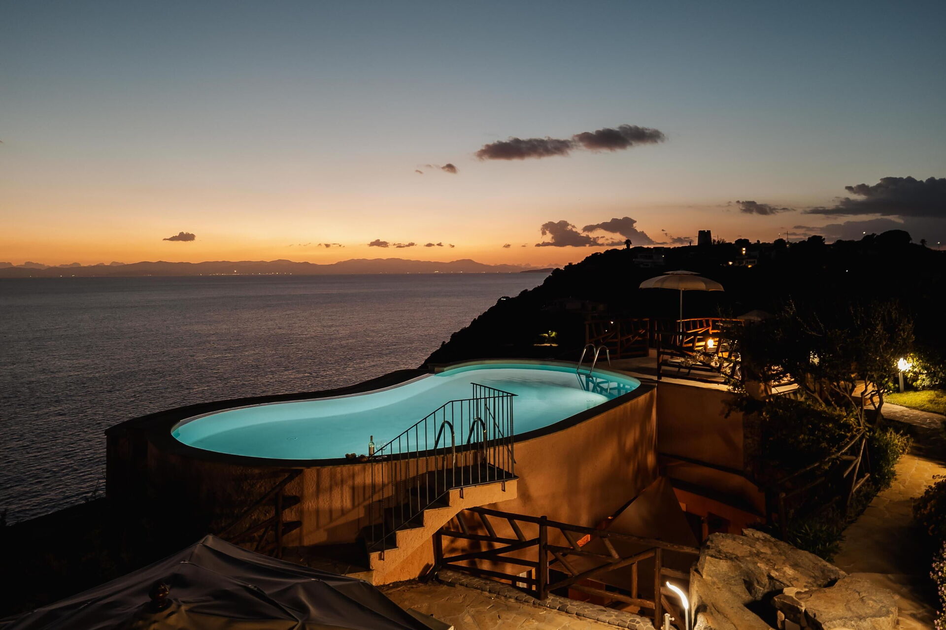 Villa Atlantide er helt unik: den er bygget i en skråning, der falder ned mod havet. Feriehuset har 5 soveværelser og god plads til op til 10 personer. Udendørs findes der flere terrasser, alle med smuk udsigt over det blå hav, og én af dem har en privat swimmingpool.