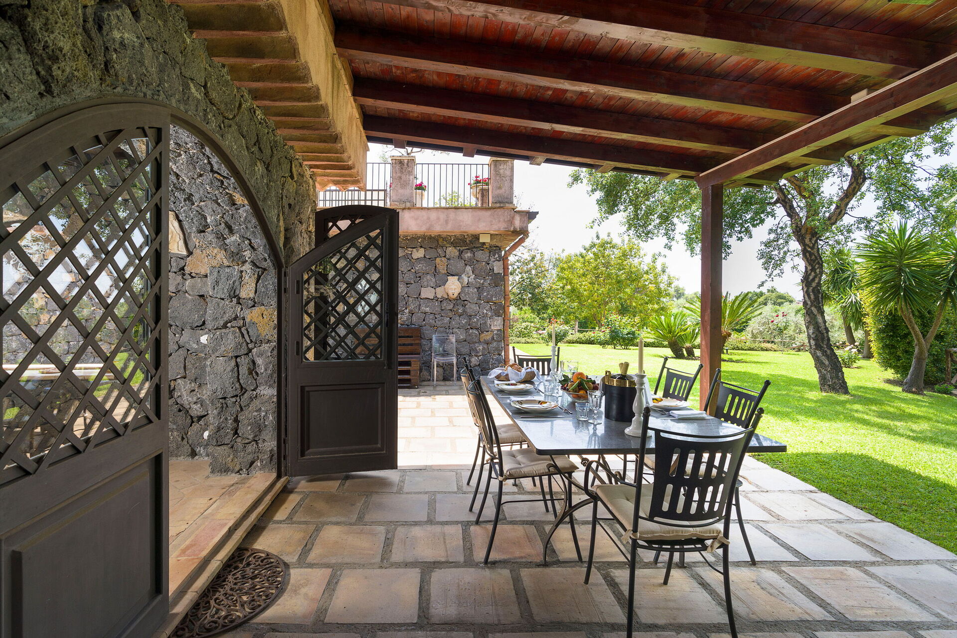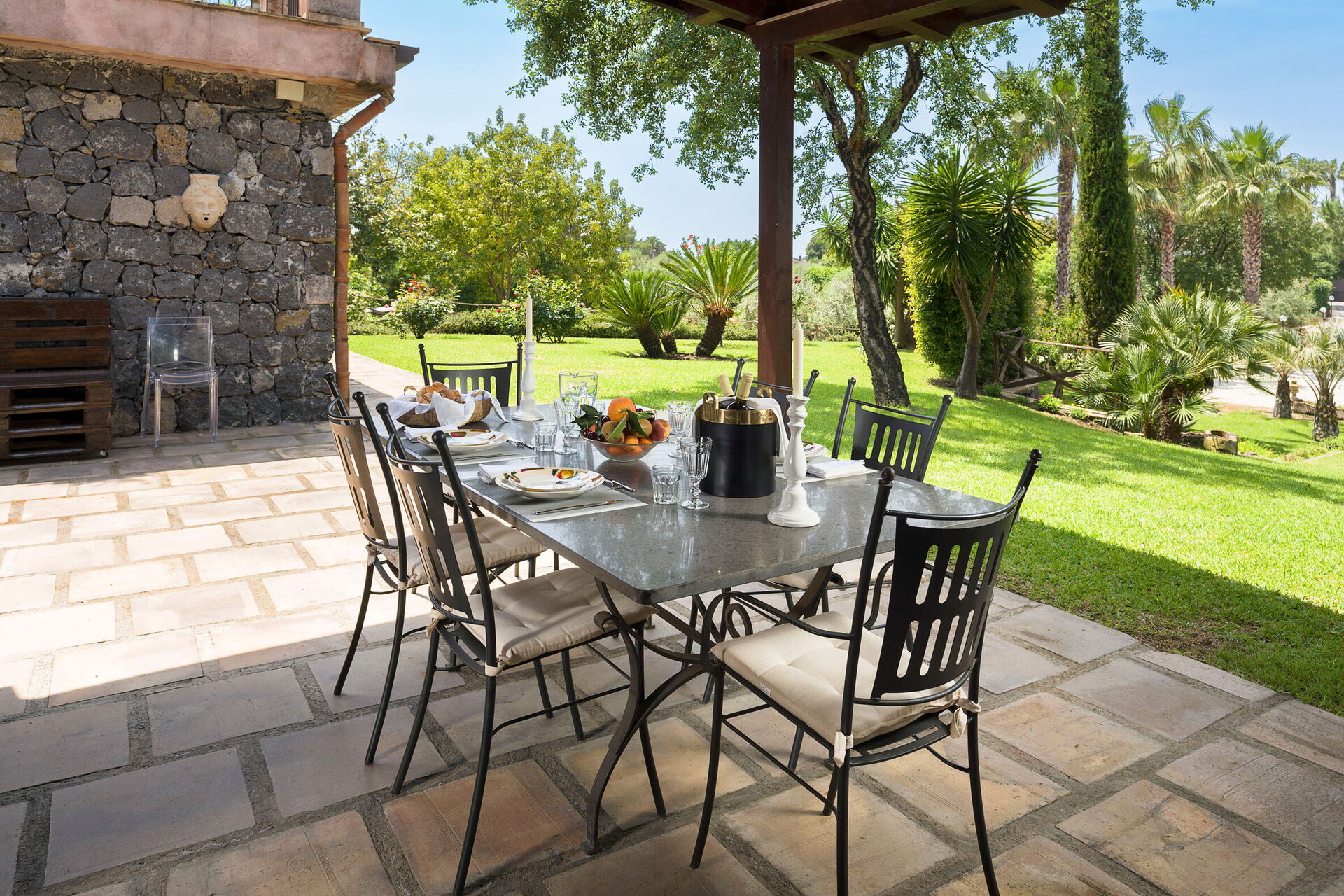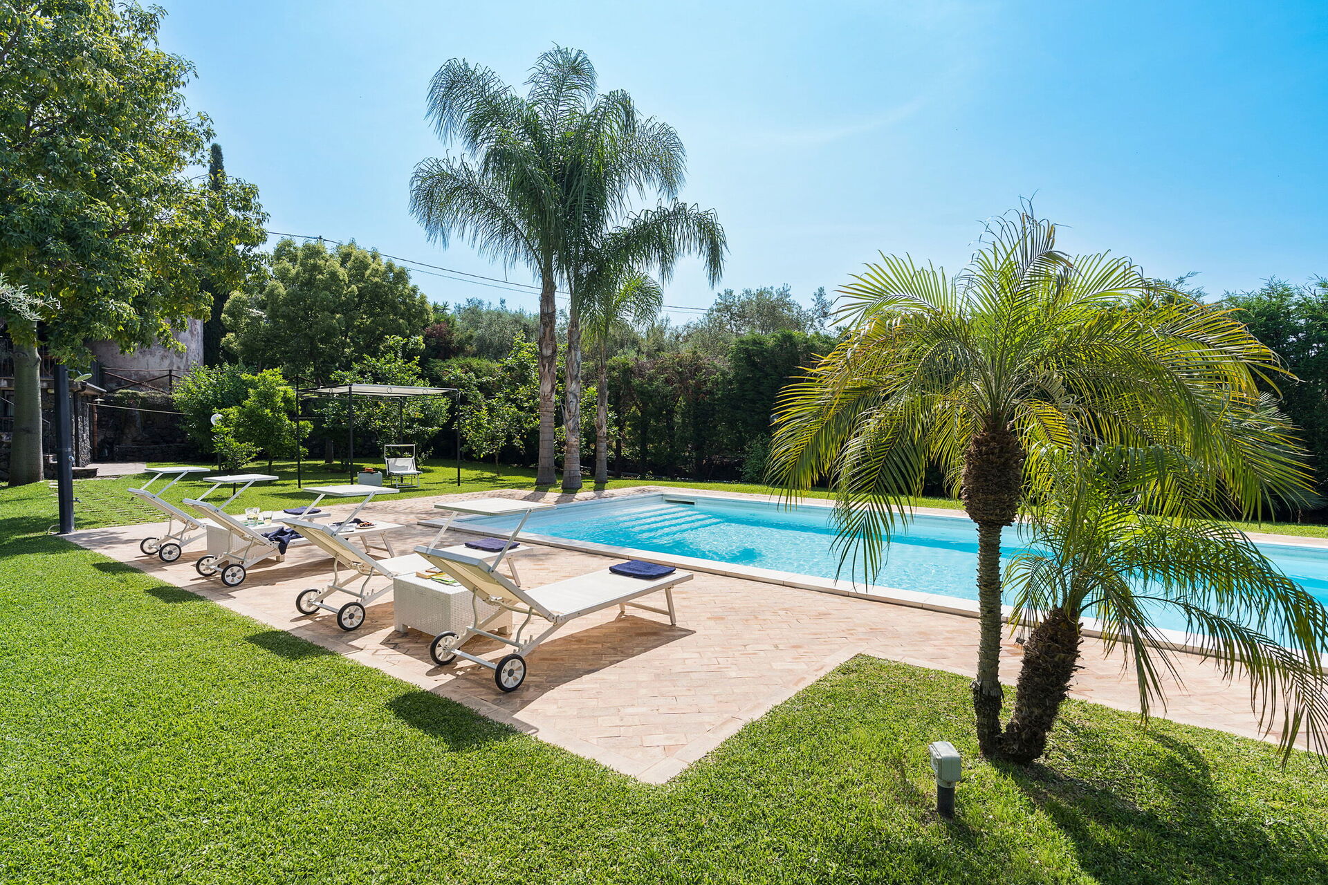 Feriehuset vender ud mod en velplejet have med græsplæne og en smuk saltvandspool; her findes også store møblerede terrasser, hvor gæsterne kan nyde uforglemmelige øjeblikke under Siciliens sol.