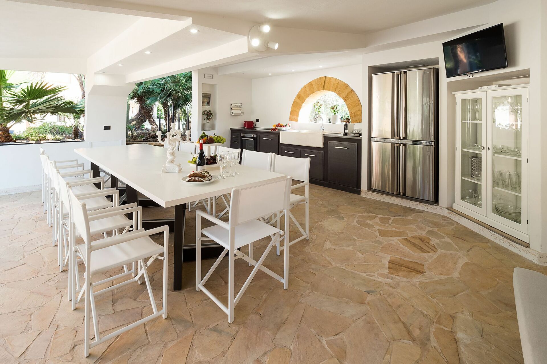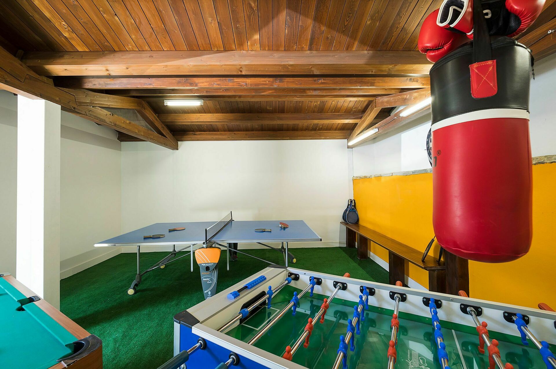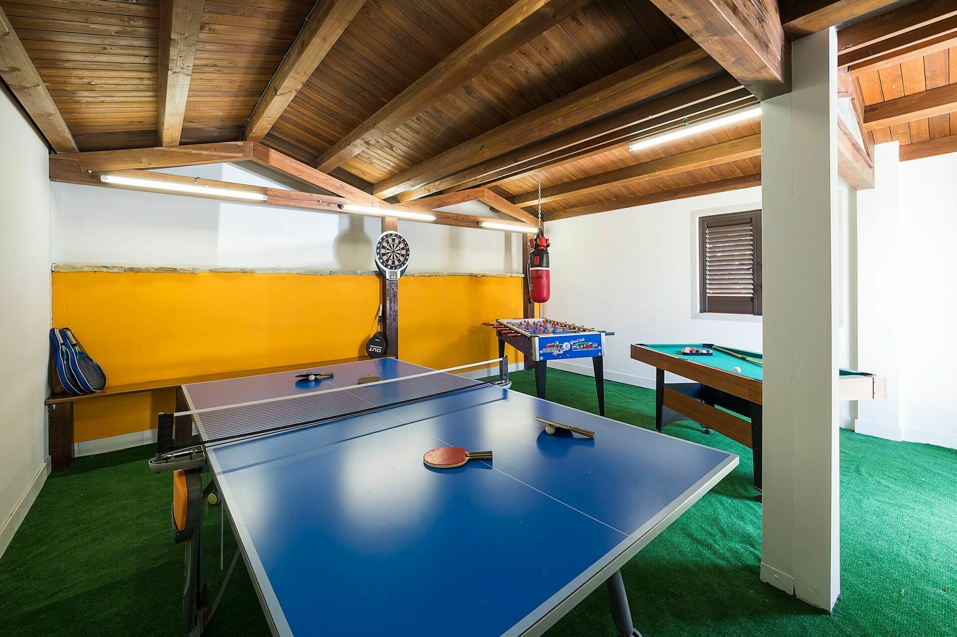 Til villaen er der også en lille fodboldbane, et spillehal (bordtennis, bordfodbold og poolbord) og mange terrasser, et med køkken, grill og brændeovn.