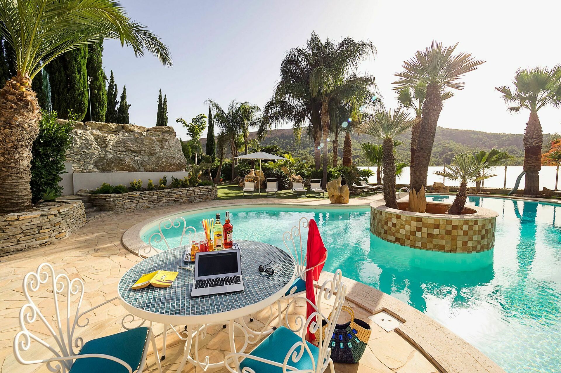 Huset er perfekt til dem, der søger privatliv, komfort og en afslappende ferie. Ferieboligen ligger i landlige omgivelser og ikke langt fra stranden. Ejendommen består af tre bygninger med udsigt over den store pool og et smukt boblebad gemt i klipperne inde i den frodige have.