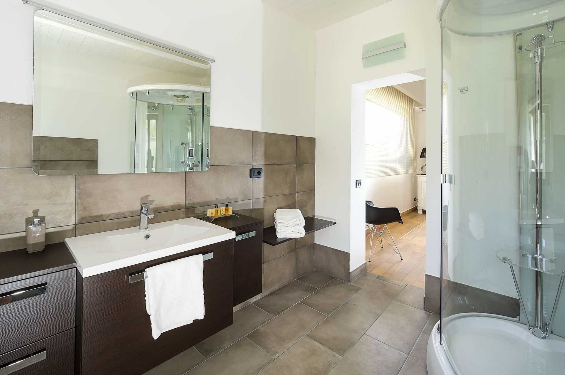 Spredt over to etager med indgang udefra, den første sal indeholder en stue, et køkken og to soveværelser med dobbeltsenge med fælles badeværelse, mens første sal er et soveværelse med dobbeltseng med badeværelse og et velværeområde med tyrkisk bad, spabad og multi-sensorisk bruser.