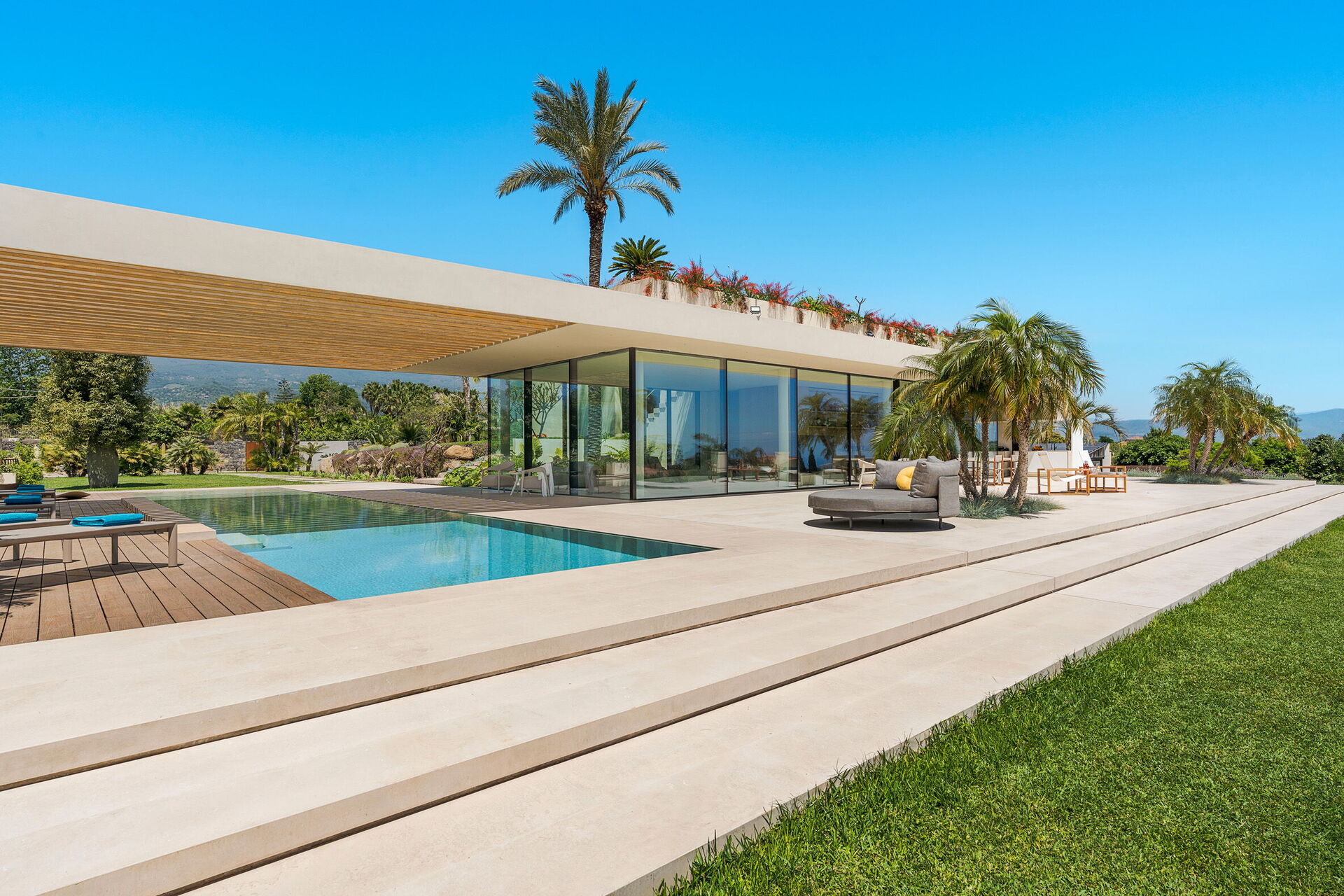 Huset er både moderne og luksuriøst og ligger i naturskønne omgivelser med en enestående panoramaudsigt, der strækker sig fra Etna til Taormina. Udsigten kan nydes fra poolen, de store terrasser og haven.