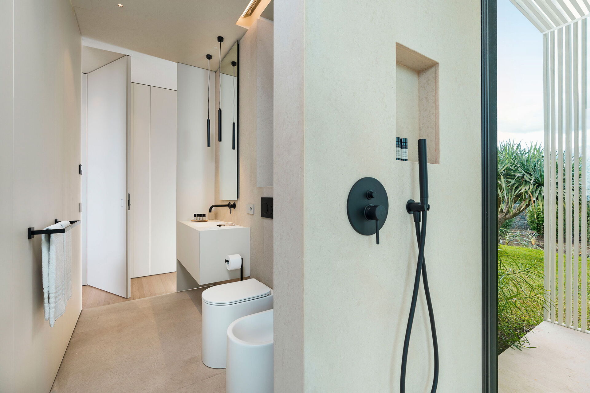 Villa Hermosa er i 3 etager og er smagfuldt indrettet med en indbydende interiør, designet til at imødekomme alle kravene til en moderne livsstil. Huset har 4 soveværelser, hver med eget badeværelse, samt en stor stue, der fører ud til poolområdet og udsigten over det omkringliggende landskab. Feriehuset kan komfortabelt rumme op til 8 personer.