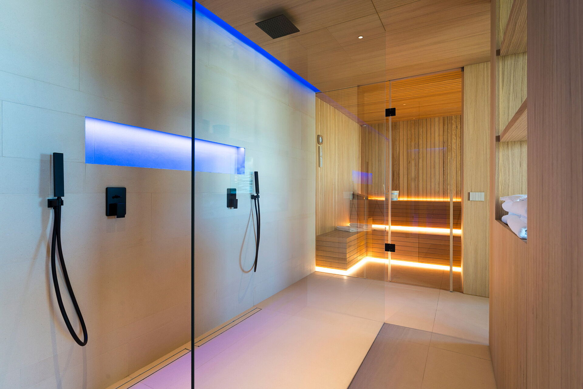 Til gæsternes rådighed er også et træningsområde og et spa med boblebad, sauna, dampbad og en multisensorisk bruser.