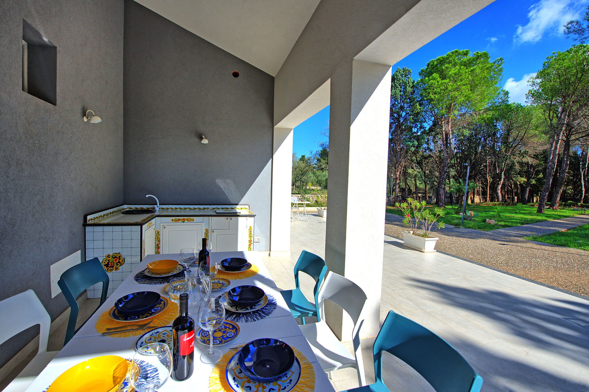 Fra Nero Avola ser man ud på den smukke private saltvandspool og store terrasser, møbleret med borde og stole til udendørs spisning. Det er det perfekte sted at slappe af eller køle af på varme sommerdage!
