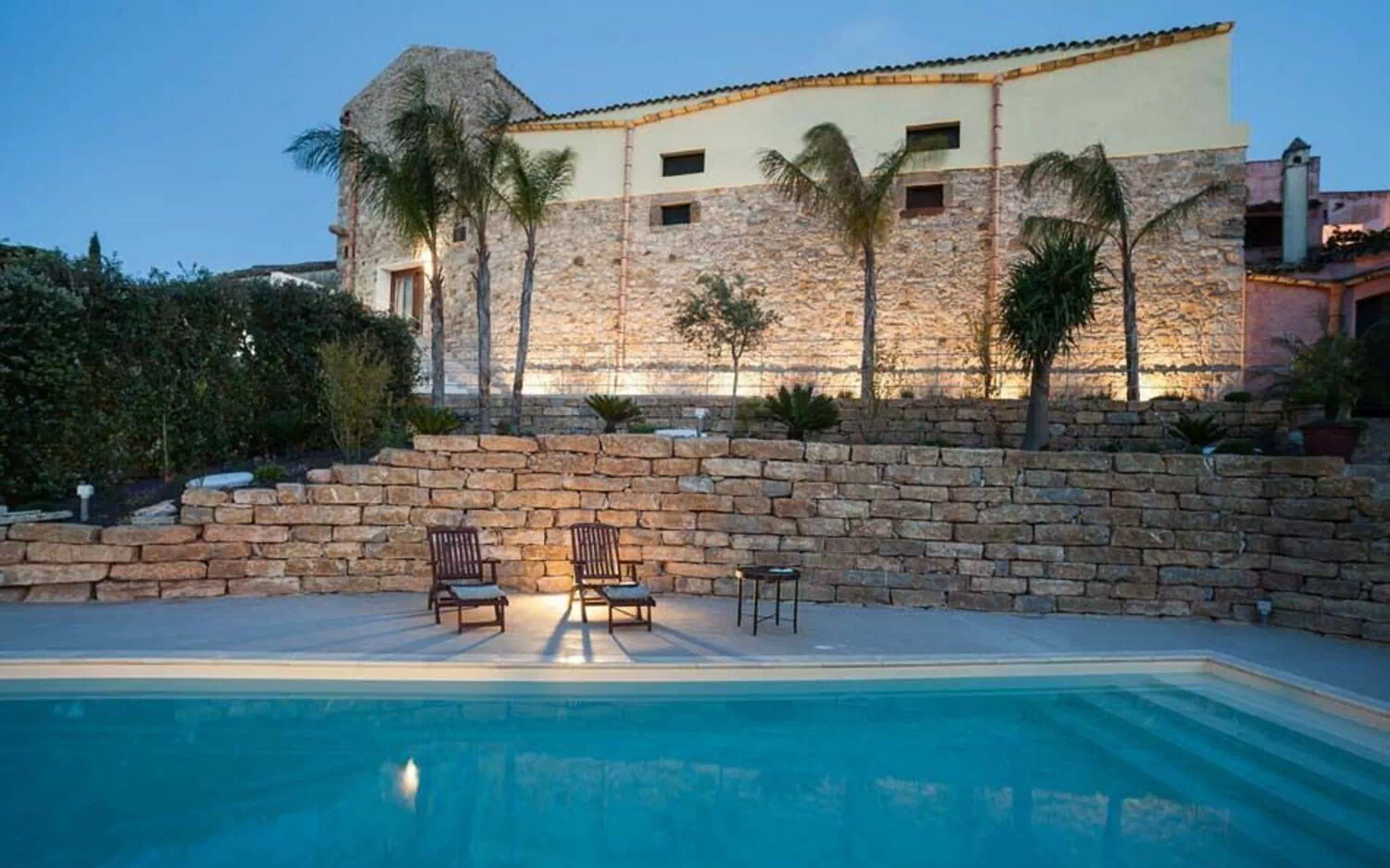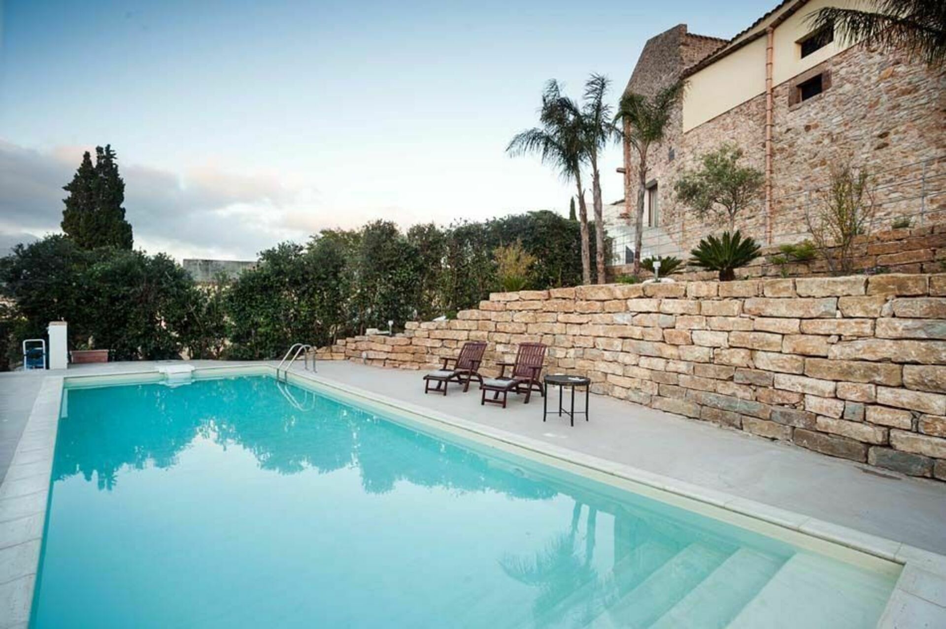 På kanten af ​​ejendommen, beskyttet af krat og grønne områder, ligger den vidunderlige swimmingpool med masser af plads til at slappe af for alle Mariettas og Titis gæster.