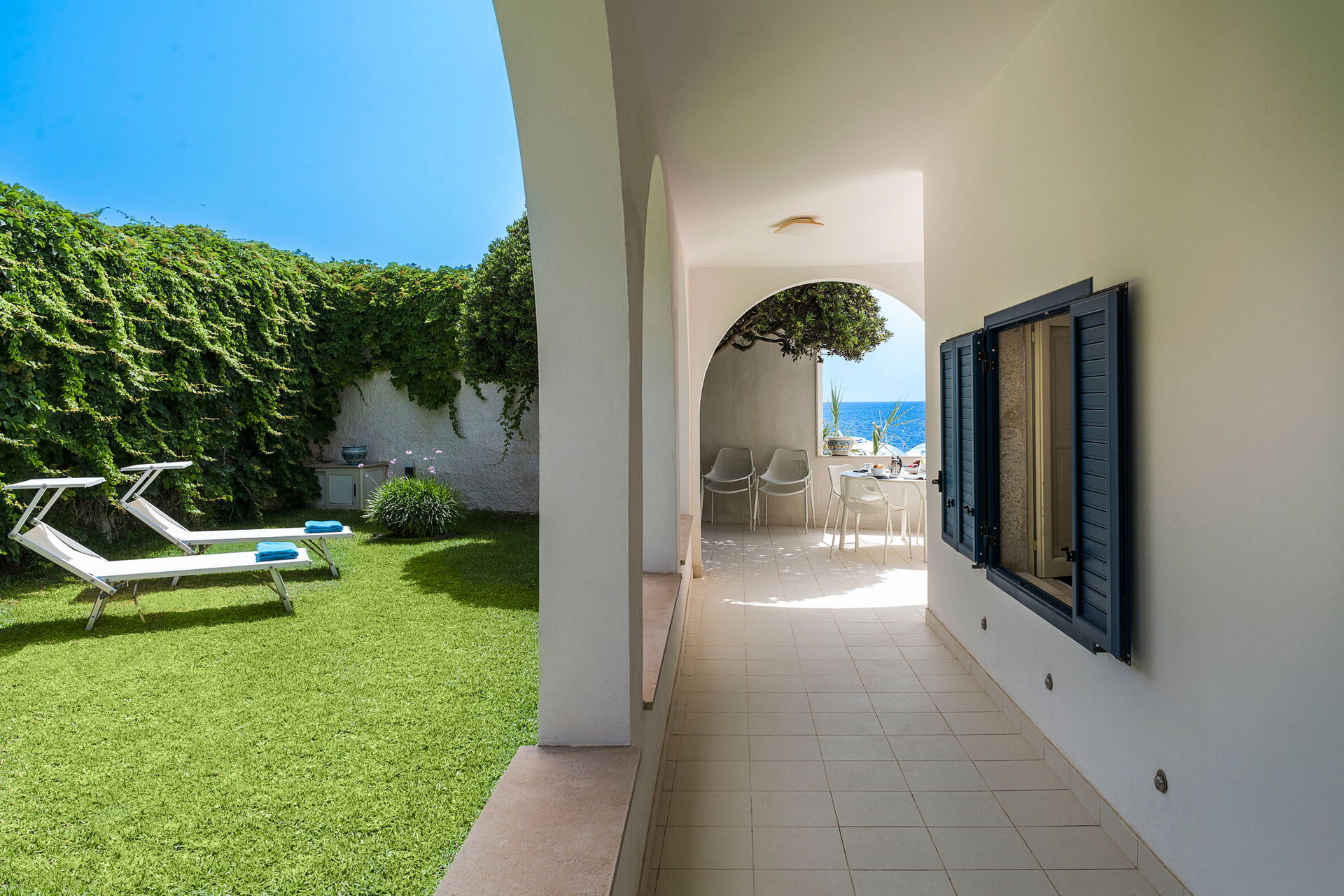Nyligt renoveret, med moderne møbler og over en etage, 3 soveværelser og 3 badeværelser, der er plads til op til 6 personer. Feriehusets terrasse under buerne er perfekt til godt selskab og god mad, mens den flotte udsigt over havet nydes!