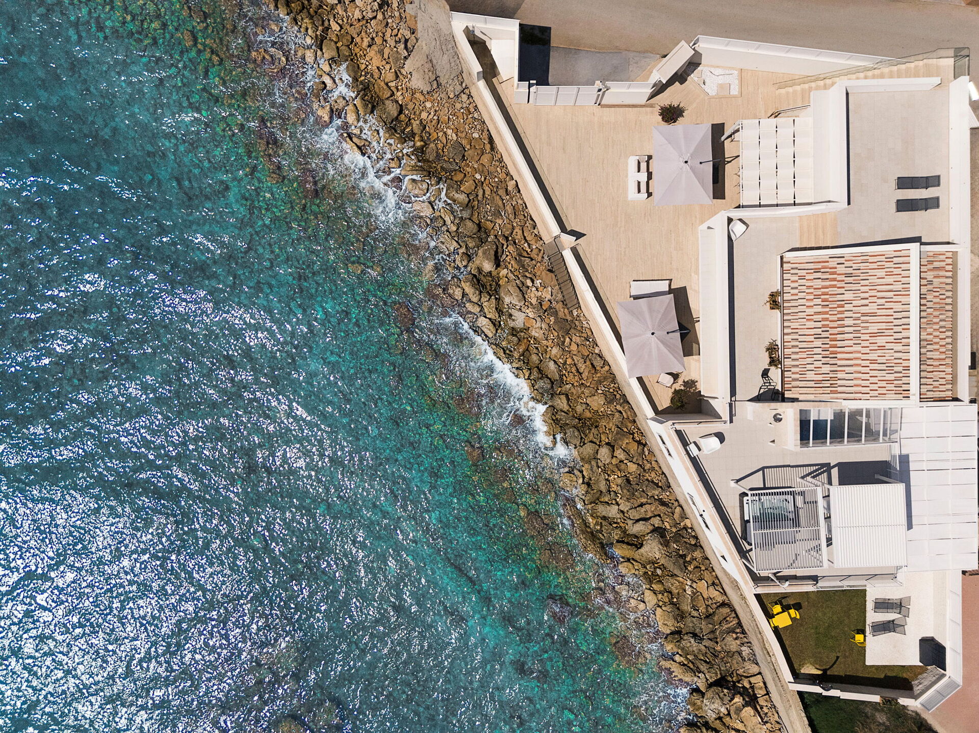 Fra terrassen på ejendommen har du direkte adgang til klipperne og havet via en ståltrappe.
