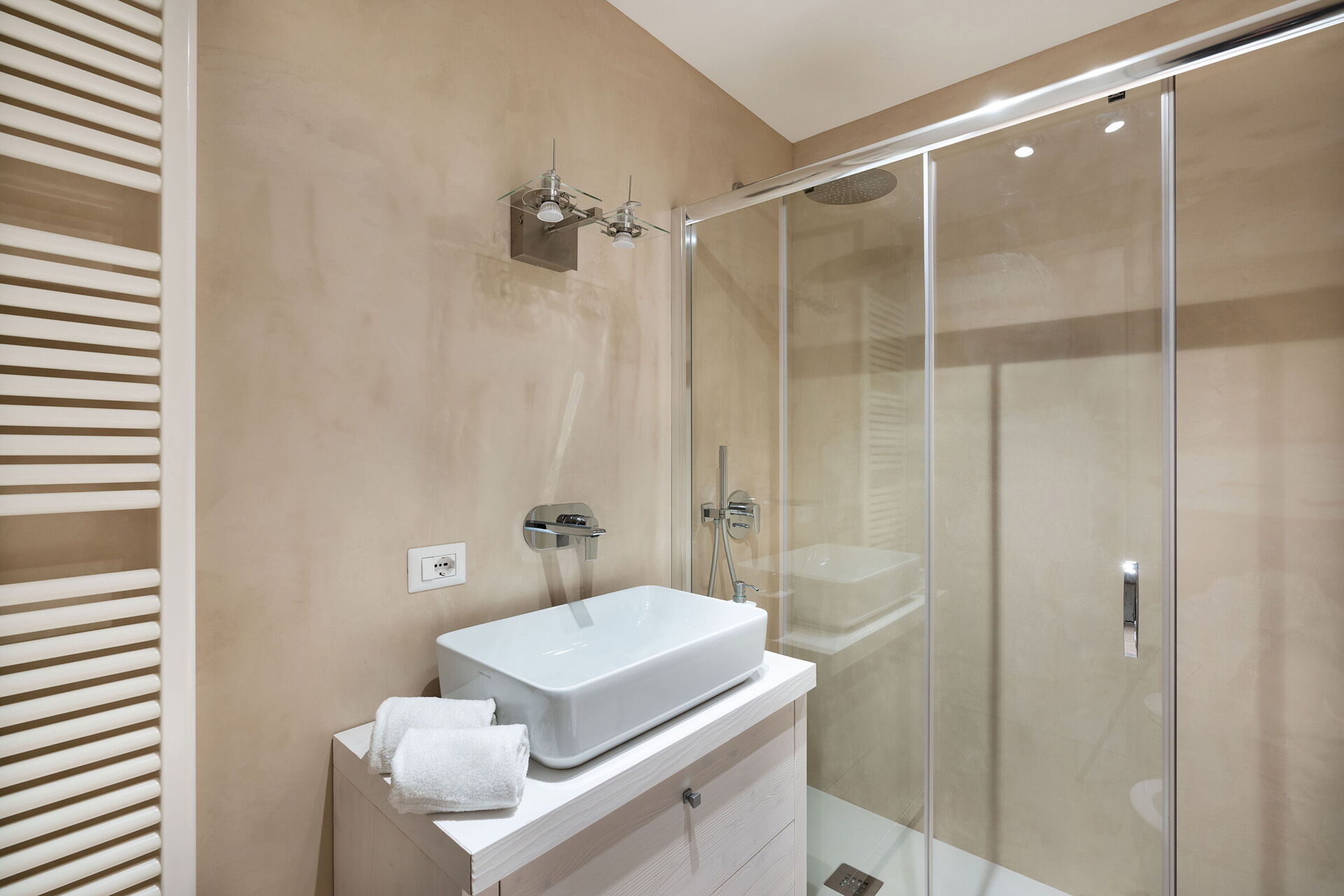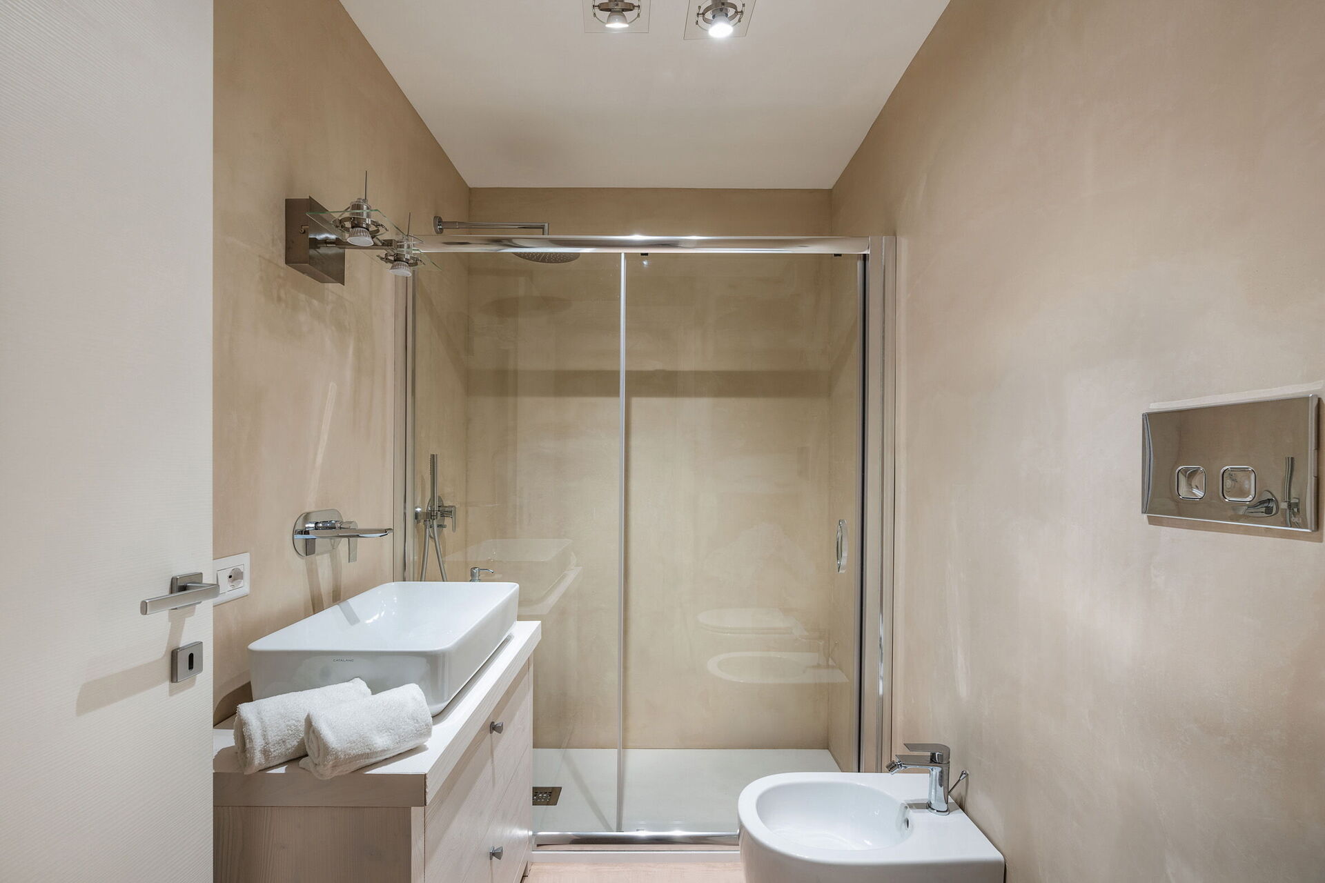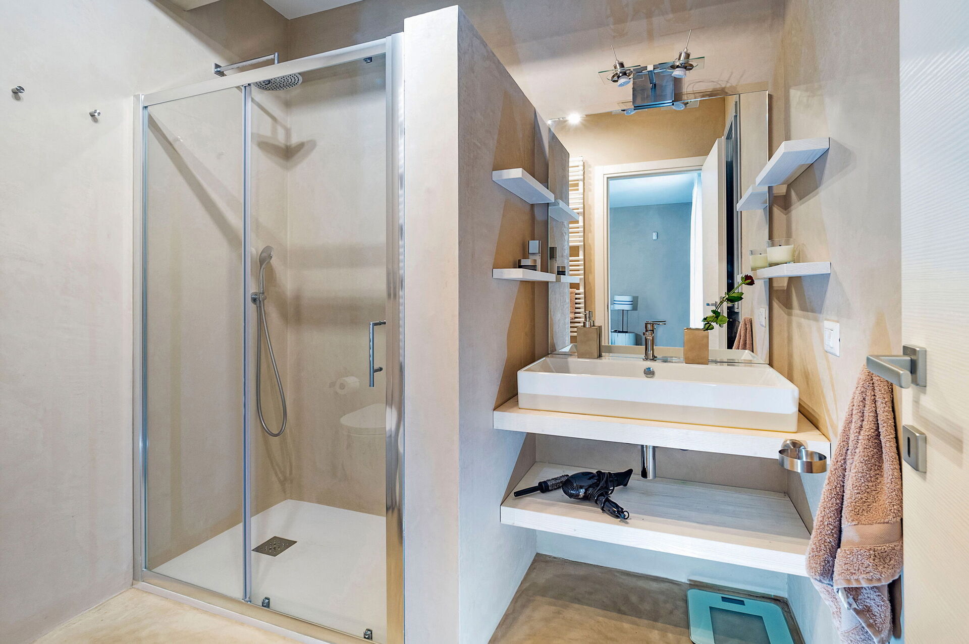 Første sal: soveværelse med dobbeltseng med eget badeværelse med bruser.