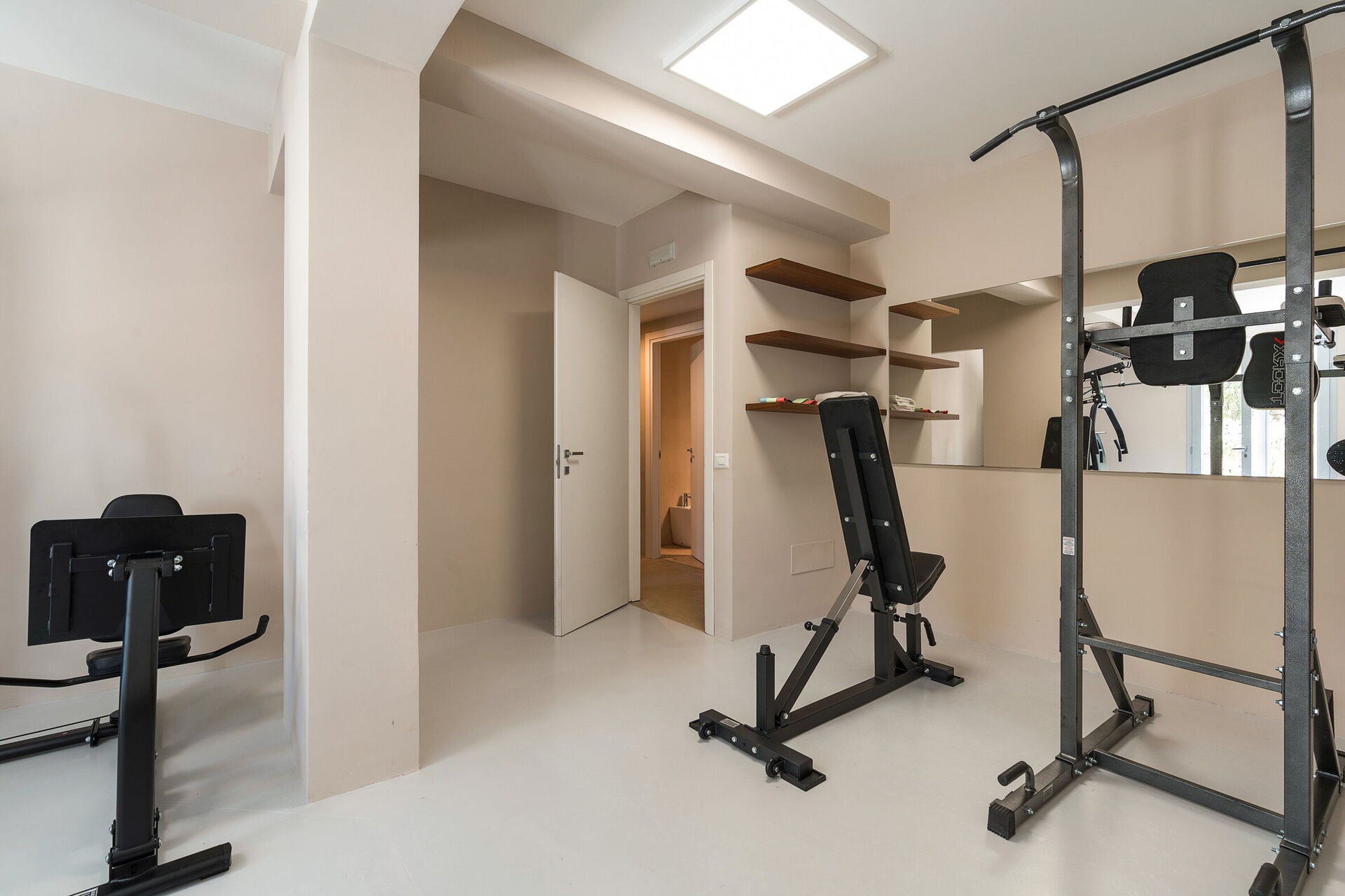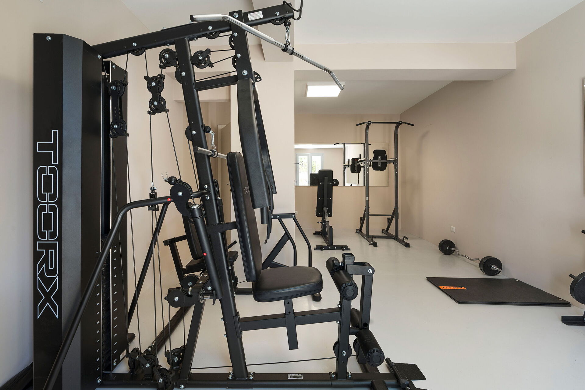 Kælderetage: 2 soveværelser med dobbeltsenge, 2 badeværelser med brusebad, vaskerum, fitnessområde.