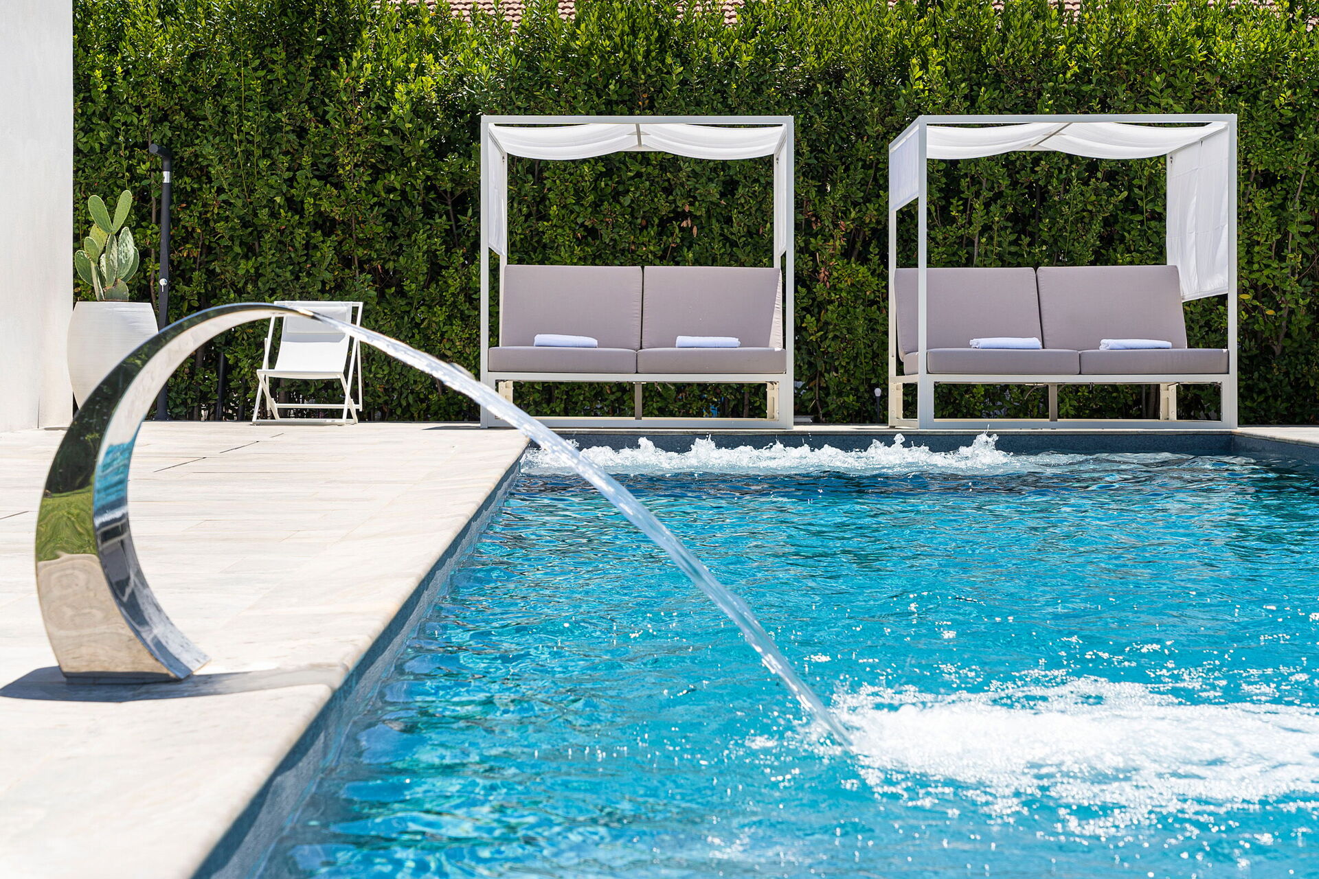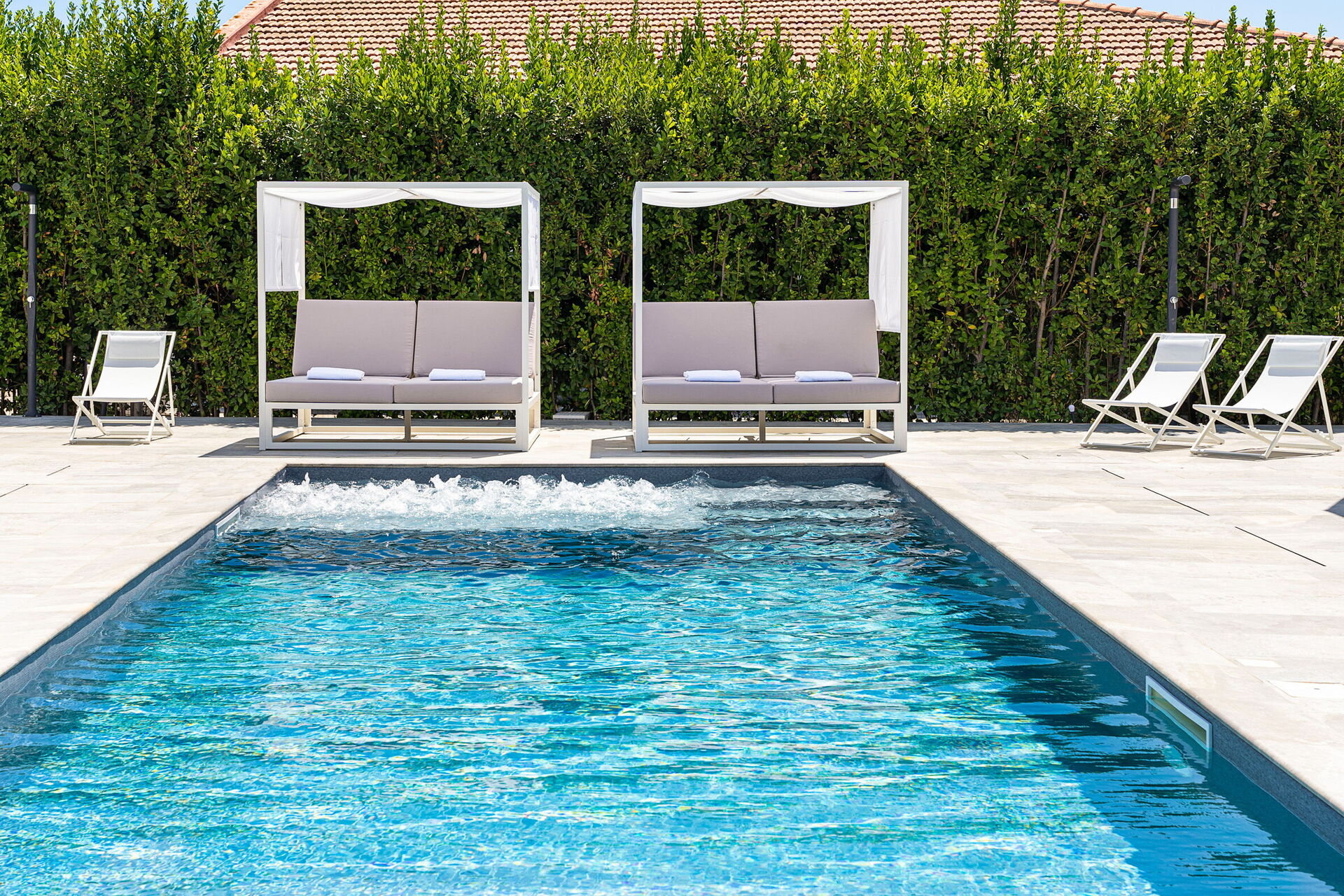 - privat saltvandspool med jacuzzi (15 x 4 meter; dybde: 1,4 meter)