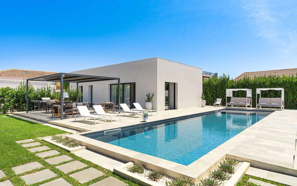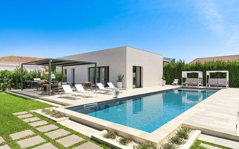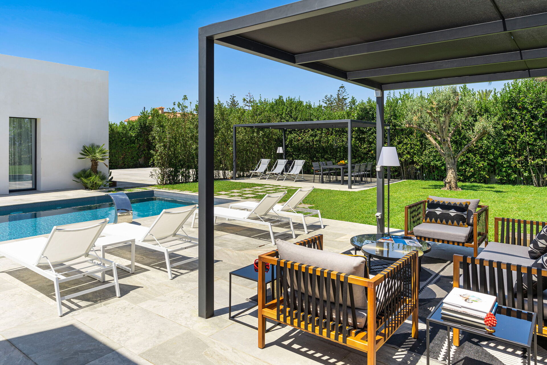 Villaen er moderne indrettet med moderne designmøbler og i udendørsområdet er der pænt møblerede terrasser til en uforglemmelig, afslappende oplevelse.