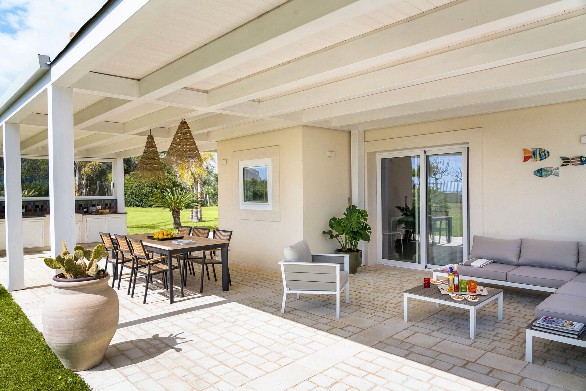Udendørsarealerne med panoramaudsigt tilbyder flere områder, der giver gæsterne mulighed for at nyde et behageligt ophold med familie eller venner. Her kan du slappe af på verandaen udstyret til udendørs spisning eller i det store poolområde med solterrasse, perfekt til at nyde den sicilianske sol.