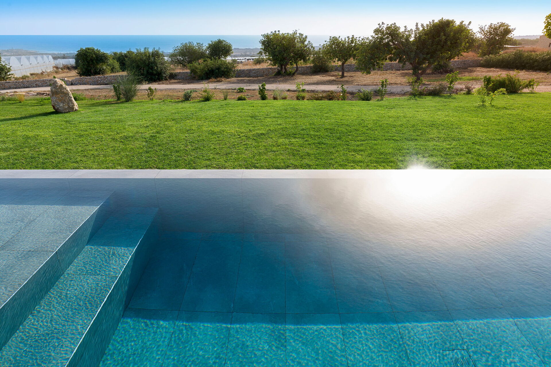 Eksklusivt sommerhus i udkanten af Scicli (spektakulær barokby på UNESCO's verdensarvsliste) i en rolig og naturskøn beliggenhed med en fantastisk udsigt over det smukke landskab, landskabet og havet, både fra poolen og fra de rummelige terrasser.