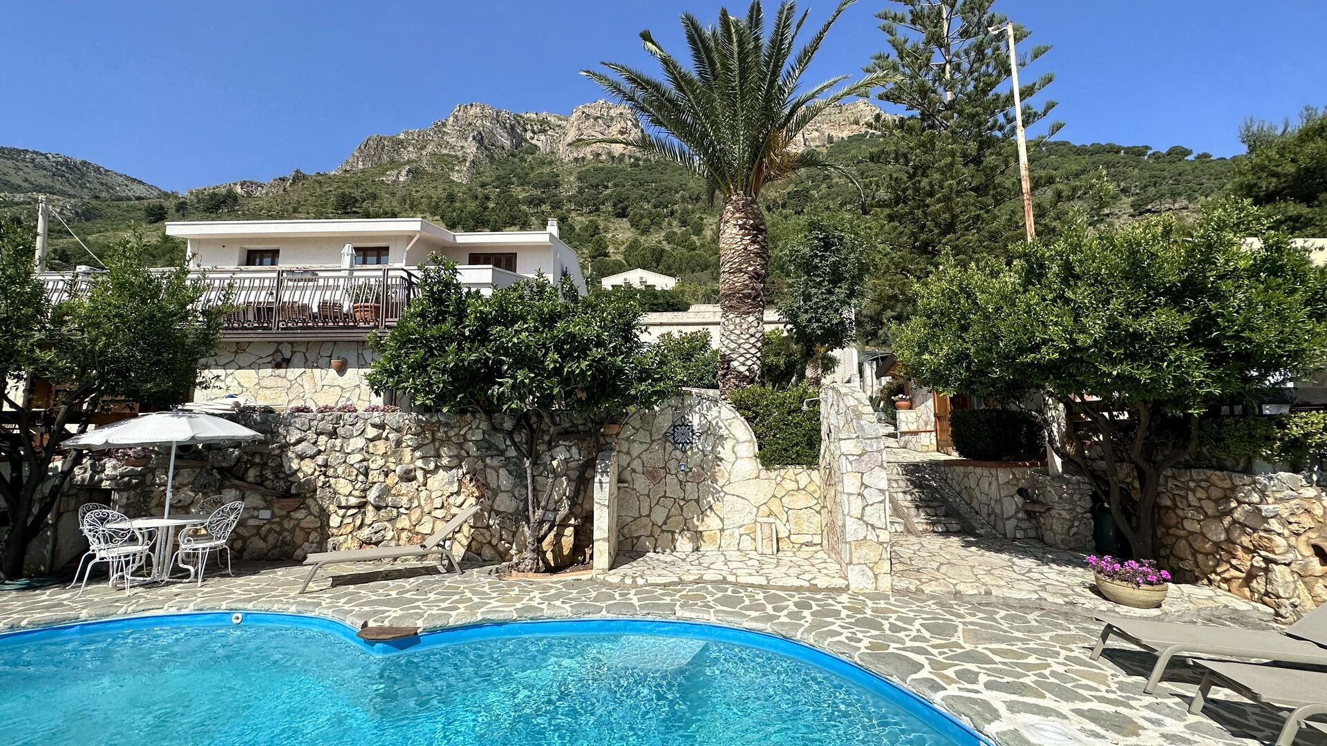 Afstande: Castellammare del Golfo, med butikker af enhver art ca. 1,5 km, strandene i Castellammare 2 km, Scopello 5 km, Palermo lufthavn 15 km.