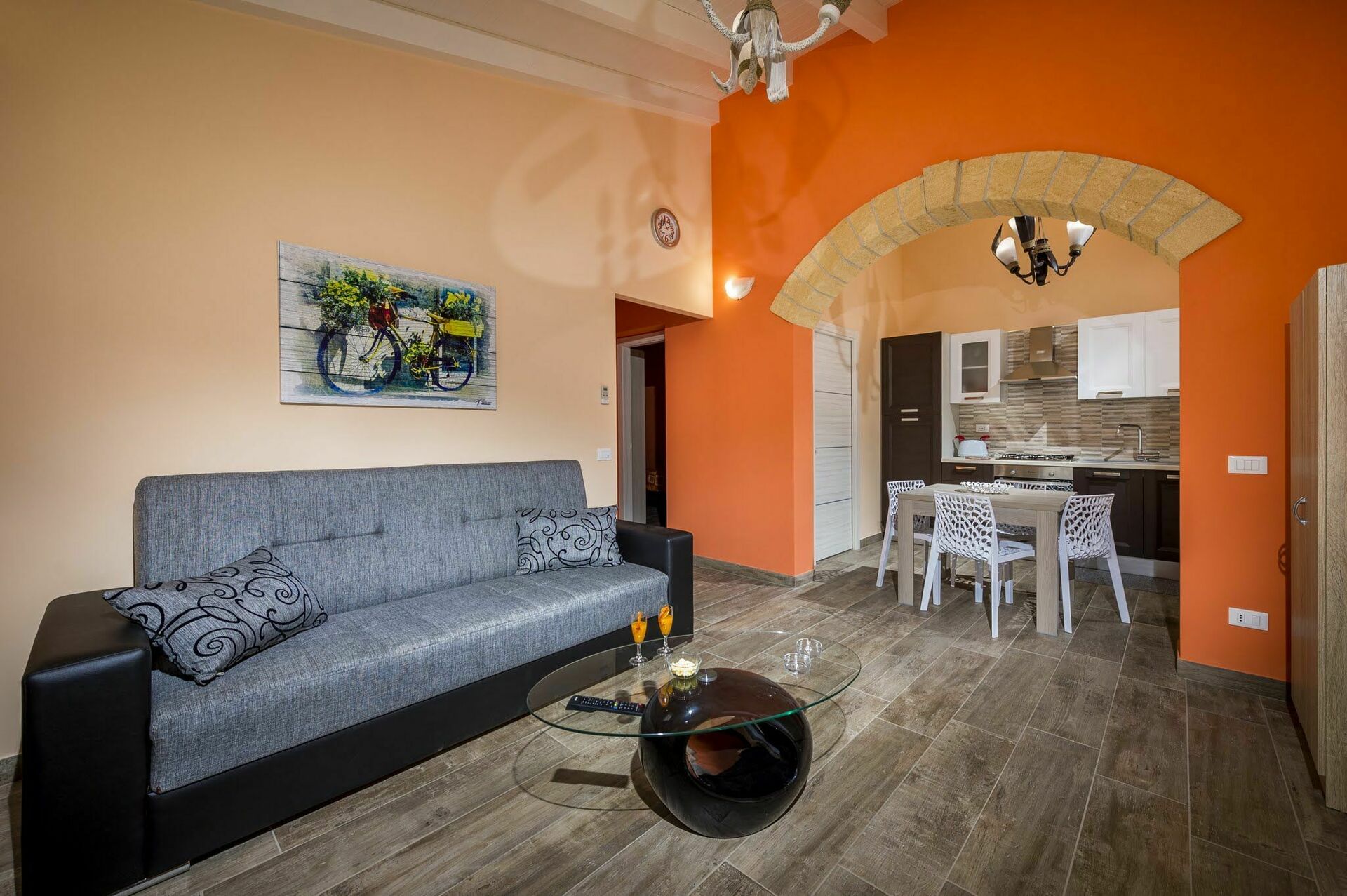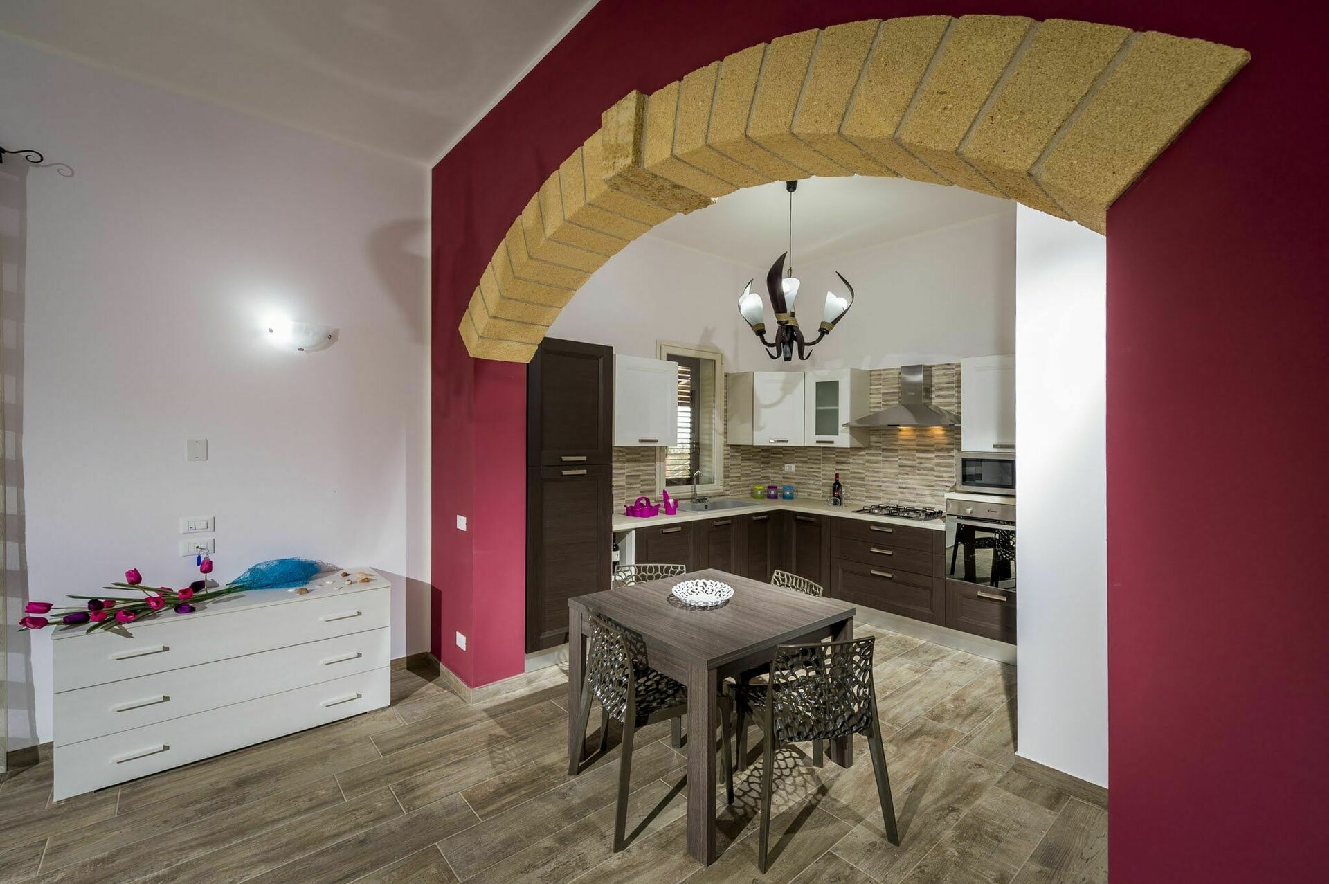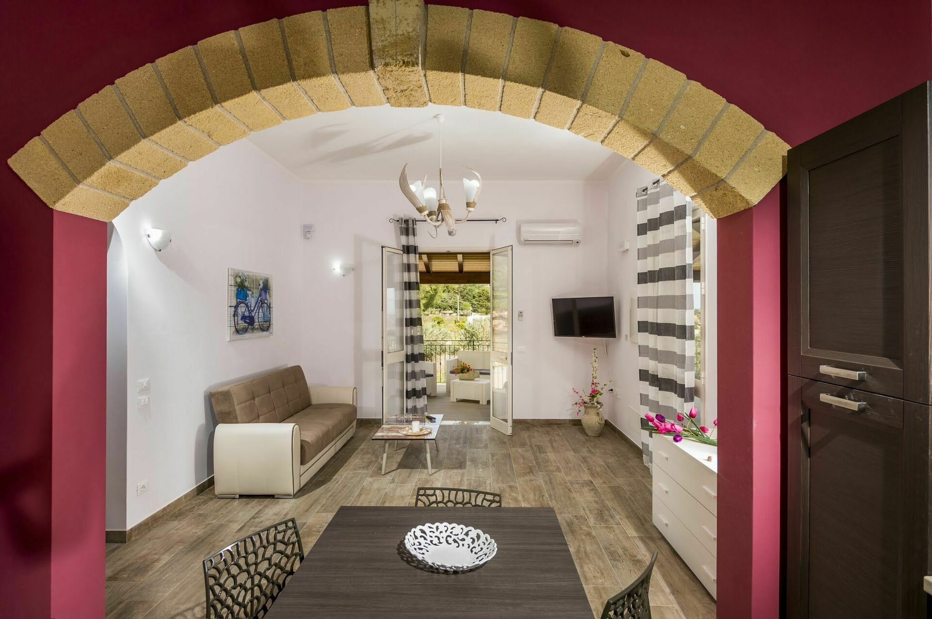 Huset er omgivet af en frodig have med oliventræer og typiske middelhavsplanter. I restaureringen af ejendommen er der brugt lokale traditionelle sicilianske materialer, som tufsten og træ, der gør værelserne varme og hyggelige.