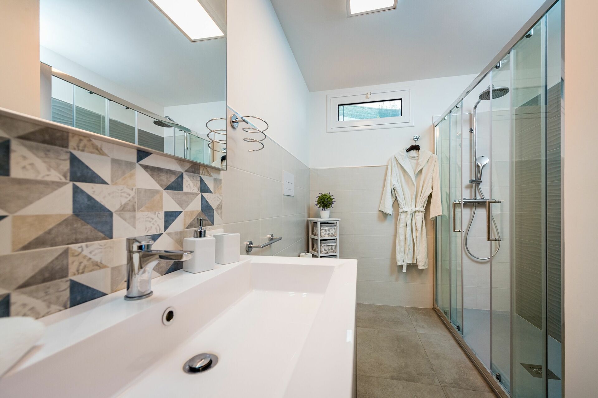 This house is lovely, in the morning you can sit overlooking the valley and the sea in the shadow. The beds are good, the bathrooms are good and for the master spacious. The kitchen should have a watercooker for tea, which is missing now also a proper cutting knife is missing and enough clothes hangers. For the pool is floating stuff available and there is a proper washing machine.