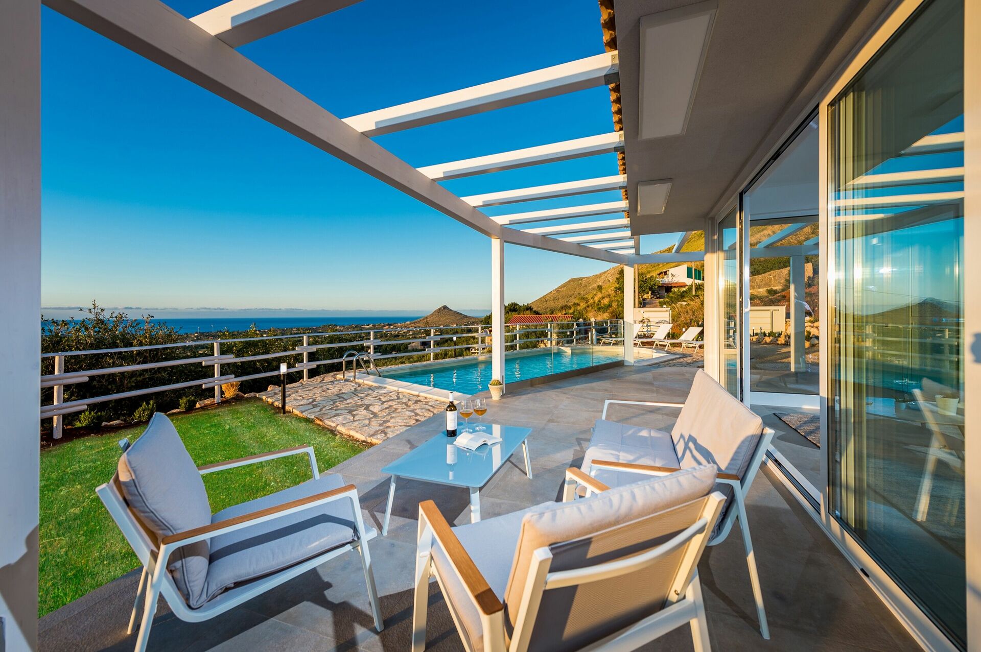 Lovely modern villa with great views. The pool is superb
