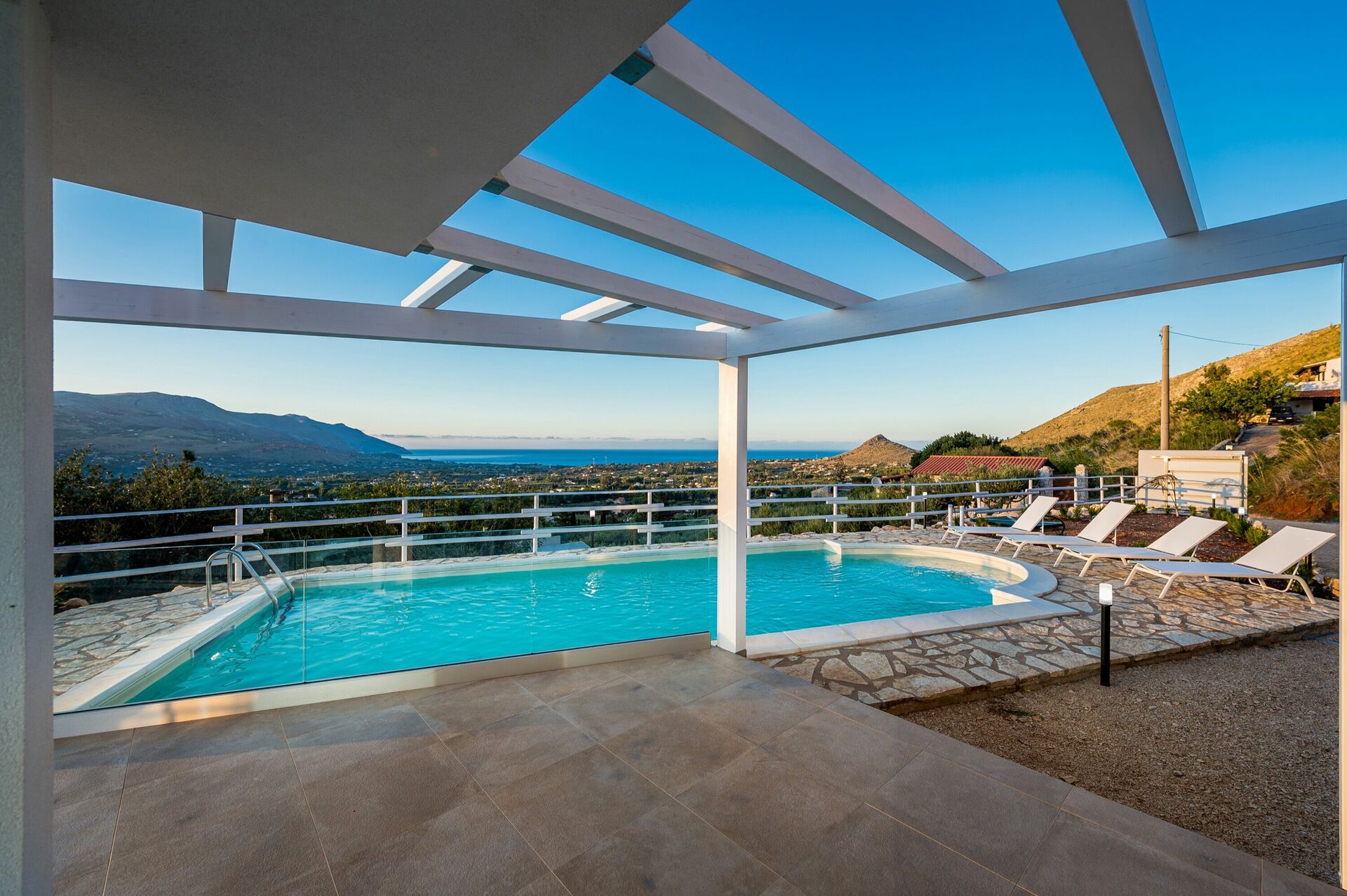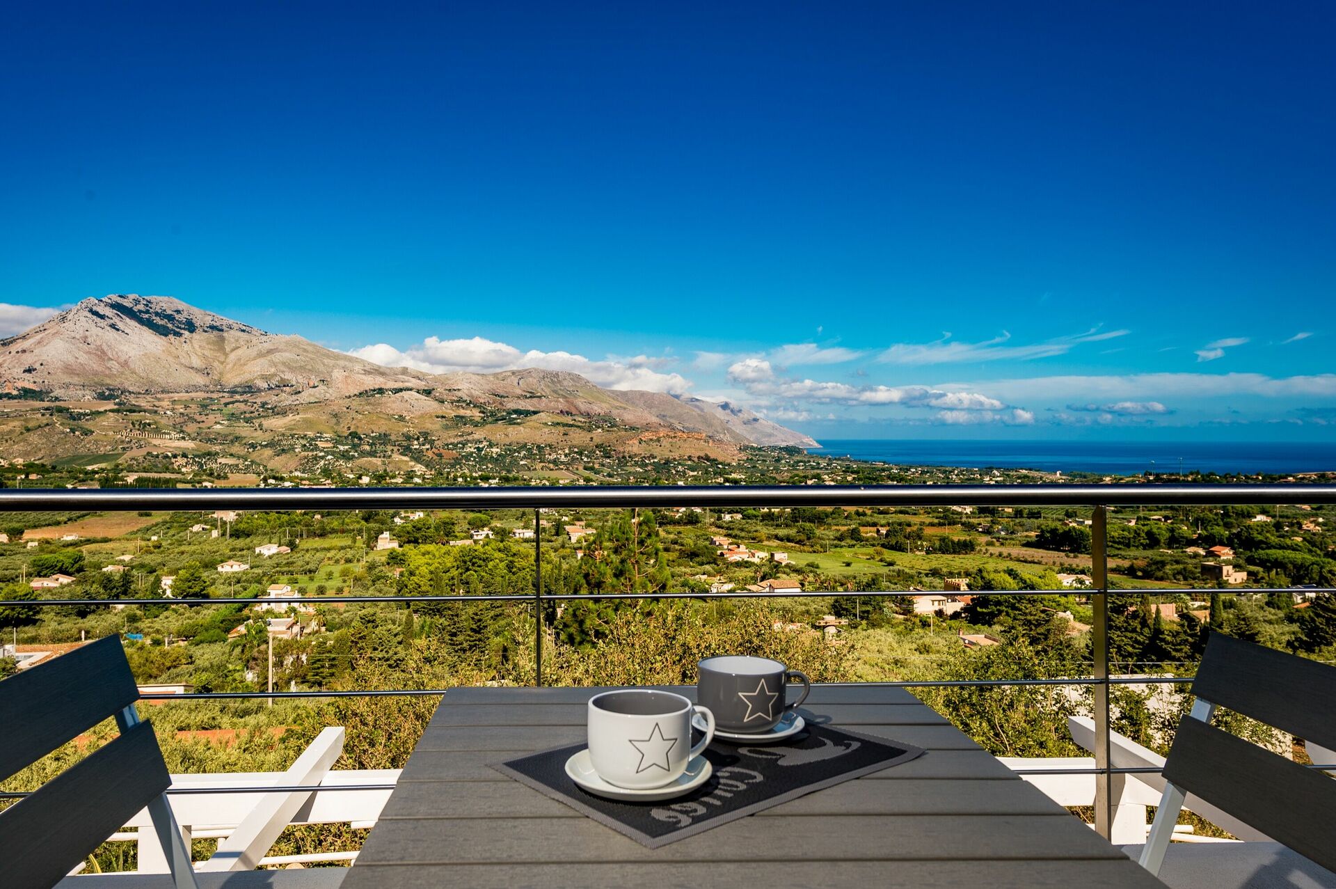 WOW what a fantastic villa. Can't fault it! Stunning views. Beautifully decorated. Comfortable beds and sofas. Master bedroom is stunning with it's balcony. Plenty of crockery and cutlery. Had one small issue with level of water in pool but the owner was very helpful and sorted it the next day. We have stayed in Scopello and Castellmarre before and this was situated halfway between the two which was ideal. 10 mins to either by car. Best beach is Guidaloca, 10 mins drive. Peaceful area with stunning views.
