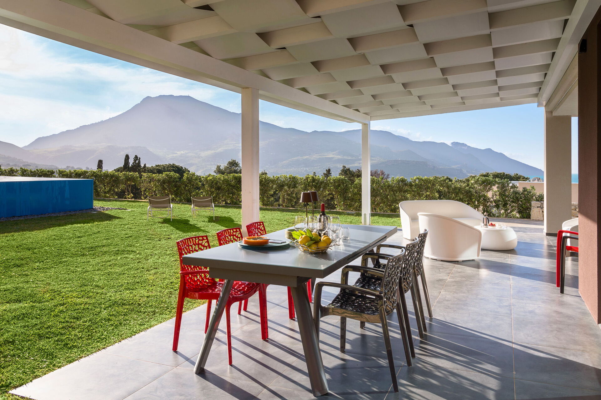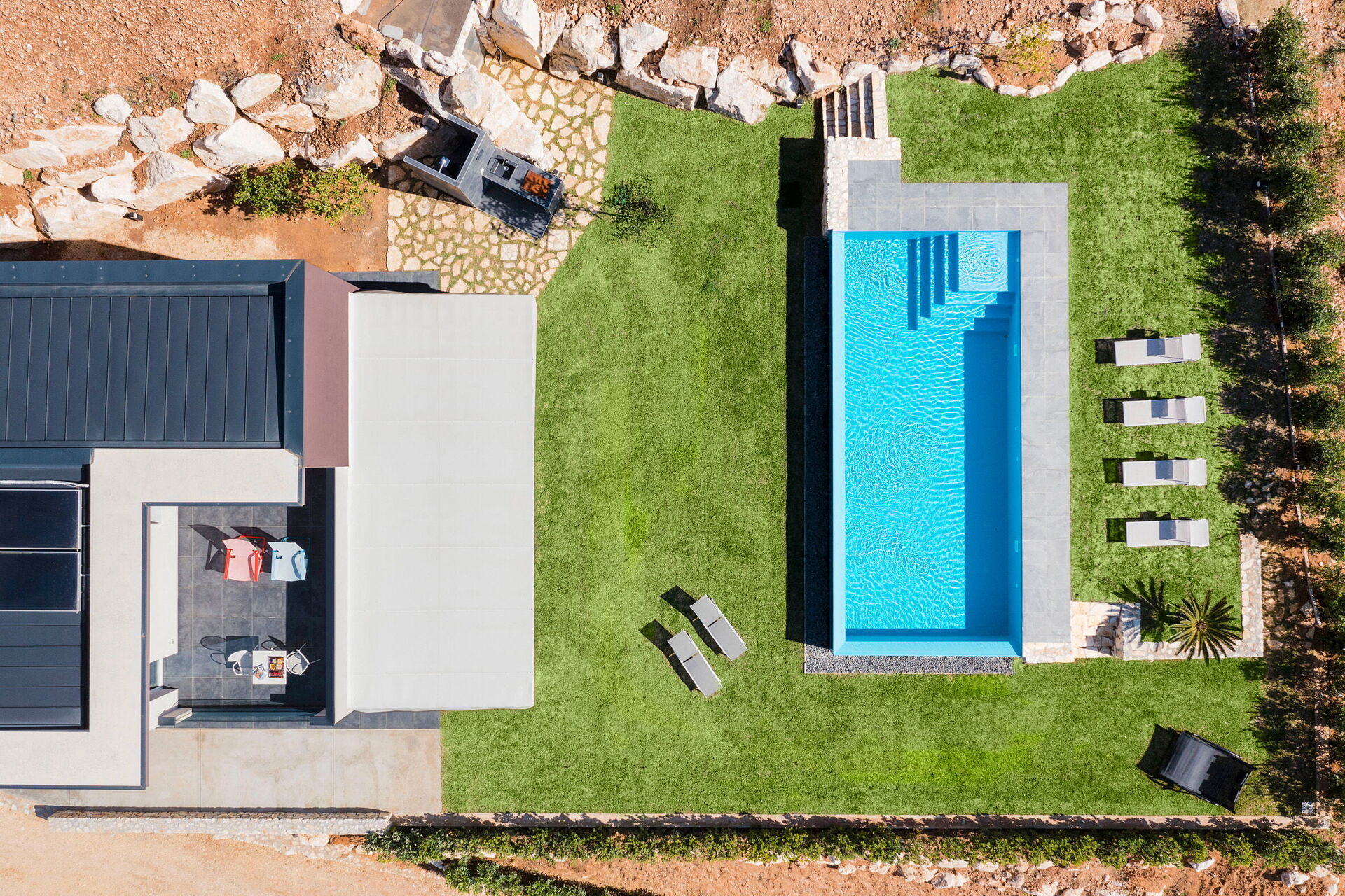 Plænen er særdeles velholdt og poolen med udsigt over landskabet kan friste de fleste. Der er liggestole rundt om plænen og en møbleret veranda til både måltider og afslapning, samt en stor terrasse på første sal!