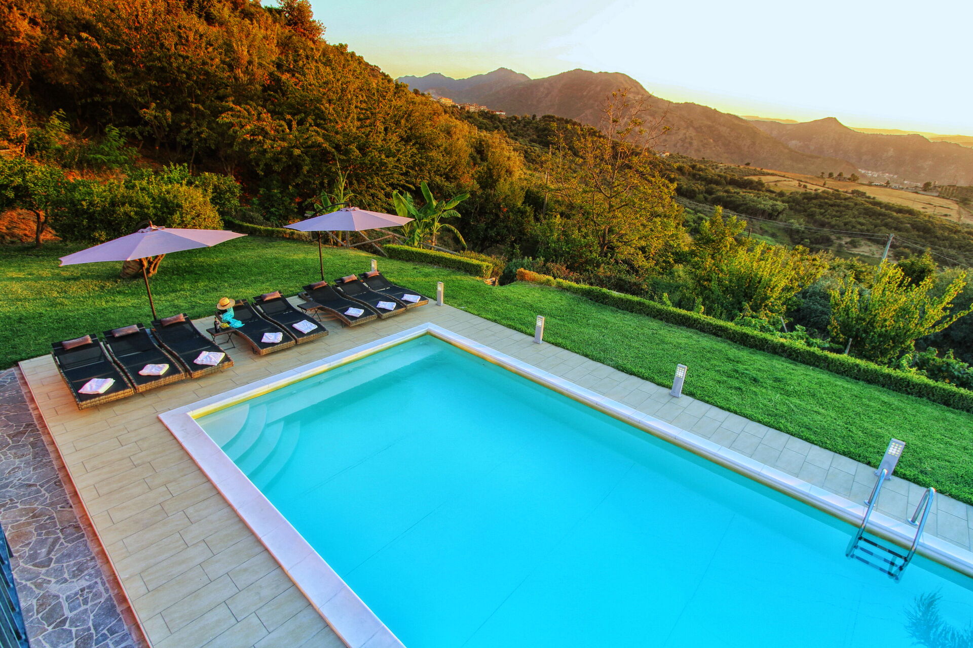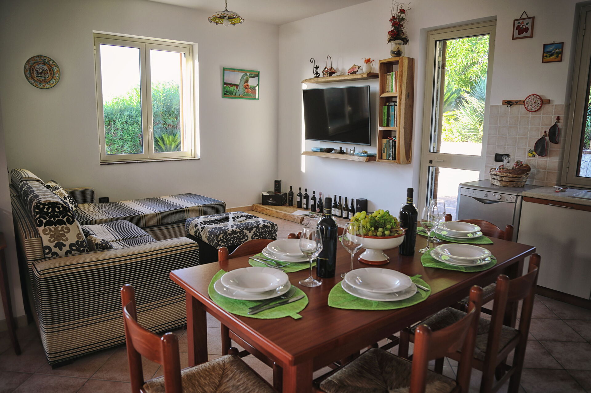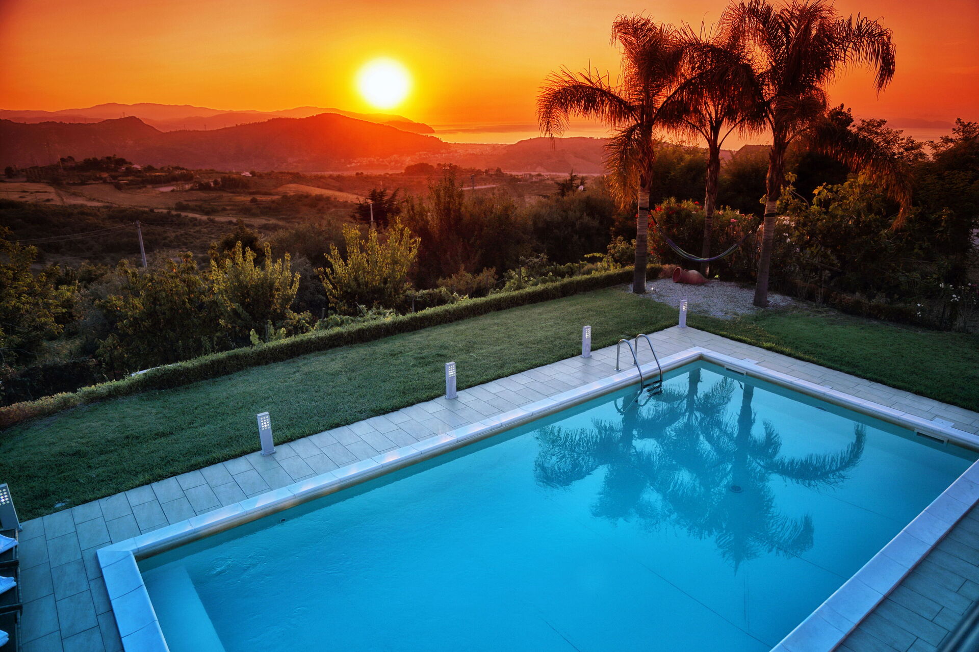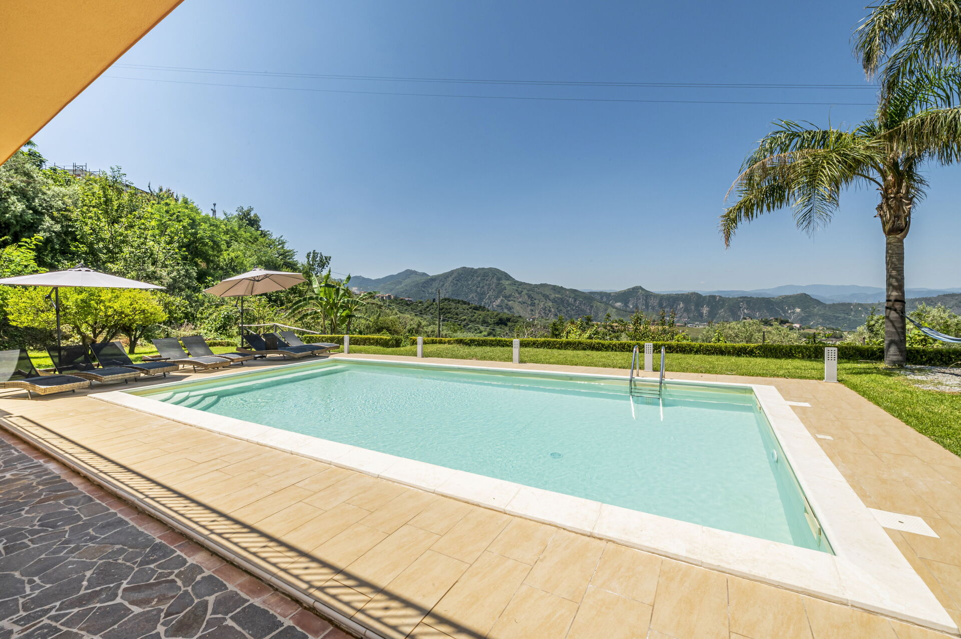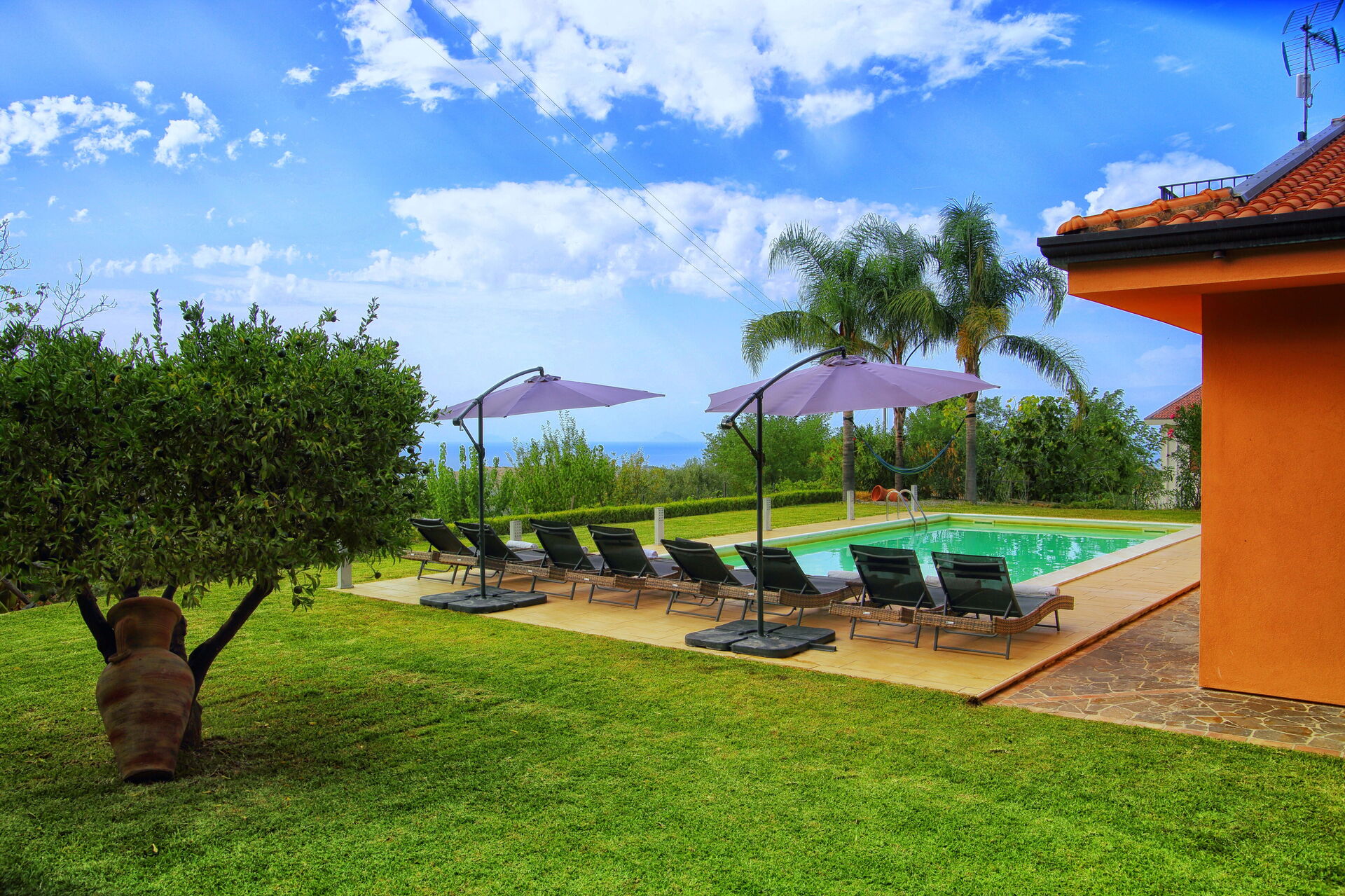 Udendørsområdet har en møbleret spiseplads under verandaen, fuldt udstyret grillplads og en swimmingpool med hydromassageområde og poolterrasse med 8 solsenge, her er der mange muligheder for at nyde uforglemmelige stunder under den sicilianske sol.
