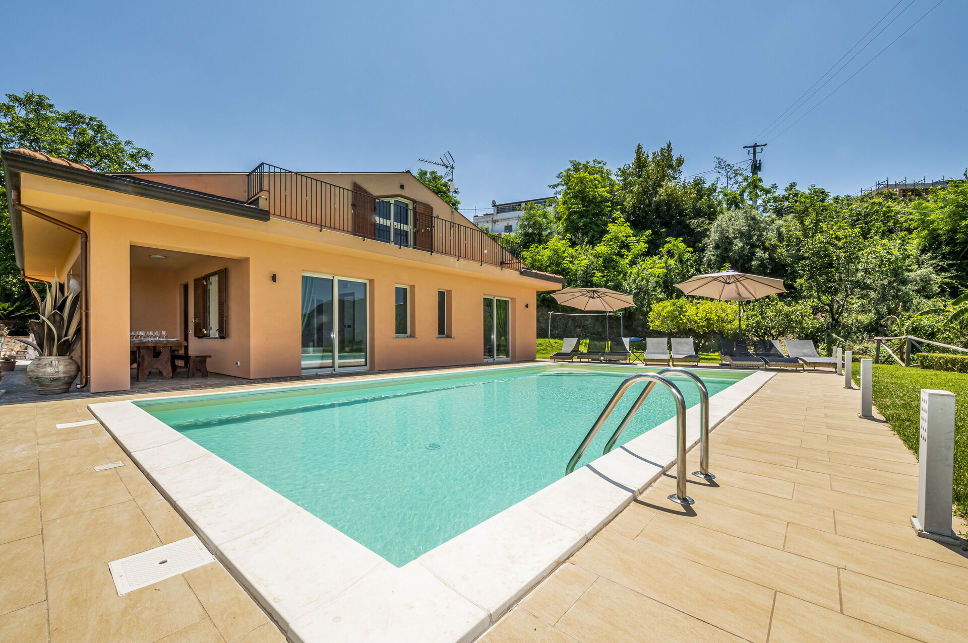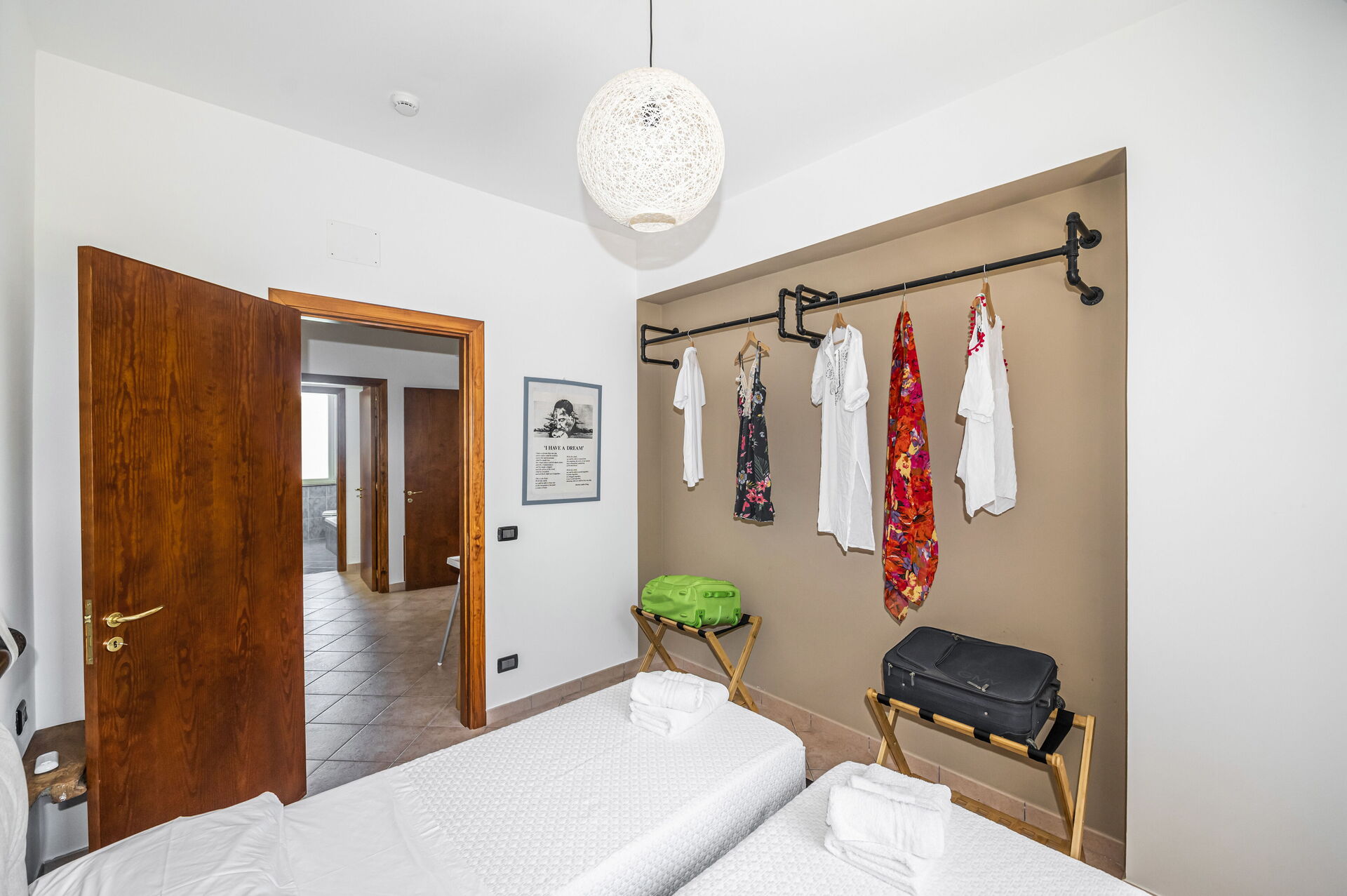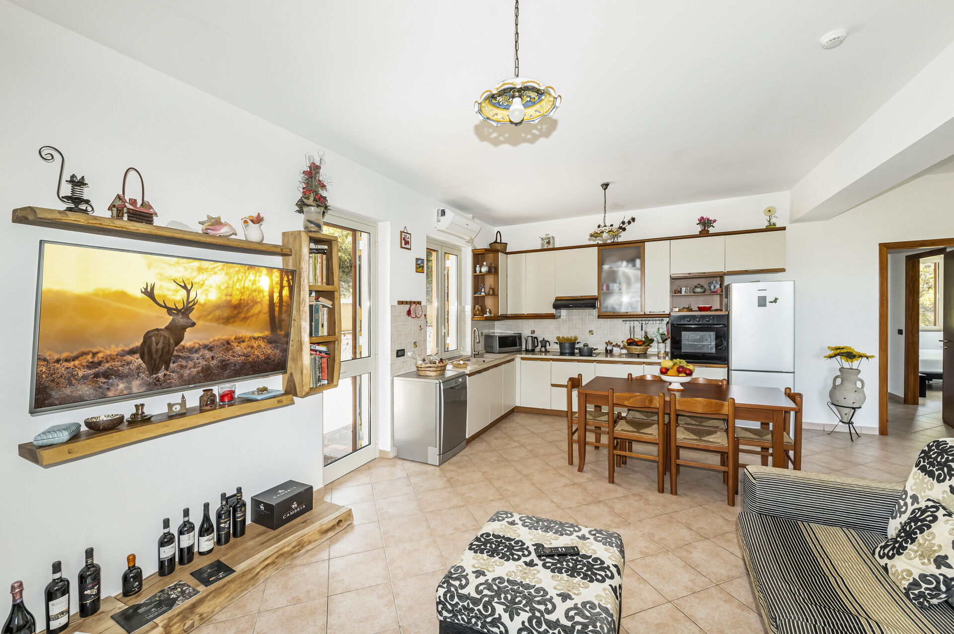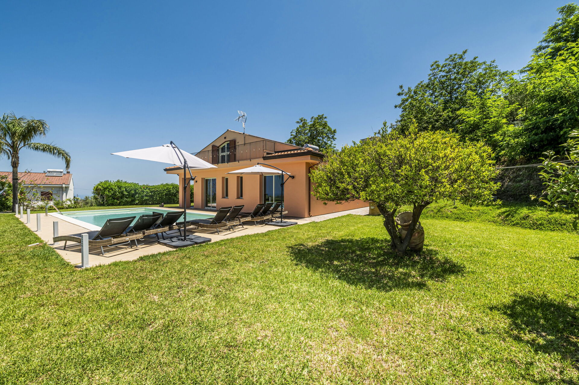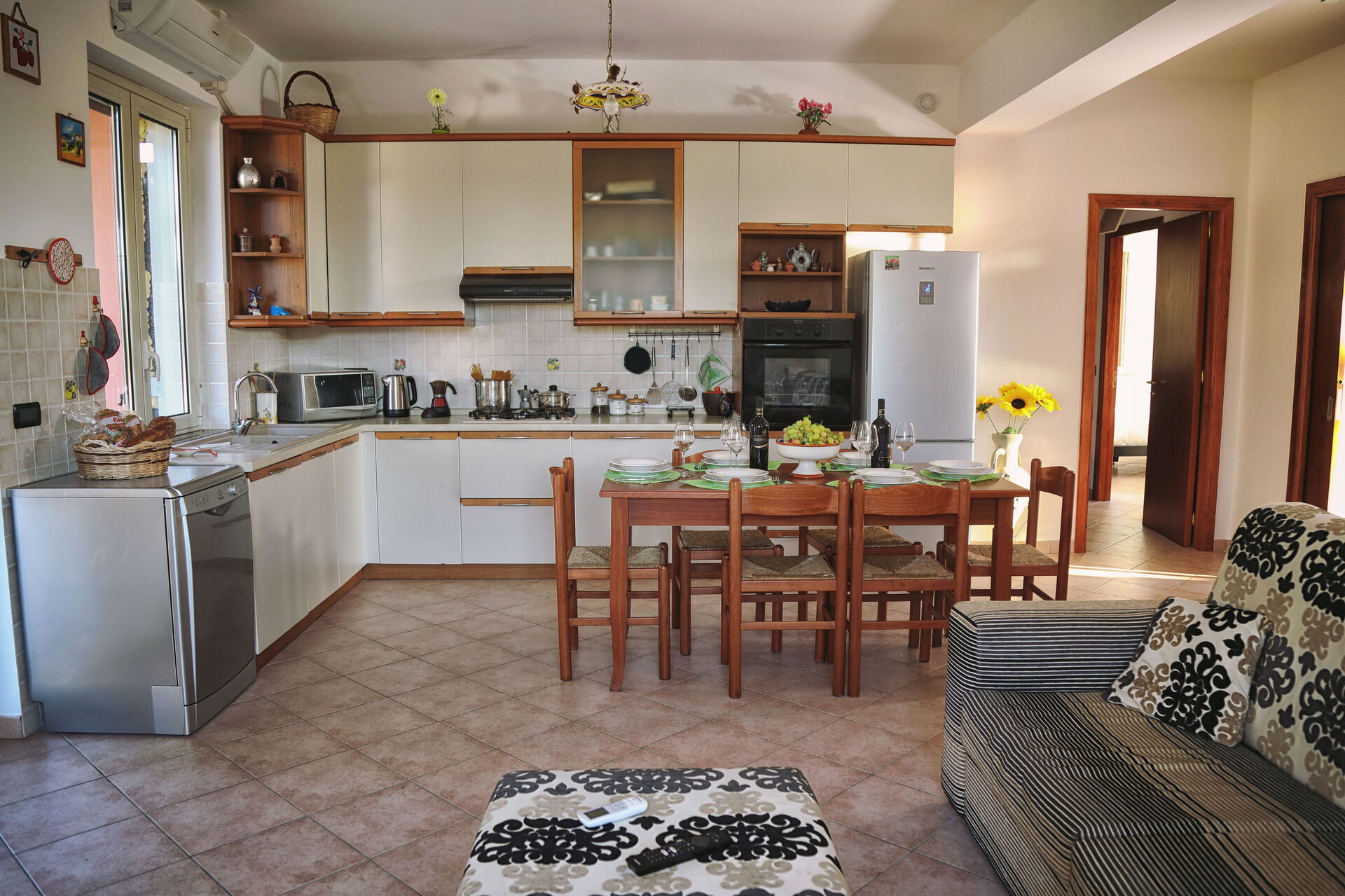 Udendørsområdet har en møbleret spiseplads under verandaen, fuldt udstyret grillplads og en swimmingpool med hydromassageområde og poolterrasse med 8 solsenge, her er der mange muligheder for at nyde uforglemmelige stunder under den sicilianske sol.