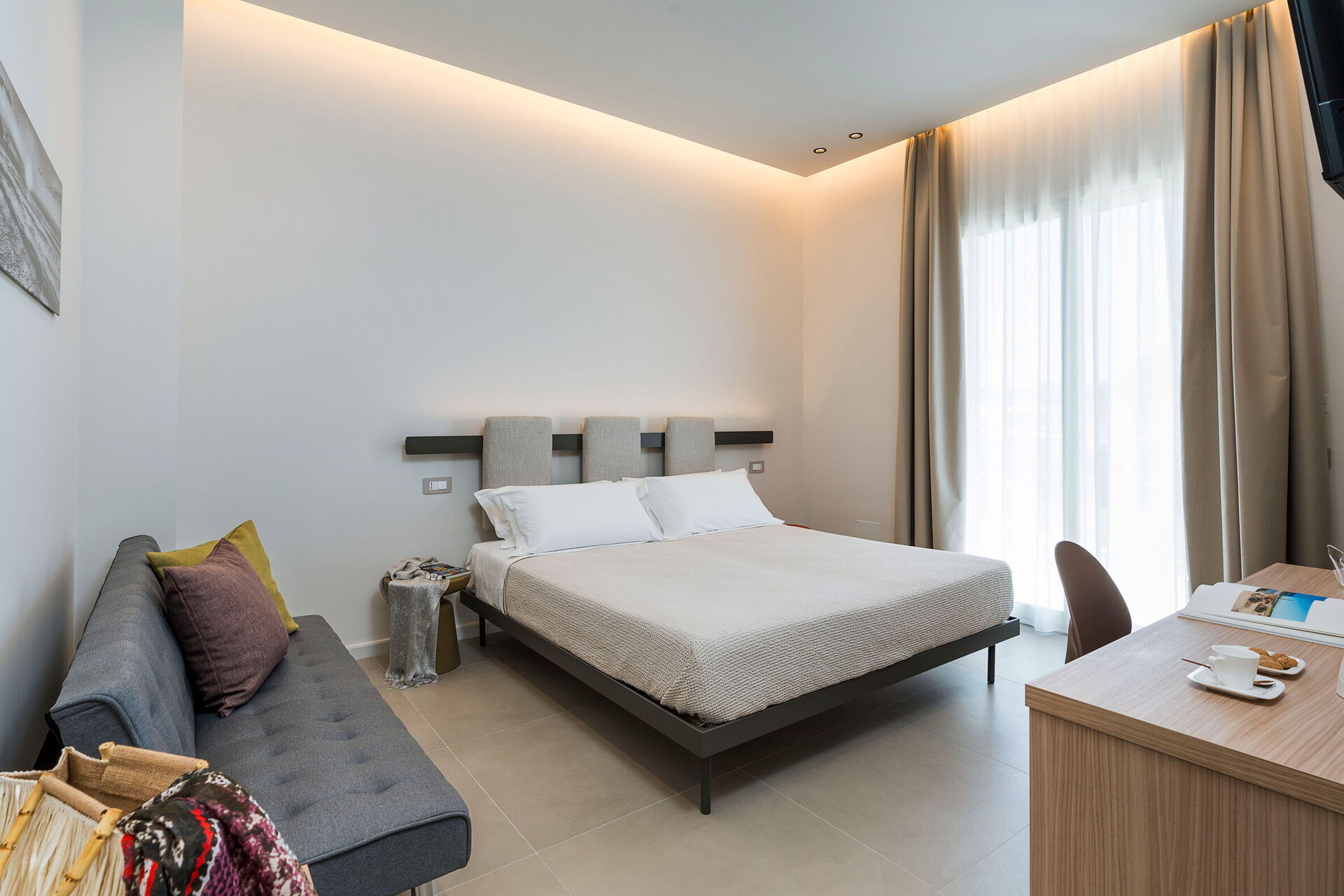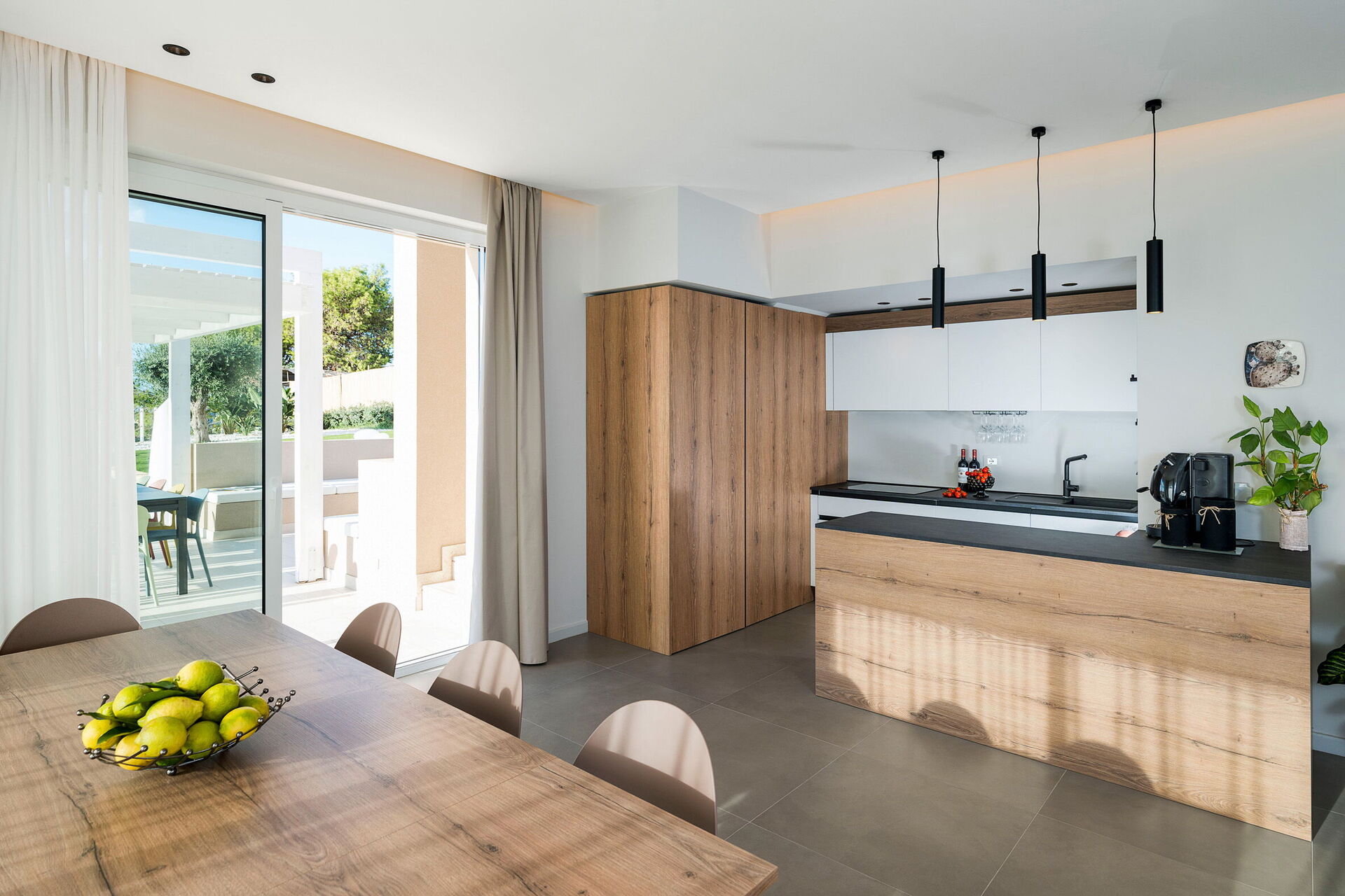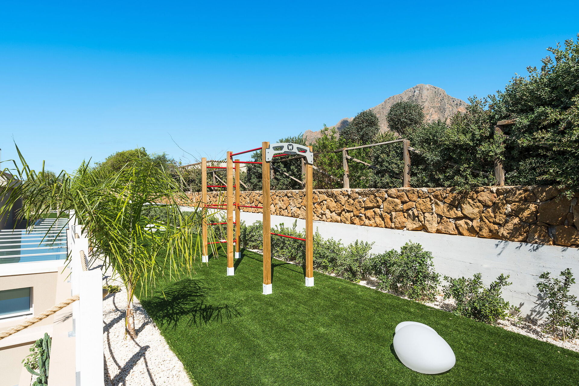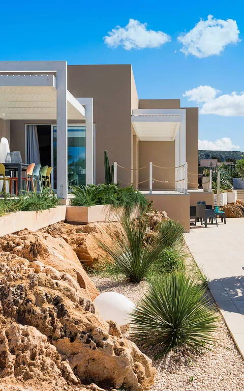 De naturskønne udendørsarealer tilbyder mange steder, hvor du kan tilbringe tid med familie eller venner, hvad enten det er til udendørs måltider eller ren afslapning på en solseng ved poolen. Gæsterne har også adgang til et udendørs spabad på terrassen med panoramaudsigt over havet og en smuk solnedgang.