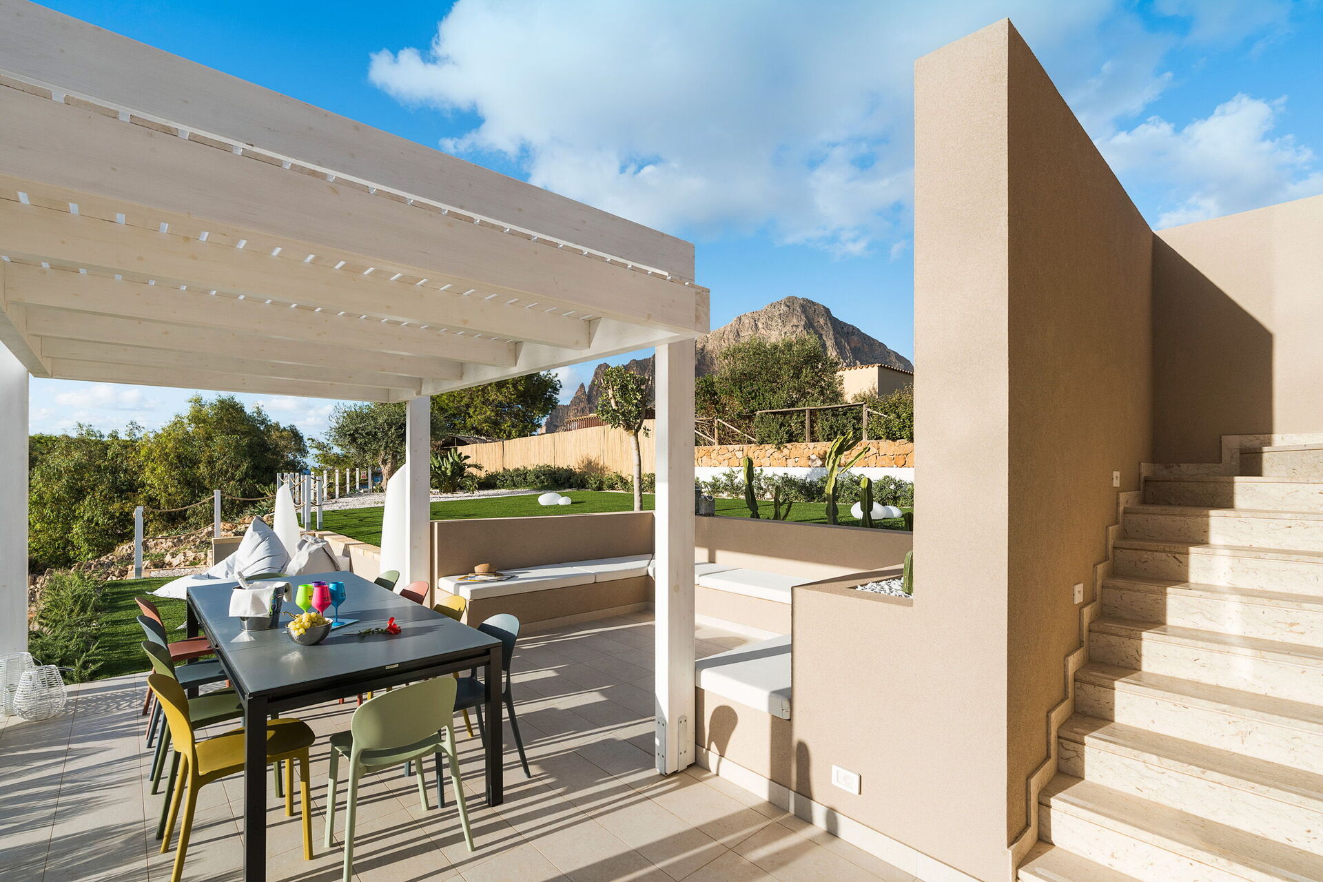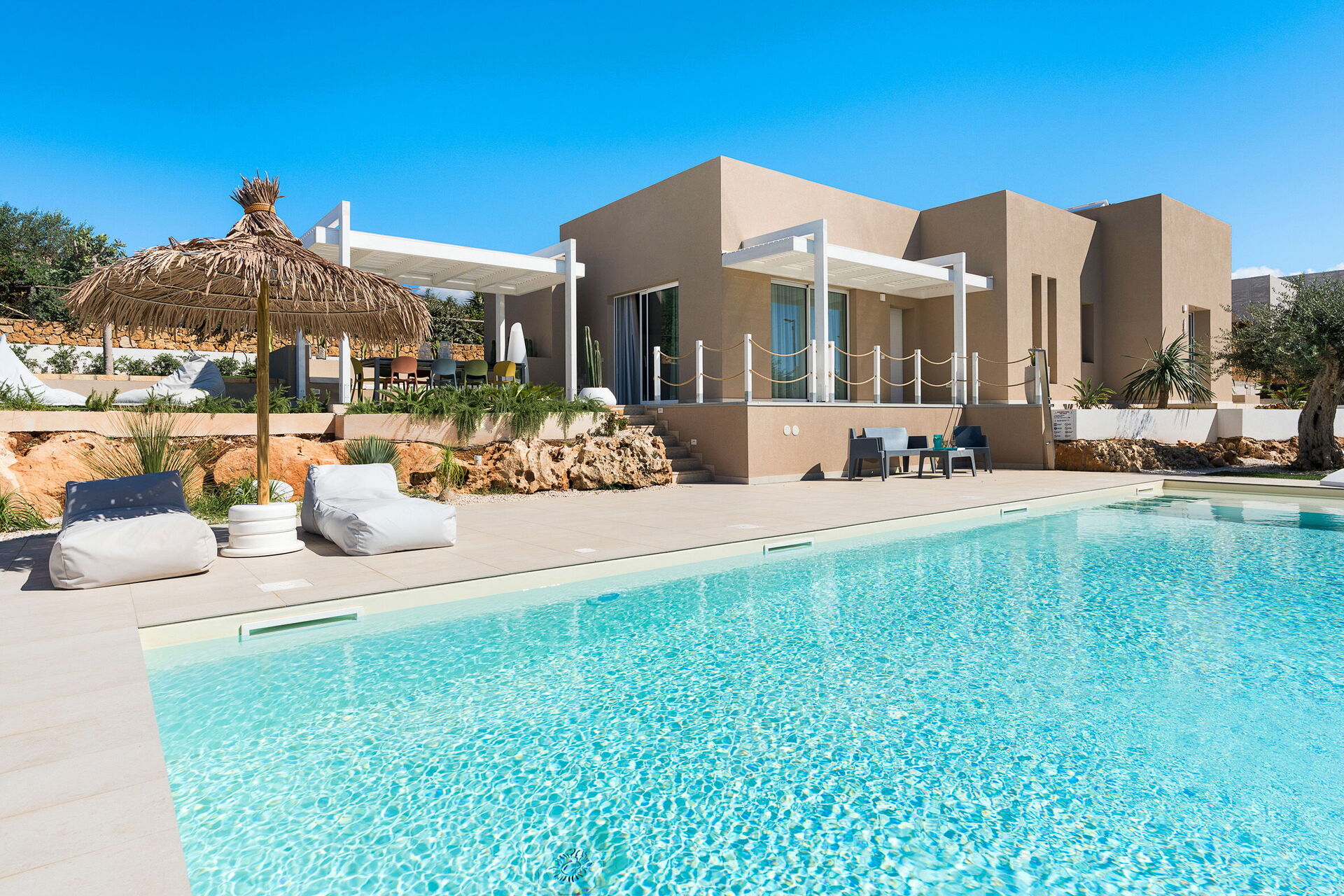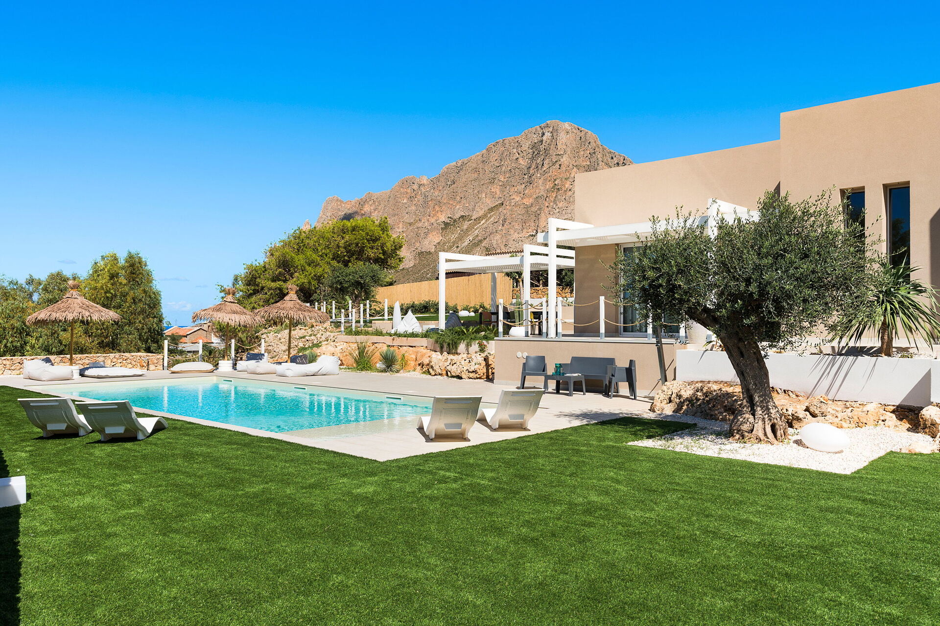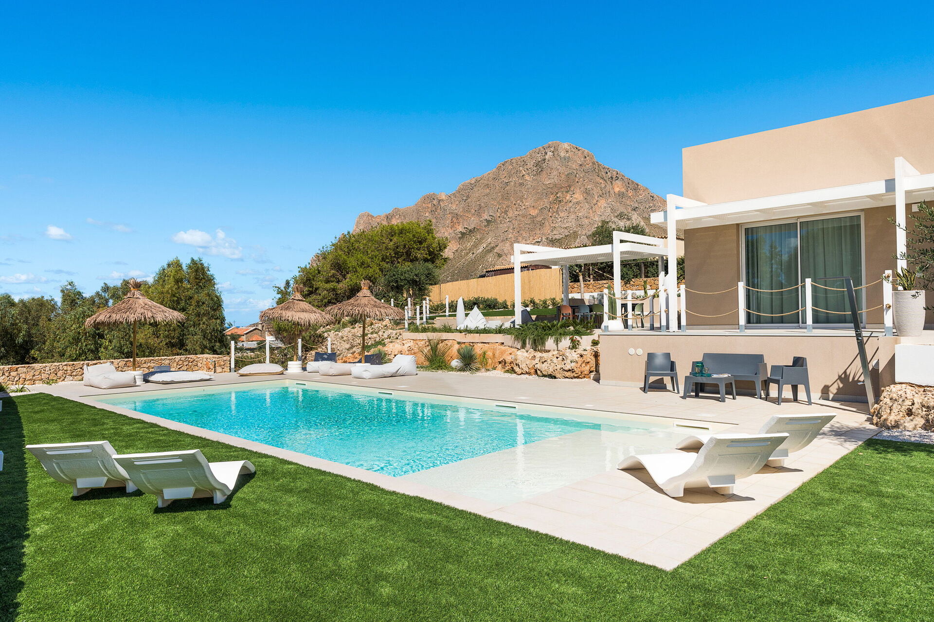 Villa Castalia er et luksuriøst feriehus i den kendte kystby Cornino, halvvejs mellem San Vito Lo Capo og Trapani på Sicilien.