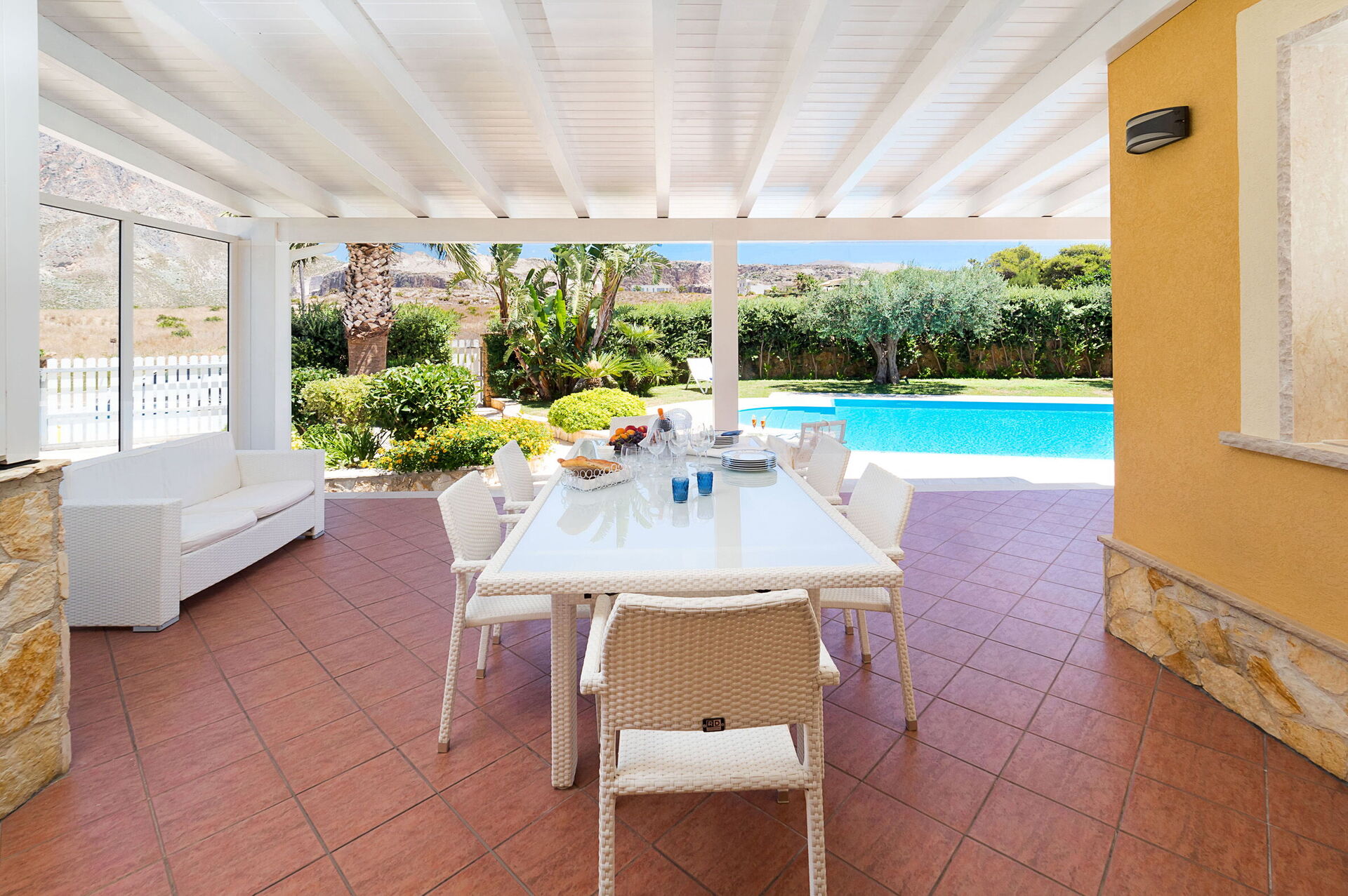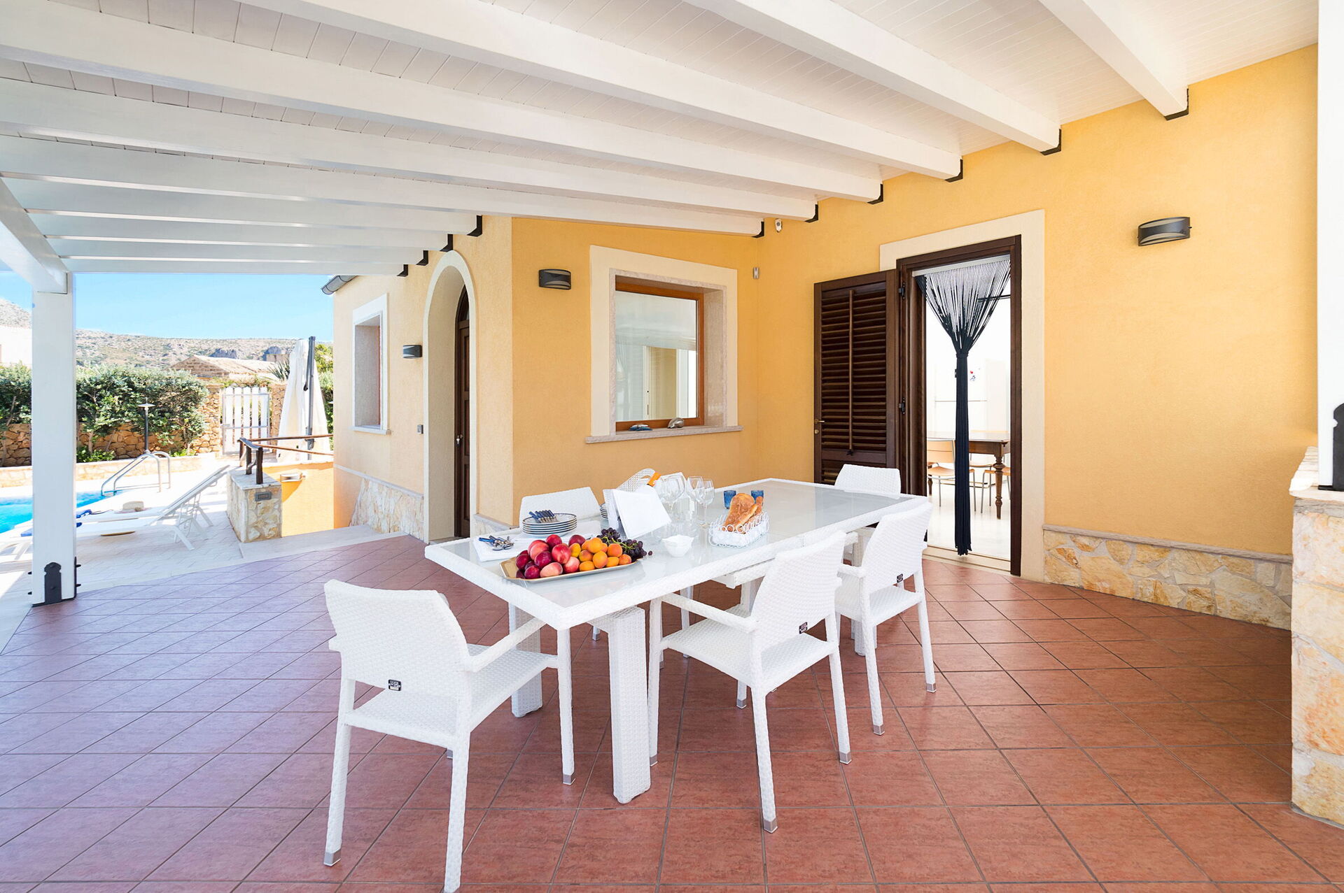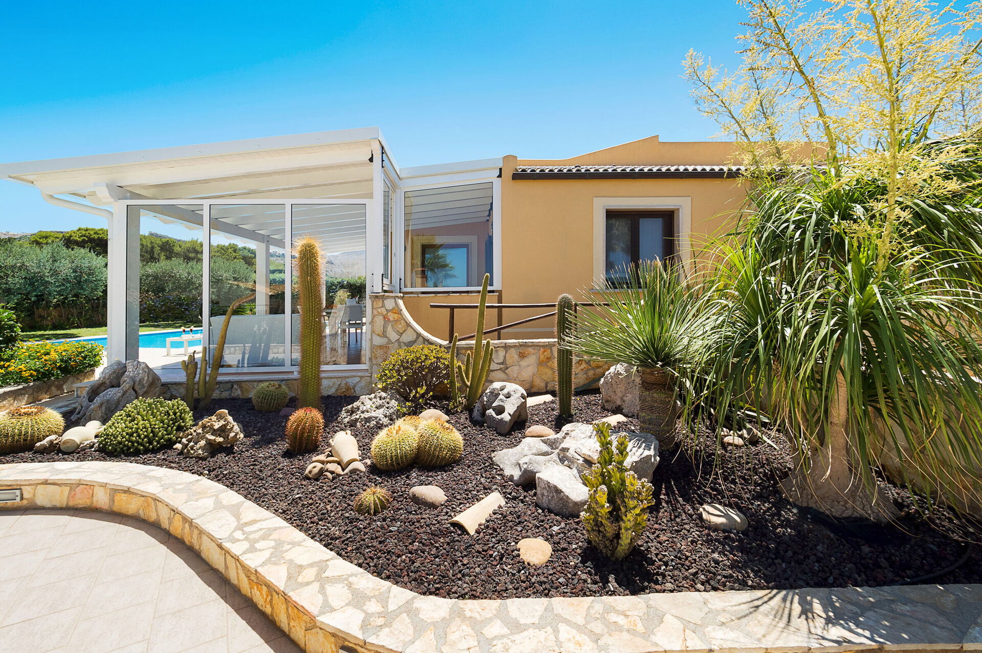 Smuk villa med privat pool kun få skridt væk fra stranden ved Cornino, en velkendt badeby ved foden af Monte Cofano nær Trapani på Sicilien.