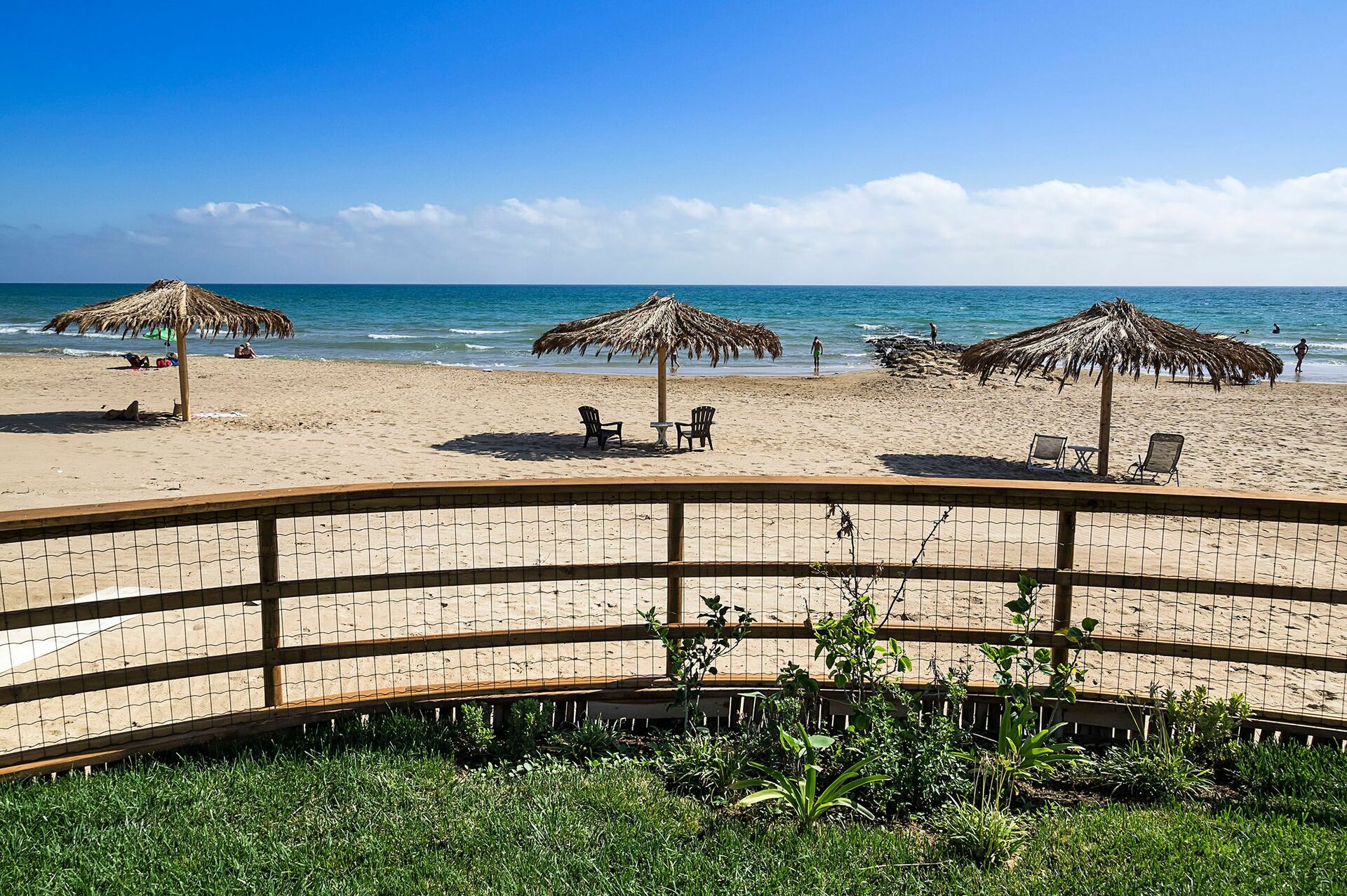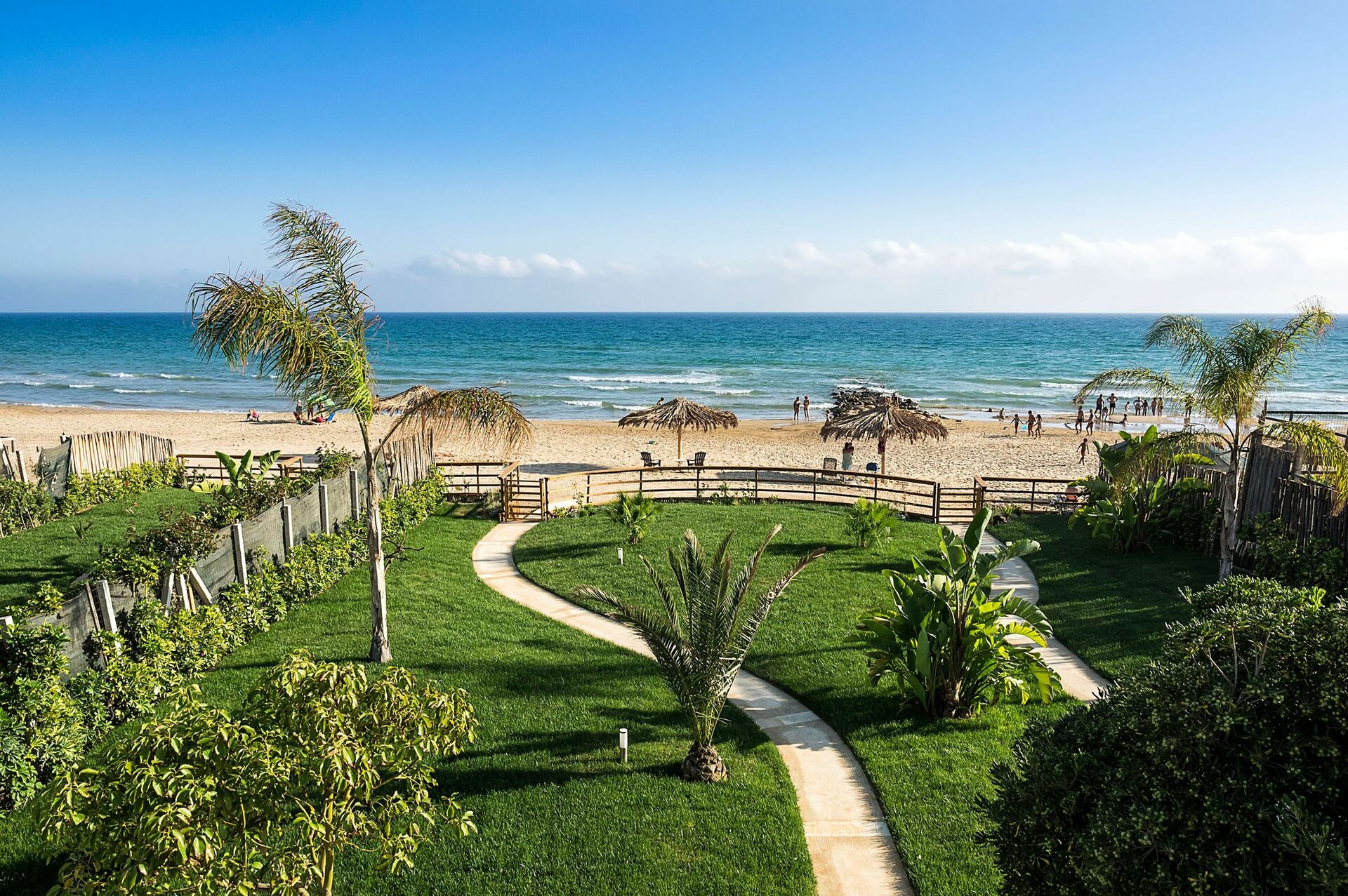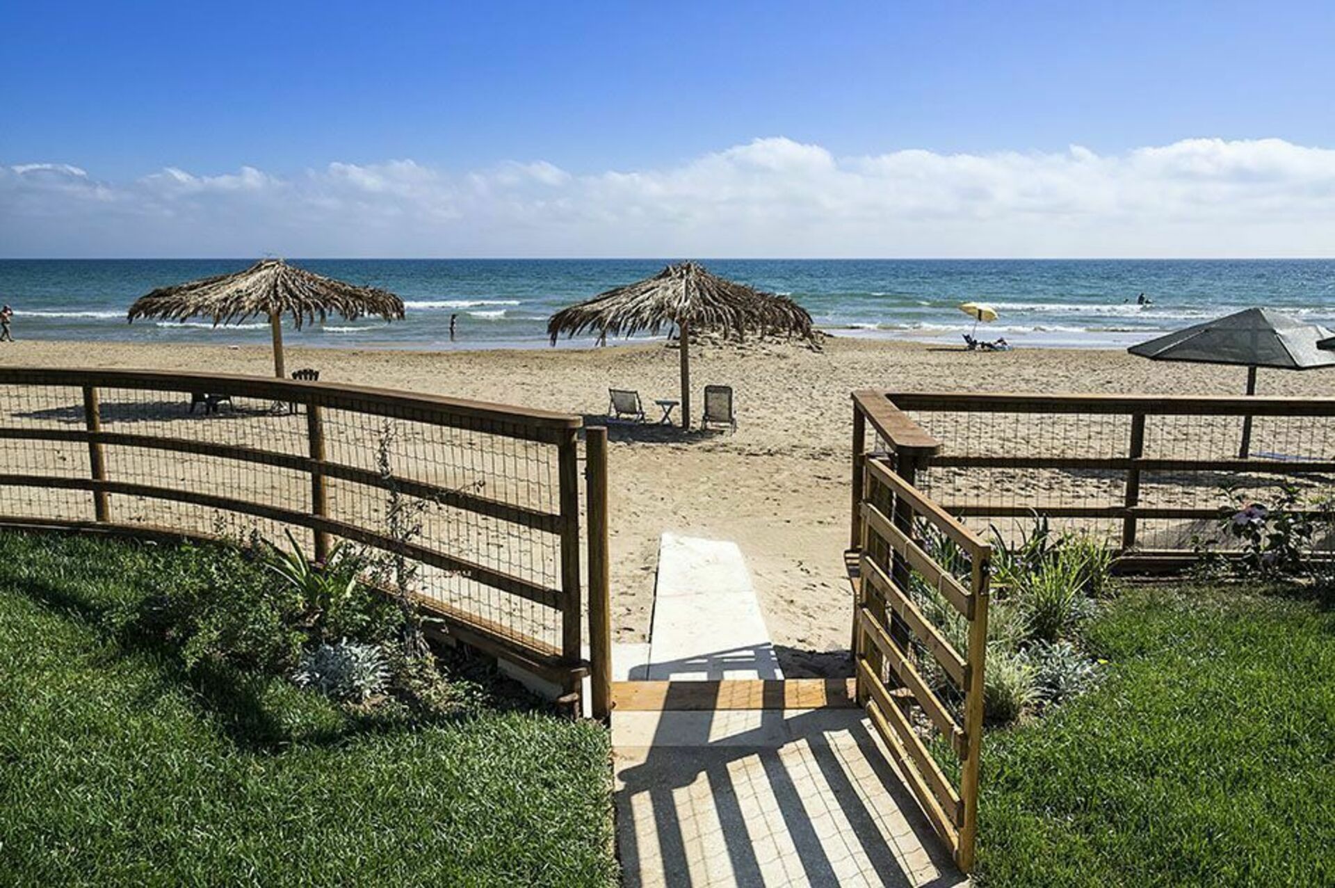 Fra lejlighederne har du udsigt til en dejlig have med græsplæne direkte adgang direkte til en smuk sandstrand.