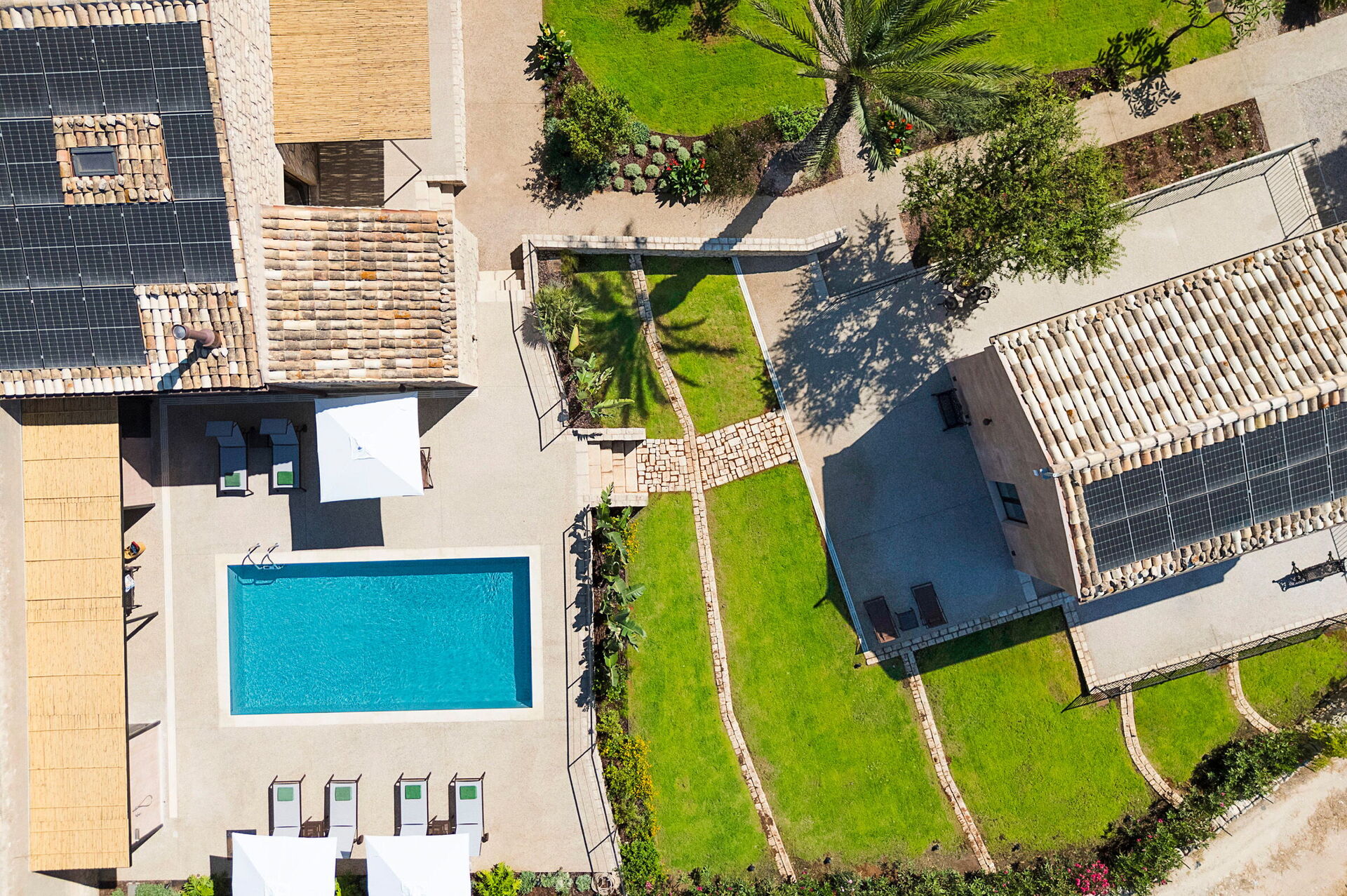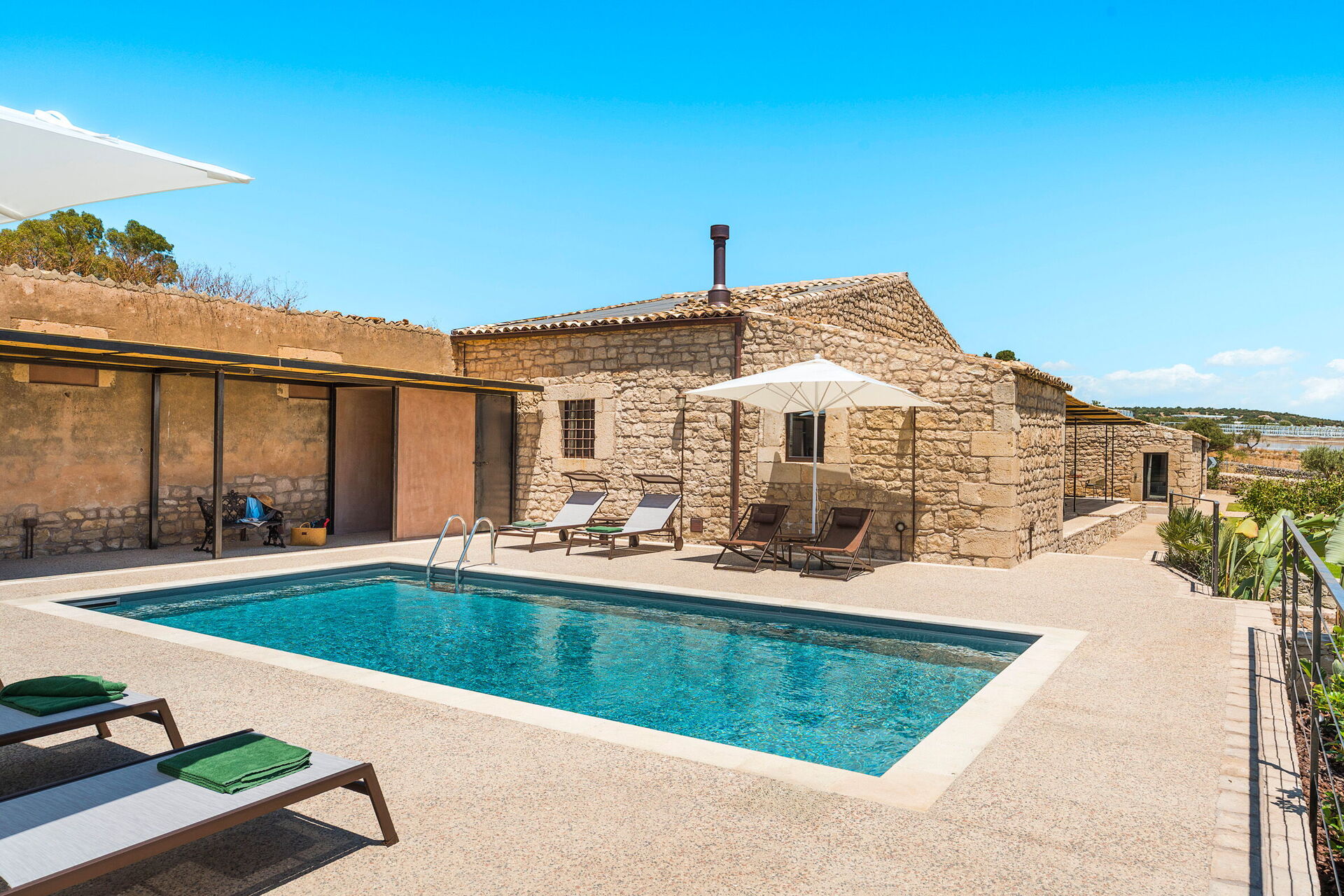 Ejendommen består af et hovedhus (6/8 personer) og et anneks (2 personer) foran poolen, kun få meter fra hinanden. Husene kan komfortabelt rumme op til 8/10 personer takket være deres 5 soveværelser (ét på en hems).