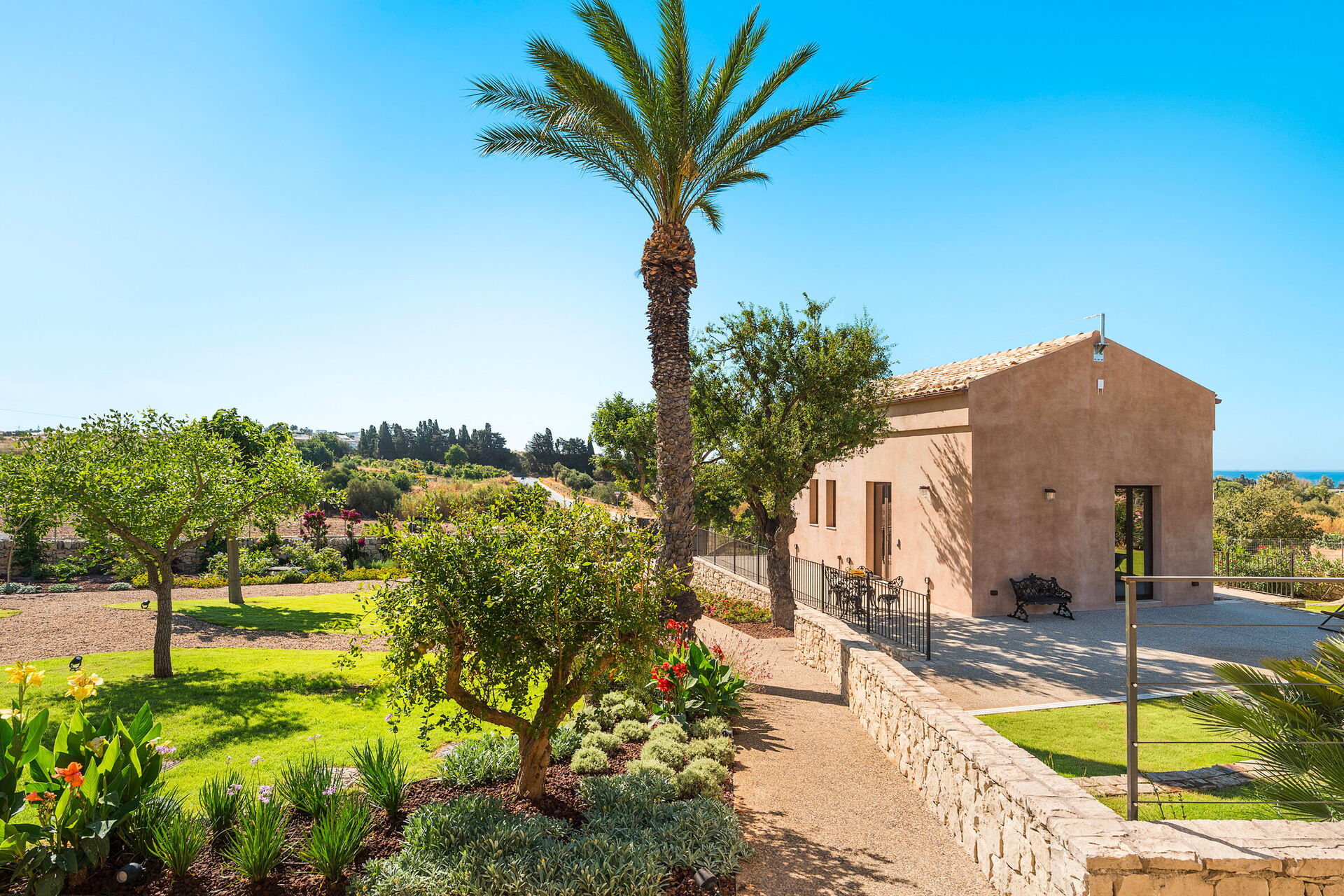 Samlet set gør dette ejendommen til et perfekt udgangspunkt for at udforske seværdighederne i det sydøstlige Sicilien: du bør ikke gå glip af Scicli, Modica, Noto, Siracusa og Marina di Ragusa – fantastiske barokbyer på UNESCOs verdensarvsliste. I kort afstand – og bestemt et besøg værd for deres natur – ligger naturreservaterne Cavagrande del Cassibile og Vendicari, slottet Donnafugata samt de charmerende kystbyer Marzamemi og Portopalo di Capo Passero.