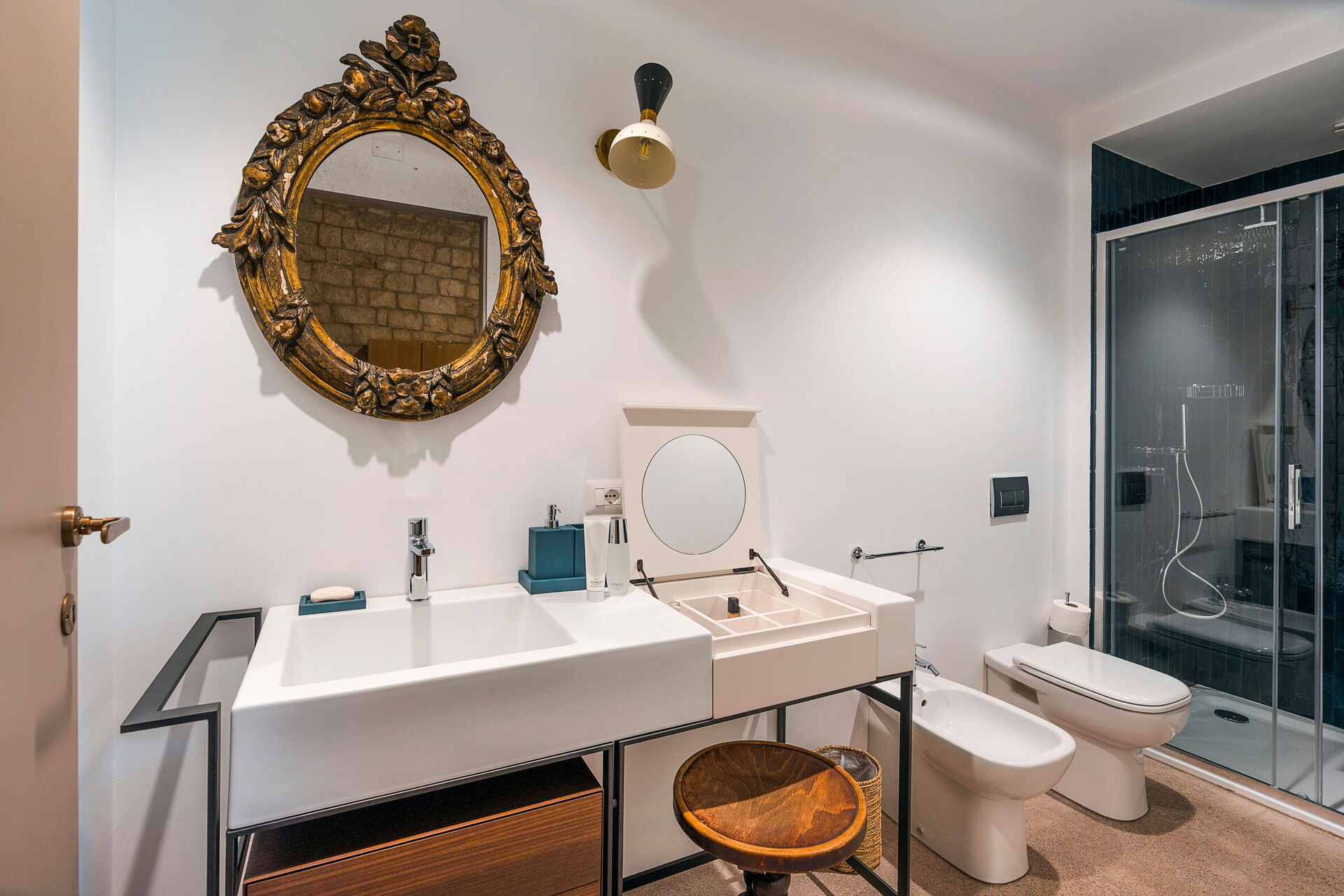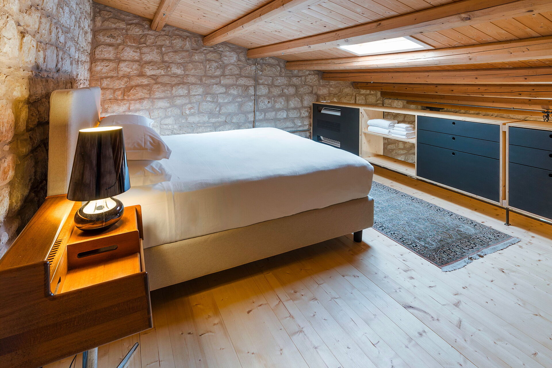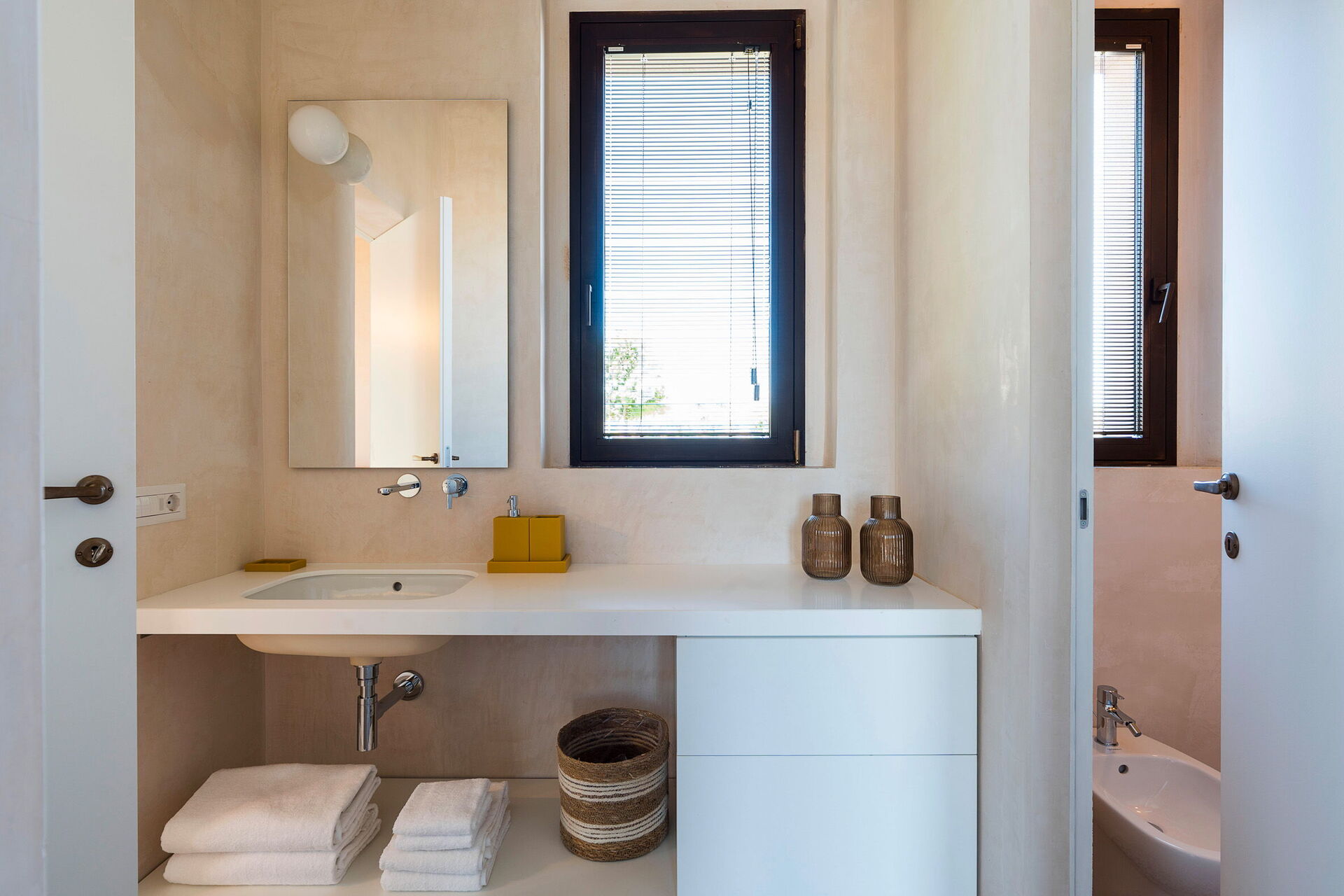 Stueetage (kun tilgængelig udefra og ikke forbundet med resten af villaen indefra): opholdsstue (med ekstra enkeltsovesofa på forespørgsel) med køkkenhjørne (køleskab, elkedel, espressomaskine); dobbeltværelse med eget badeværelse med bruser; dobbeltværelse (sengemål: 160 x 200 cm) med eget badeværelse med bruser.