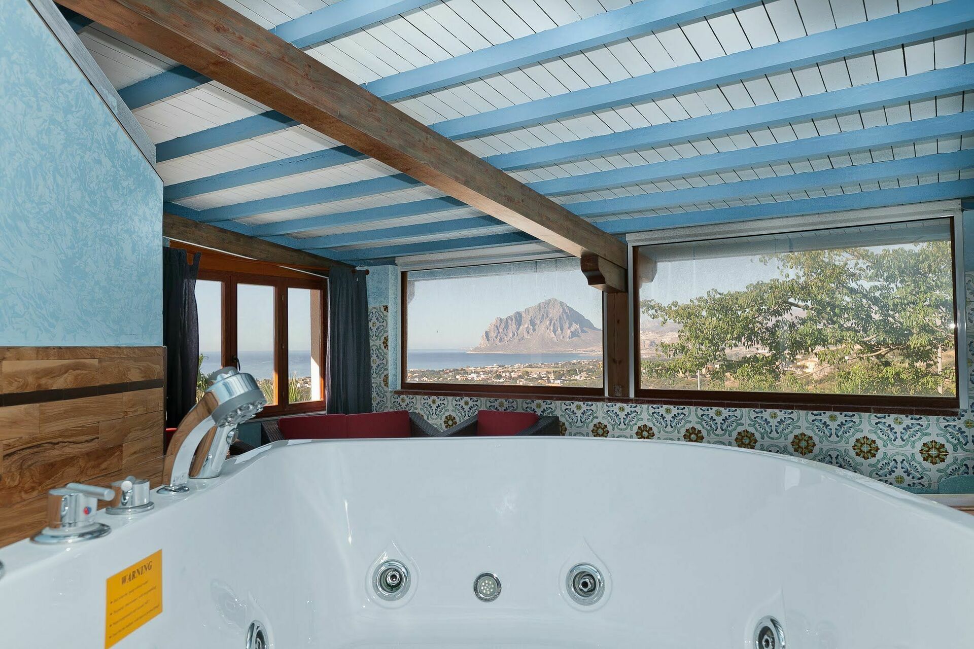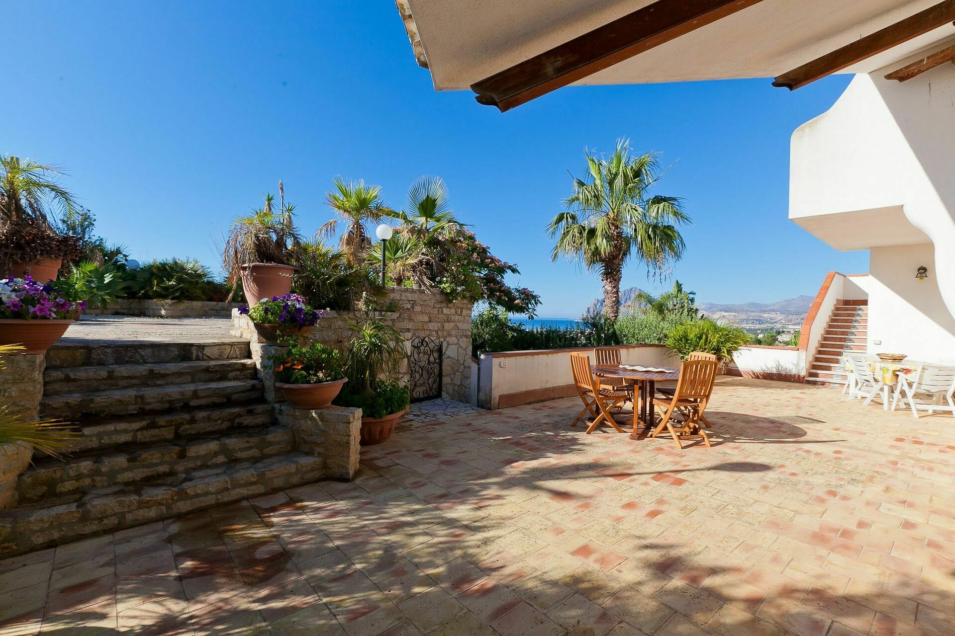 Stort sommerhus med privat swimmingpool i Erice på nordvestkysten av Sicilien. Fra feriehuset har du panoramaudsigt over havet og kysten der strækker sig mod San Vito Lo Capo.