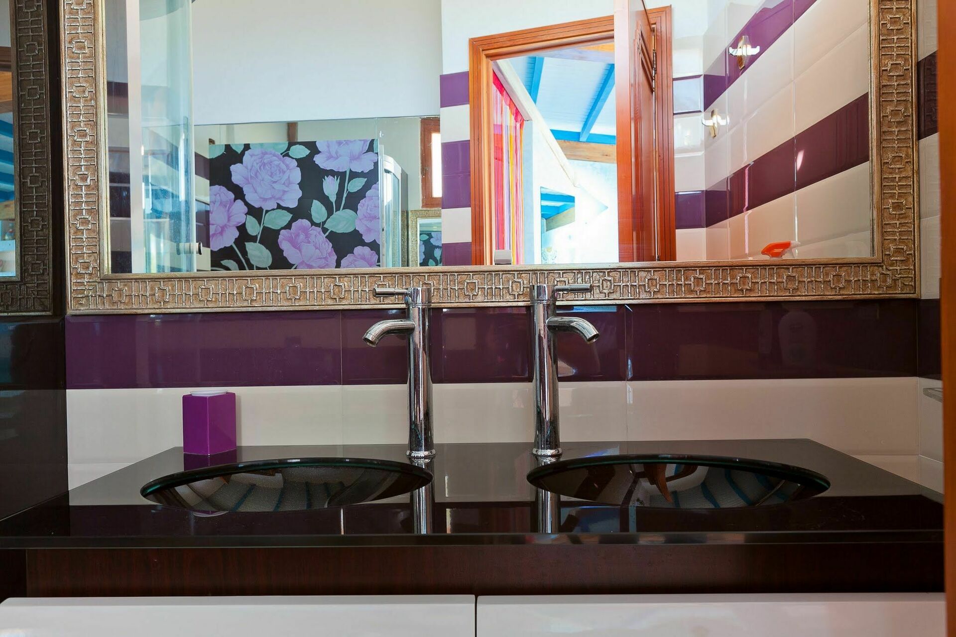 Anden etage (kun tilgængelig udefra): smuk panorama suite med dobbeltseng og jacuzzi badekar, badeværelse med jacuzzi bruser.