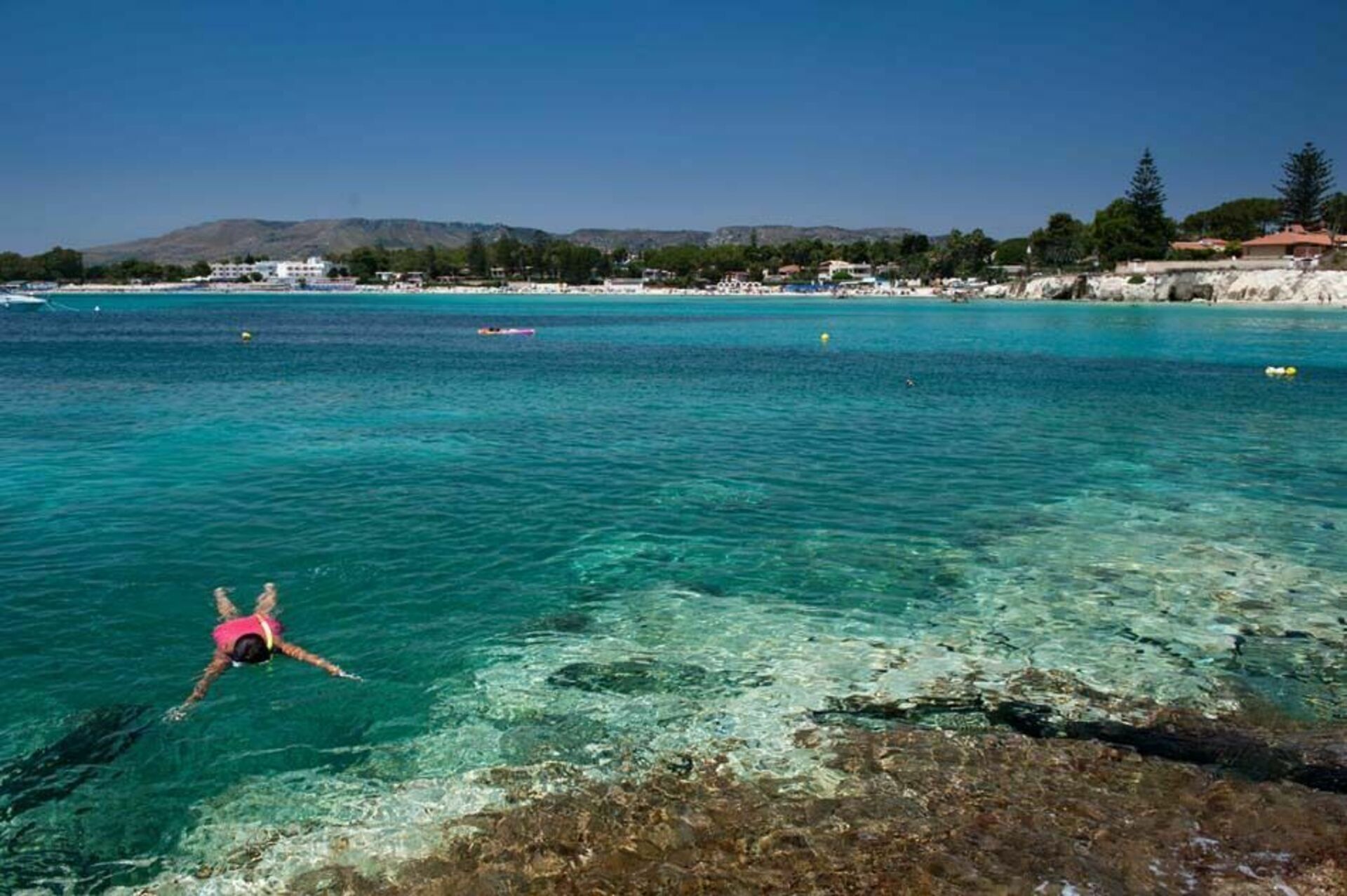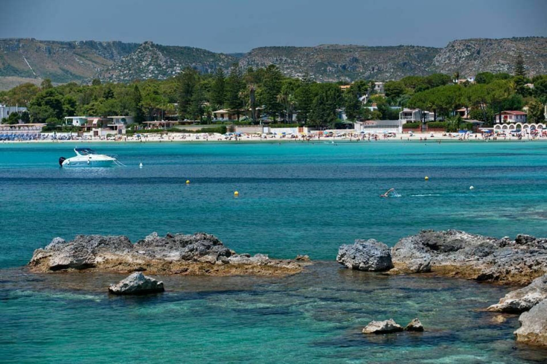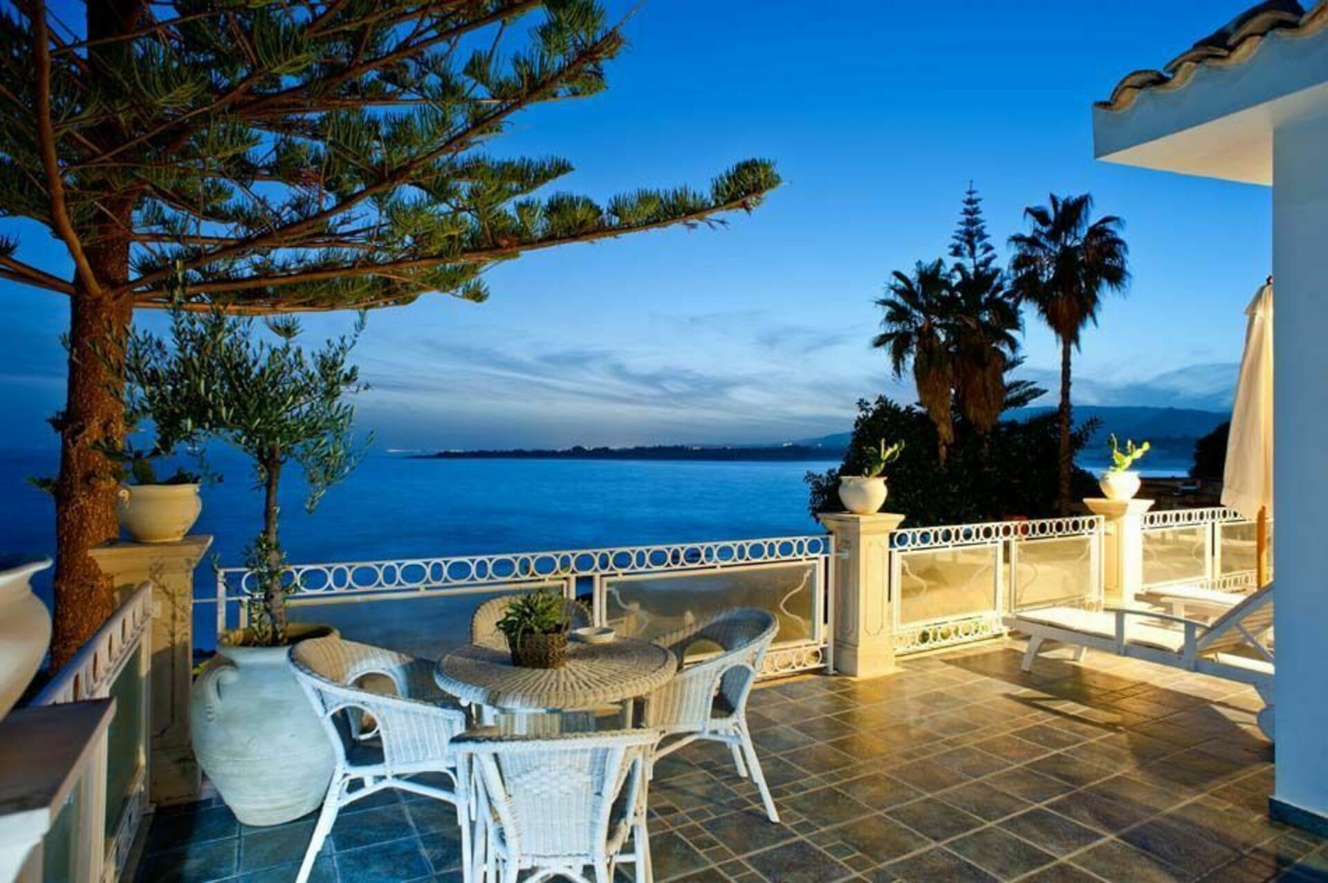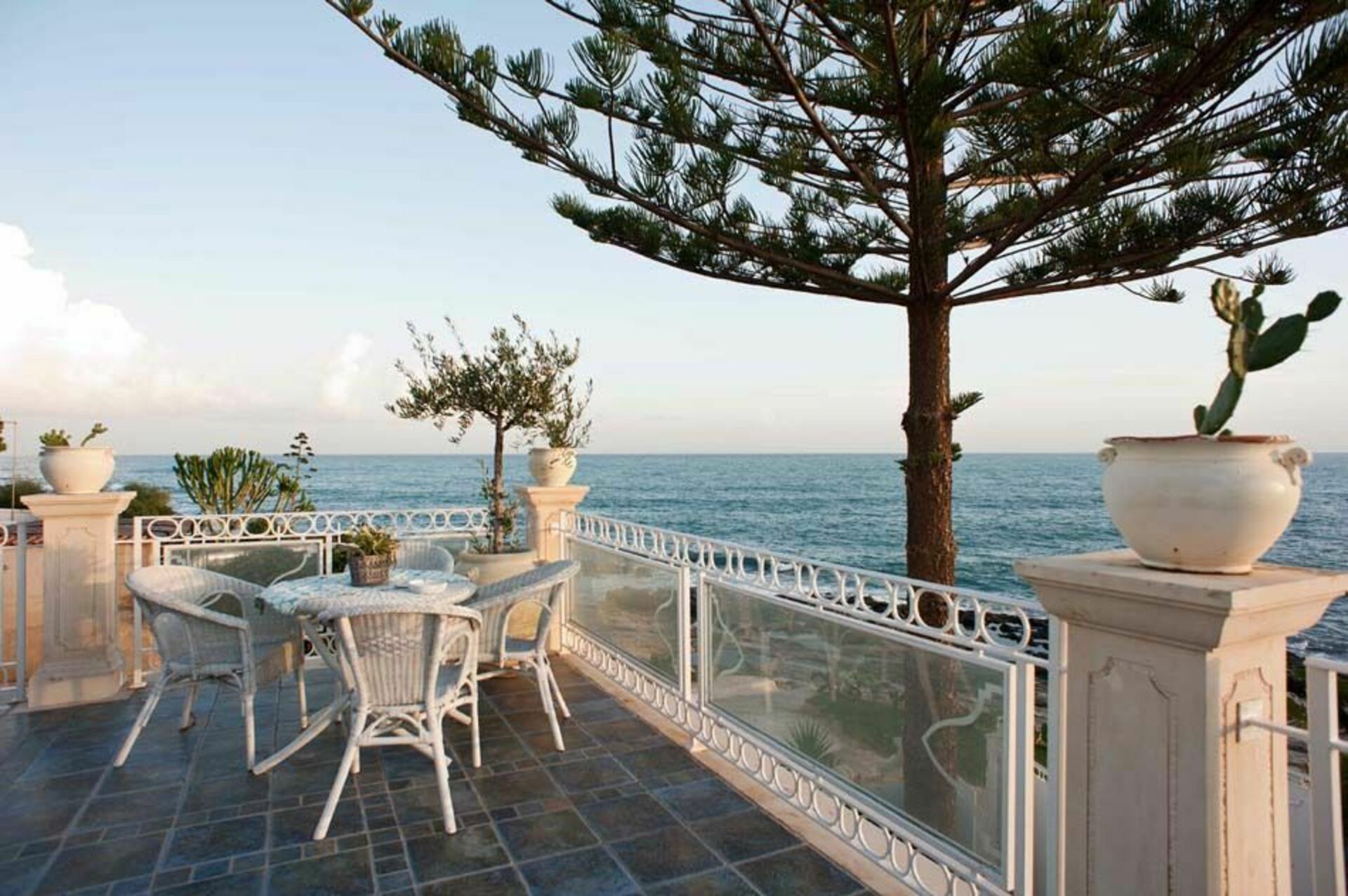 Smuk villa med havudsikt og privat pool er beliggende i Fontane Bianche, en populær badeby, 20 km syd for Syracuse på Sicilien. Sommerhuset har en dejlig beliggenhed, blot et par hundrede meter fra en af de bedste sandstrande på Siciliens østkyst og har udsigt over havet og den klippefyldte kystlinje der er lige uden for porten. Feriehuset er stilfuldt indrettede og giver den perfekte ramme for en familieferie eller en stor gruppe af venner. I stueetagen er stue med åben ild, spiseplads med store glasvinduer, køkkenet, arbejdsværelse med computer, et soveværelse og to badeværelser. Den første sal har fem hyggelige soveværelser med eget badeværelse. I en separat lejlighed i kælderen i villaen bor en husholderske stilfærdigt, der tager sig af den daglige regøring og oprydning. Udenfor finder man en velplejet have, rummelige terrasser med havudsigt og en lille pool med solterrasse. Ejendommens placering er perferkt for at nyde mange forskellige udflugter. Der er masser at se og gøre i området: uanset om du besøger en af de charmerende nærliggende barokke byer - såsom Syracuse, Noto, Modica, Ragusa-Ibla - eller Catania og Taormina, udforske naturreservatet i Cavagrande del Cassibile, Vendicari og stranden i Calamosche, dykning og snorkling i Plemmirio marine reservatet, eller besøger Etna Park eller øen Capo Passero.