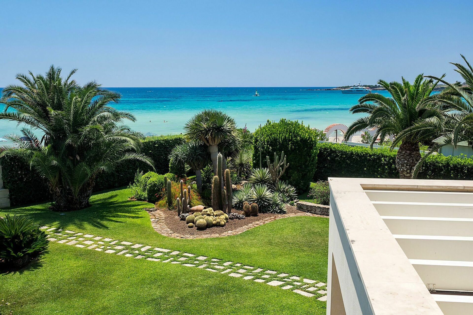 This is a lovely villa with plenty of space and pretty gardens right on the beach.