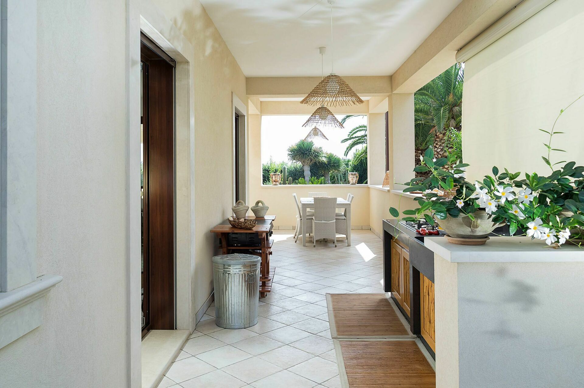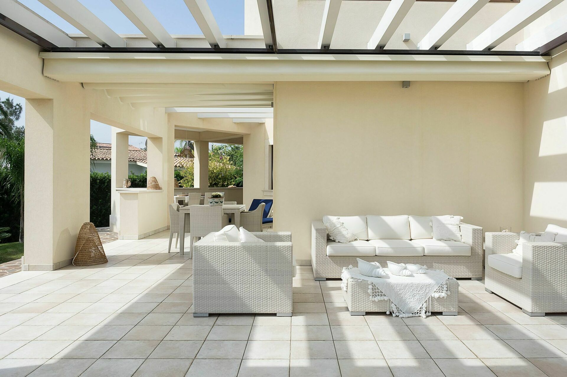 Udvendig: veranda, terrasser, have, udekøkken.