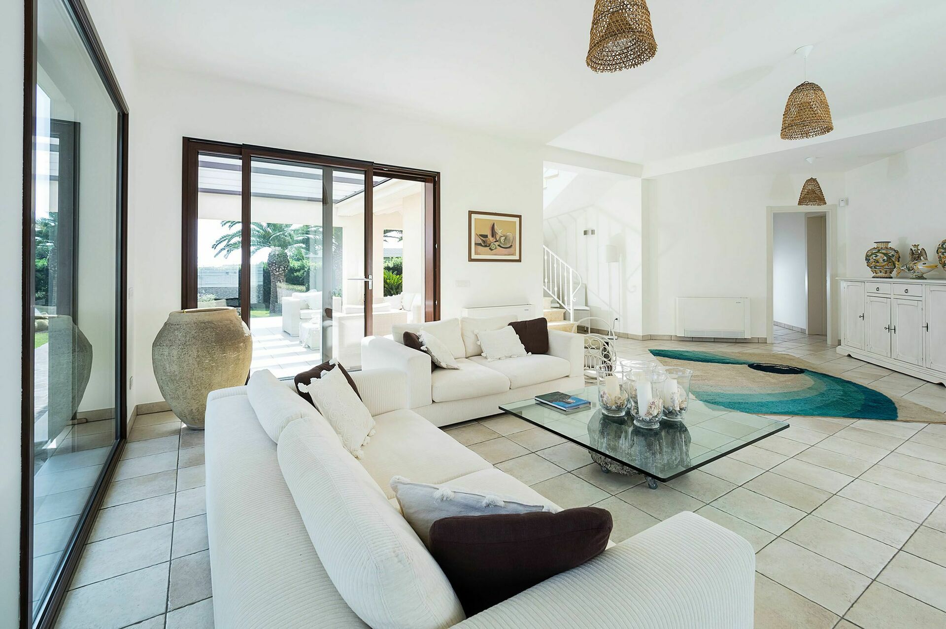 Denne eksklusive villa er omgivet af en velplejet have og tilbyder store panoramaterrasser, en spiseplads med udendørs køkken og privat adgang til den smukke strand med fint sand.