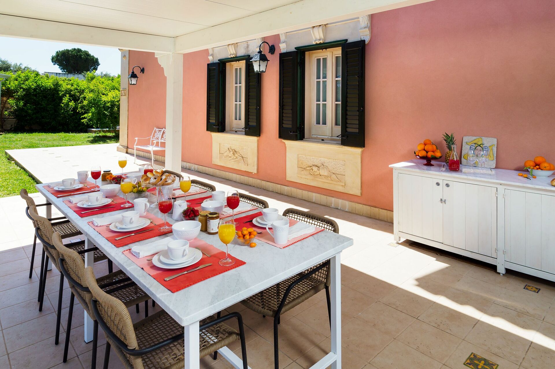 Sommerhuset ligger kun 300 meter fra den fantastiske sandstrand Fontane Bianche, en berømt badeby syd for Siracusa.