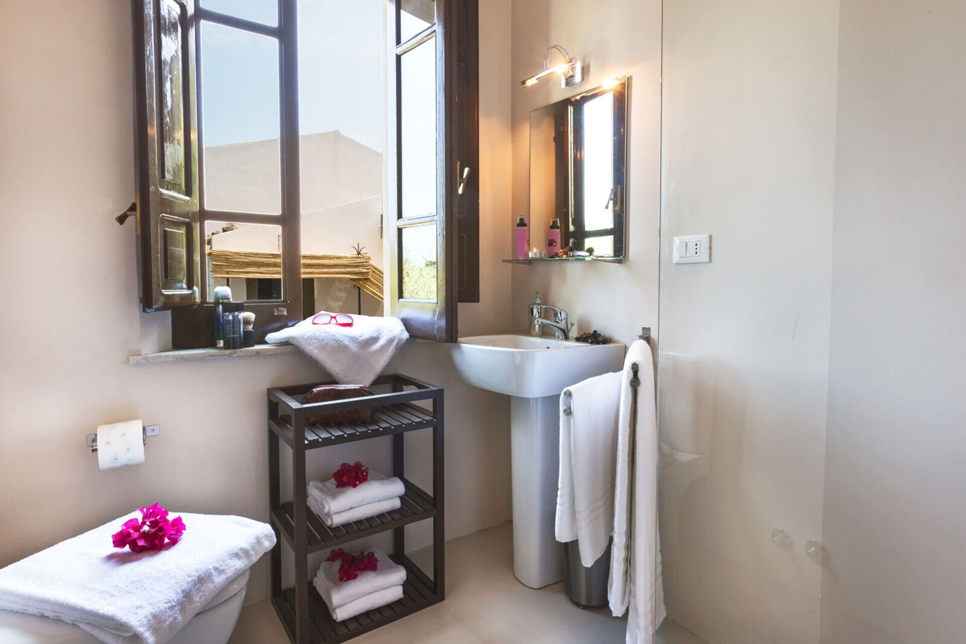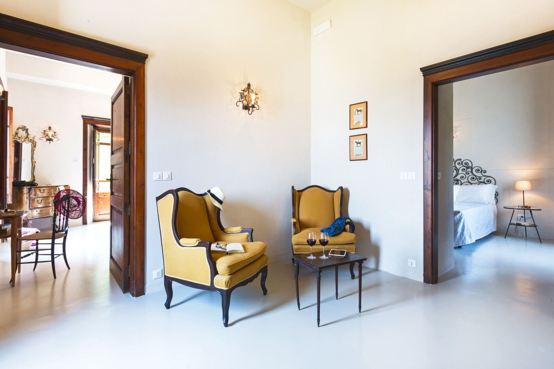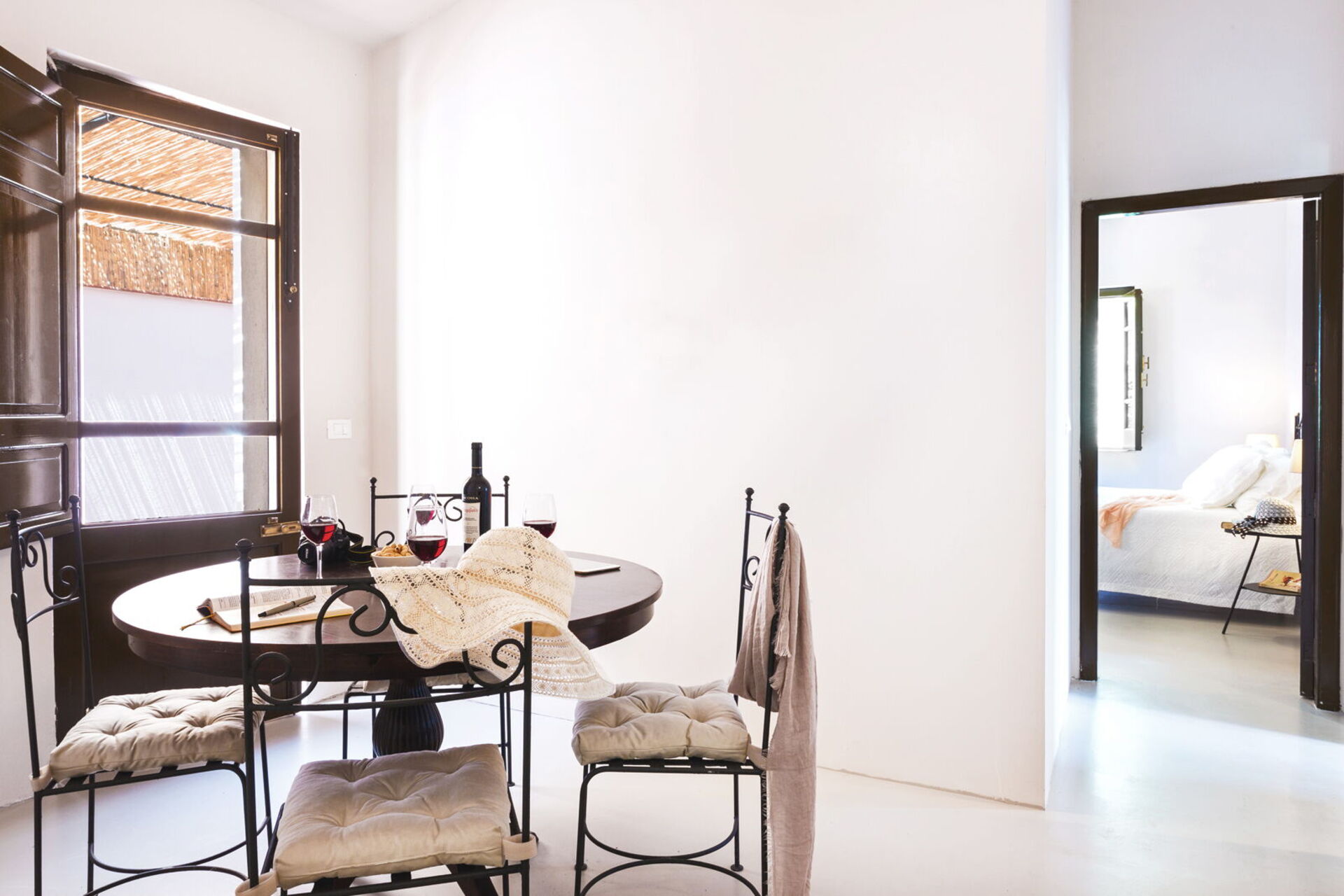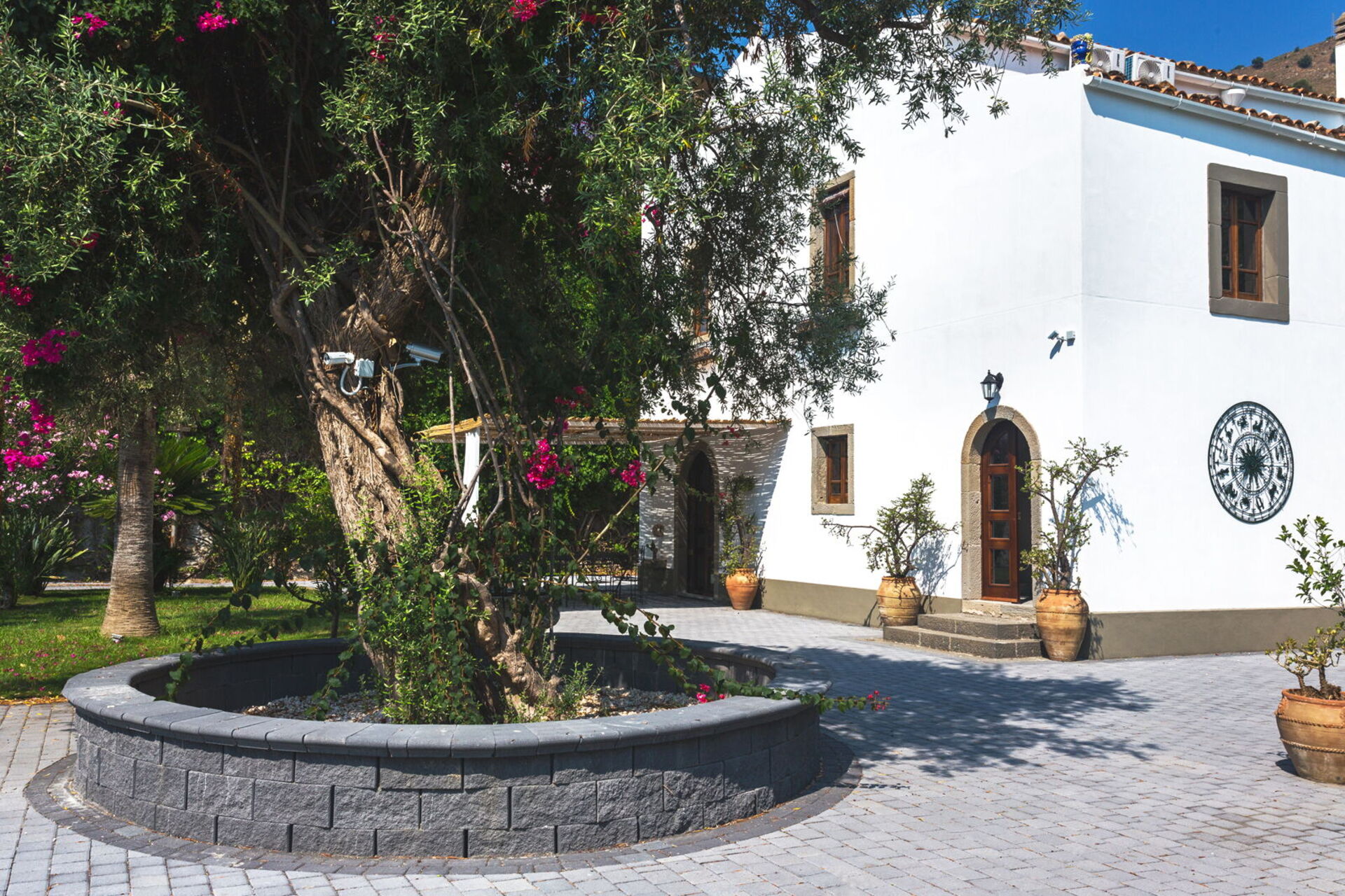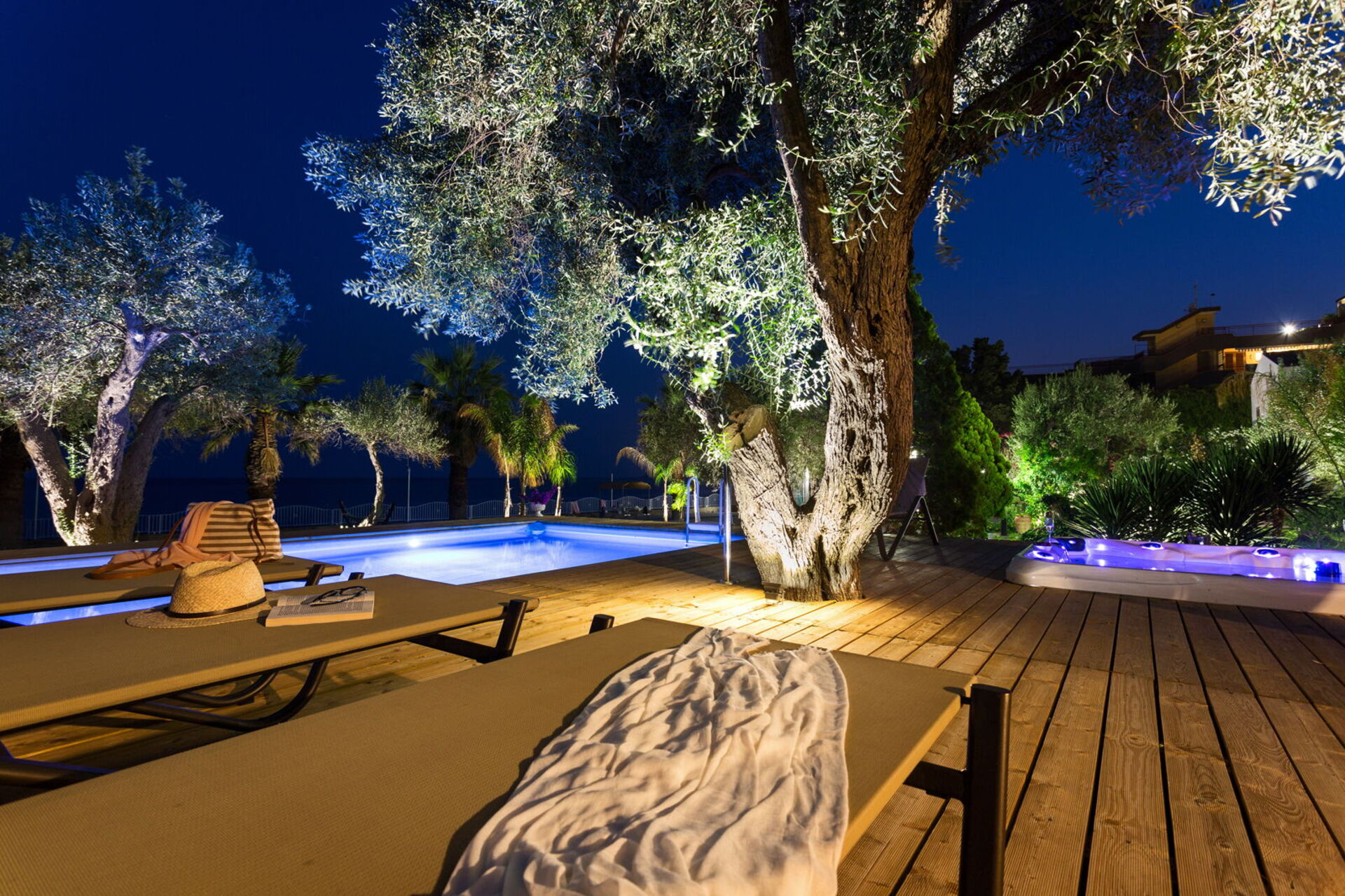 Villaen er smagfuldt indrettet med unikke elementer, såsom spisebordet, der understøttes af en vinpresse, som en hyldest til husets landbrugshistorie. Den frodige have med palmer og oliventræer, der omgiver feriehuset, bidrager til dets charme og skønhed.