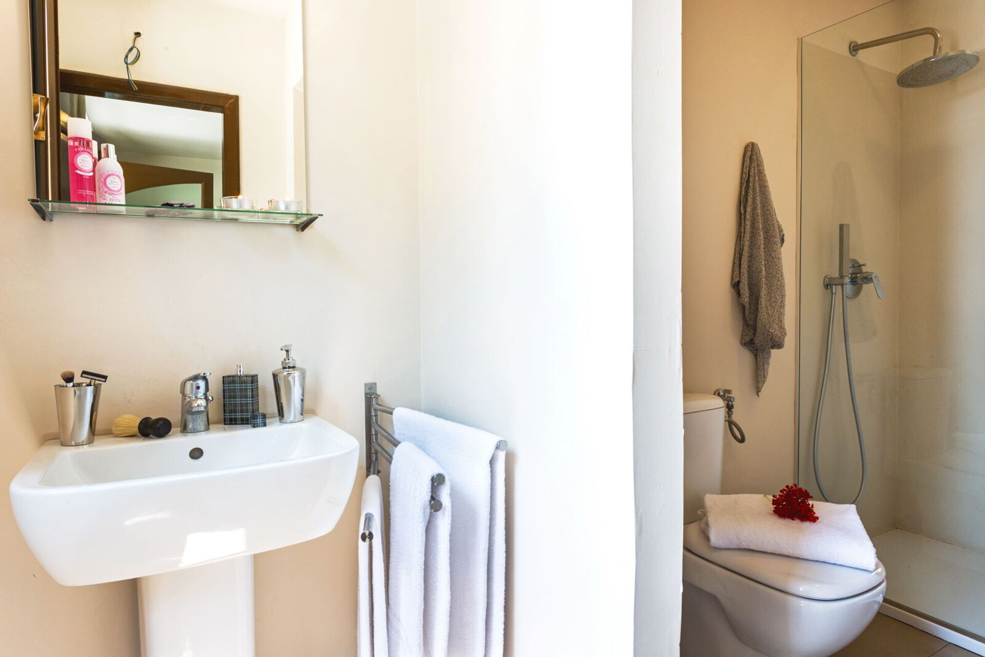 2 dobbeltværelser (aircondition) med eget badeværelse med bruser
