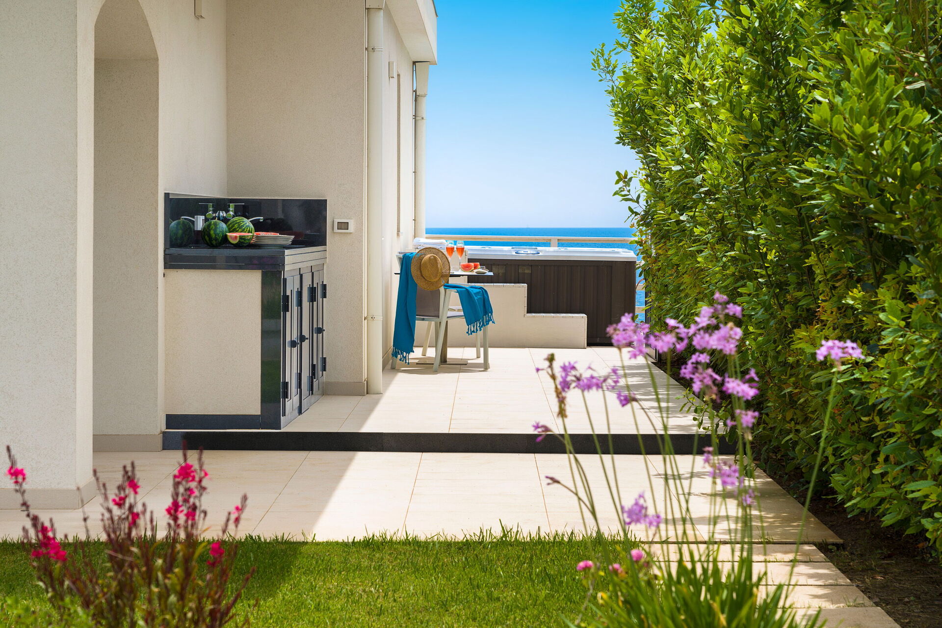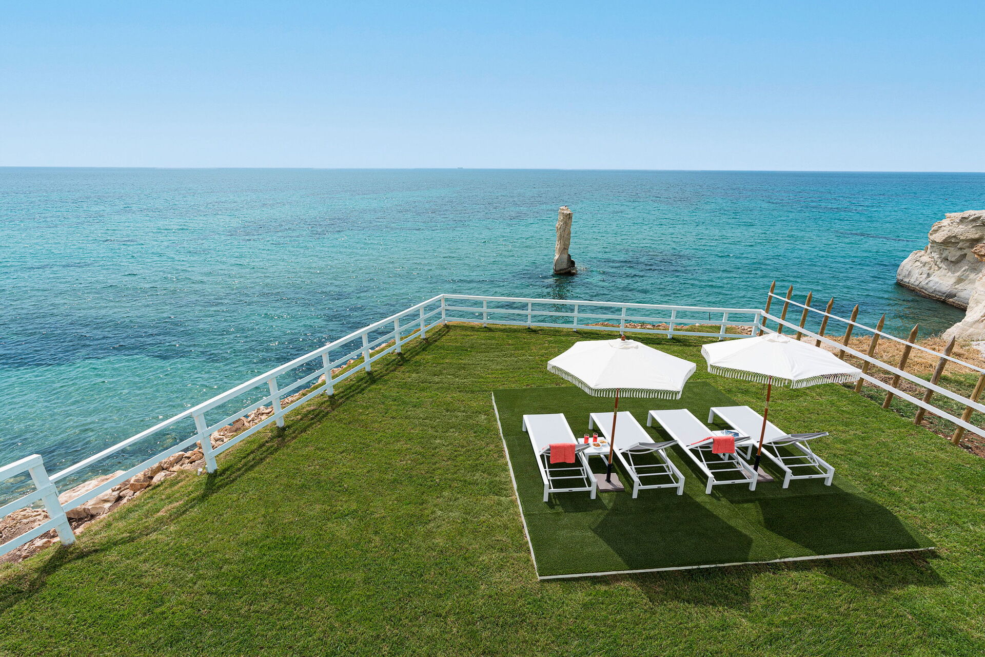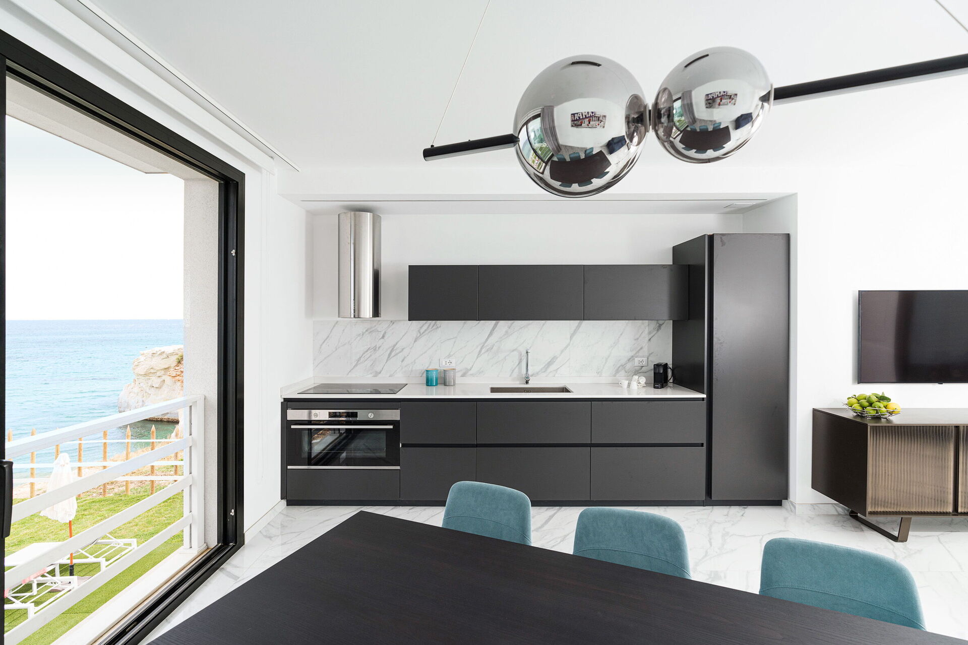 Udearealerne med panoramaudsigt har mange fællesarealer, perfekt til hyggelige stunder med familie eller venner. Der er også et udendørs og opvarmet boblebad, direkte adgang til klinten og havet.
