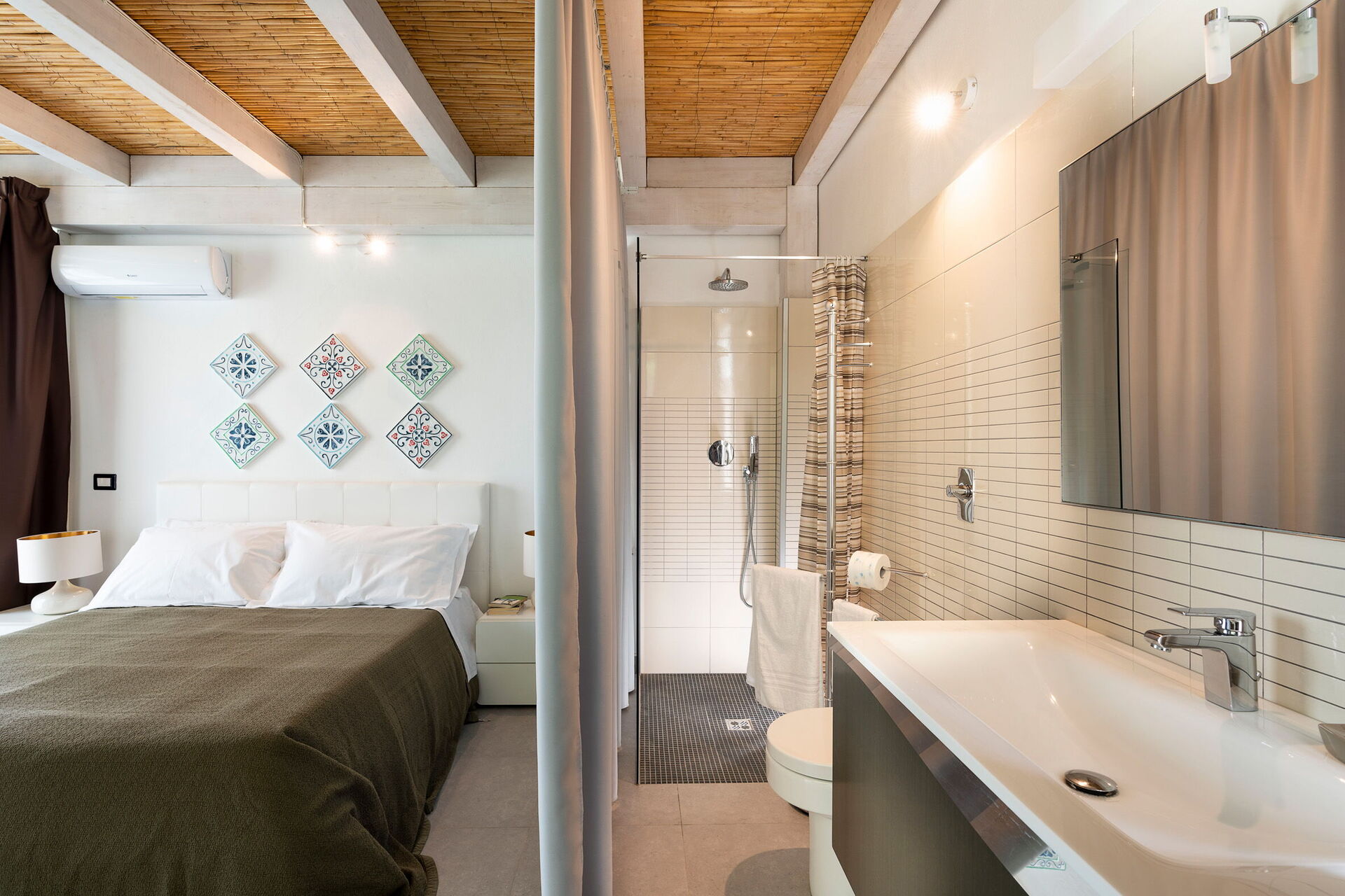 1 dobbeltværelse aircondition, myggenet) med privat badeværelse med bruser