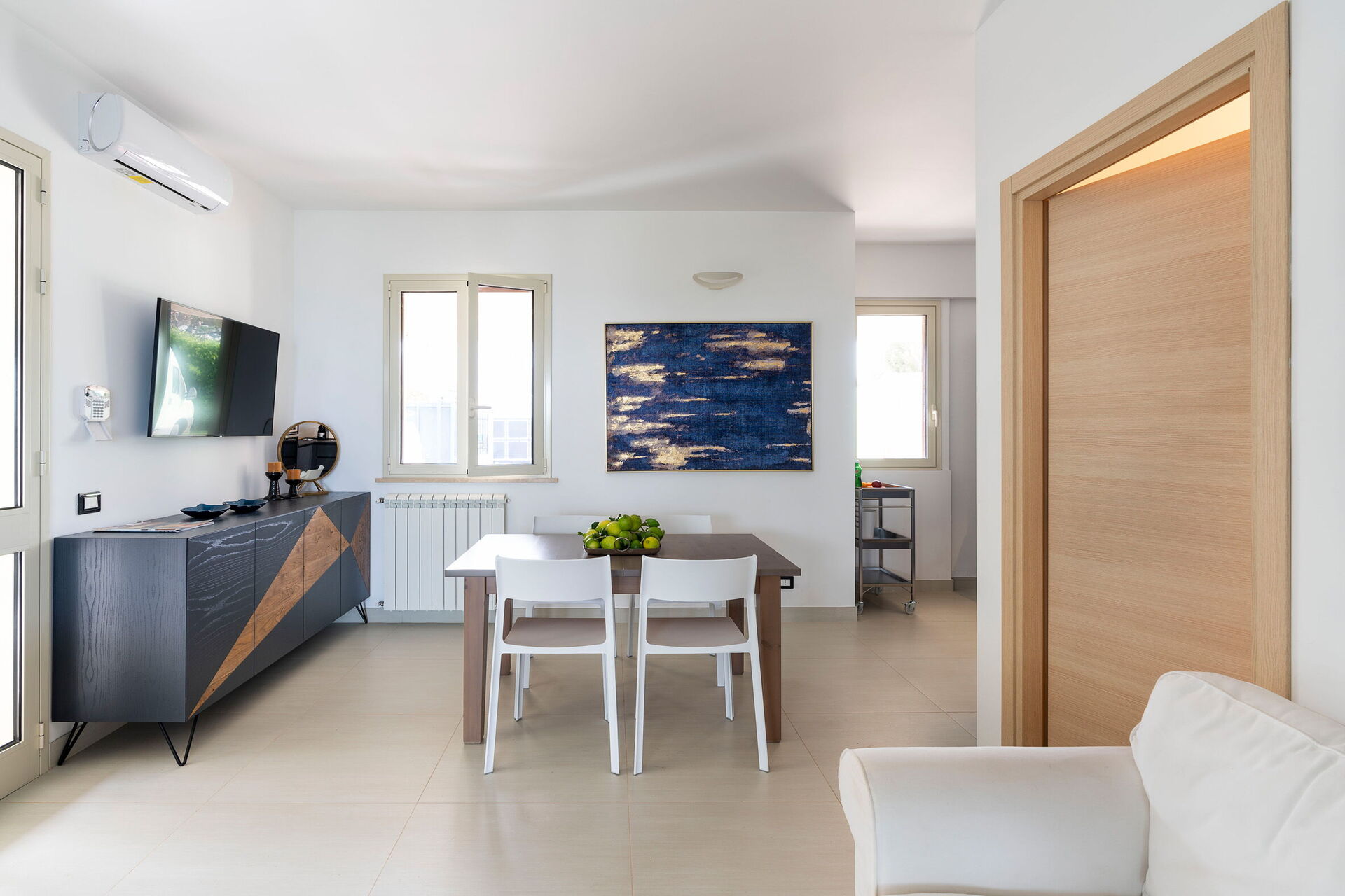 Huset har en etage, 3 dobbeltværelser og plads til op til 6 personer i et lyst interiør med moderne møbler. Huset ligger kun 200 meter fra den berømte strand Lido di Noto, en af de mest populære badebyer på Siciliens østkyst.