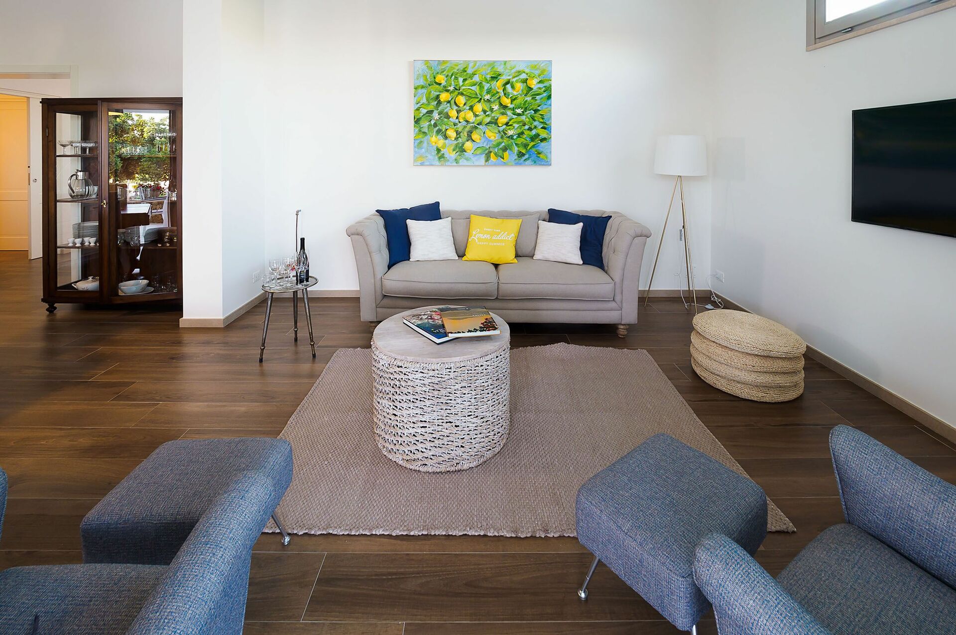 Villa Pietra del Sole er omgivet af en dejlig have med græsplæne, prydbuske og aromatiske planter. I det udendørs område finder du også en evighedspool med saltvand (klorfri) sammen med et tyrkisk bad og et badeværelse med bruser, og en veranda med spiseplads og et udendørs køkken.