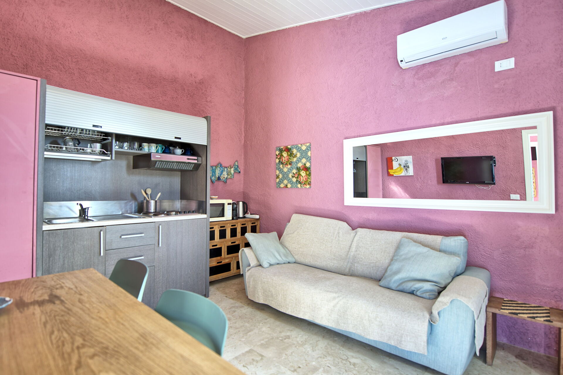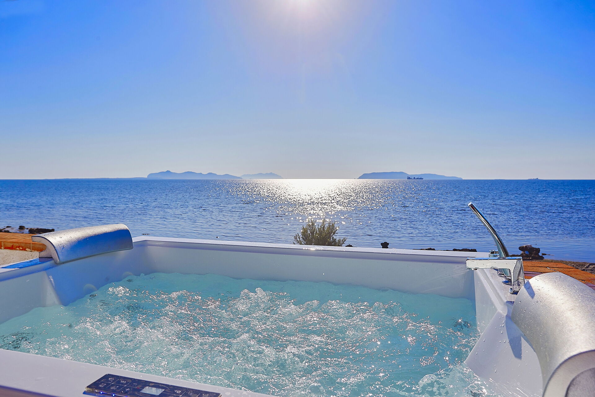 Hovedhuset har en fantastisk tagterrasse med spabad, med en dejlig udsigt over Egadi-øerne i horisonten!