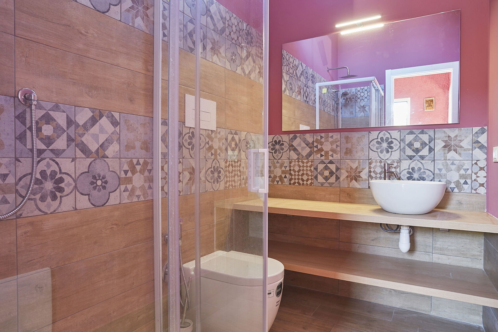 Træningsområde, afslapningsområde, badeværelse med 2 brusere med kromoterapi