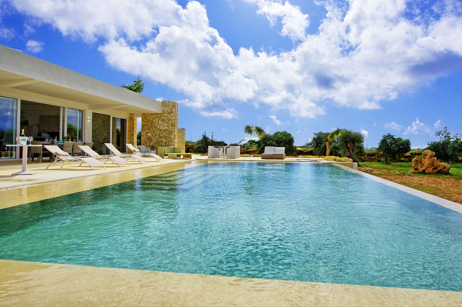 Villa Infinito er et moderne sommerhus med privat pool på Sicilien, der ligger på en solrig plet kun få kilometer fra havet i nærheden af Menfi.