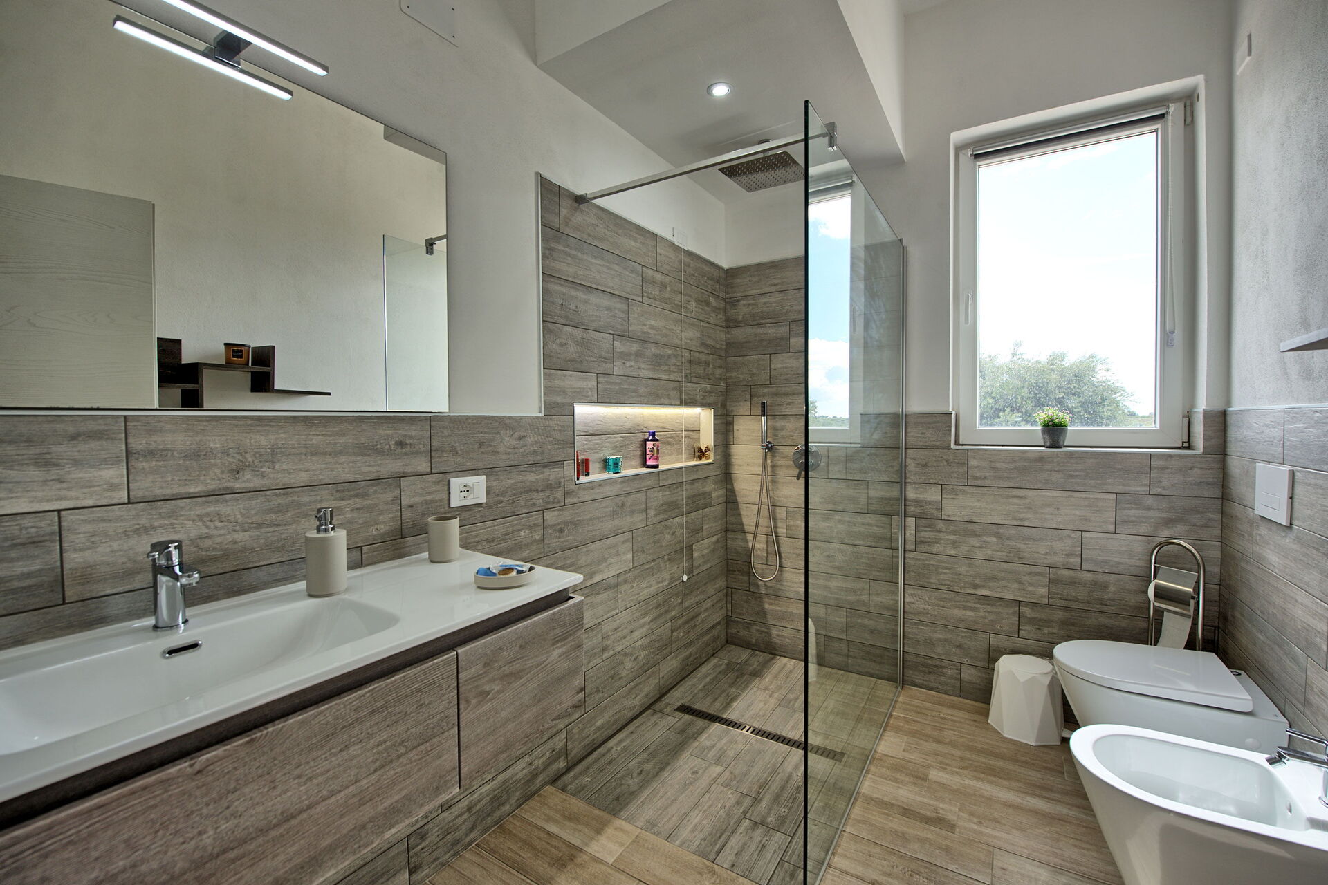Going inside the villa, the kitchen is well appointed , and equipped,, every detail thought out…brava Katia ! It’s new and clean. The beds were very comfortable! Views out of every window, we loved it. The house is equipped with smart TV’s, which also provided background music for our stay. Four full bathrooms and two outdoor showers, was over the top! The A/C was a comfort as well.